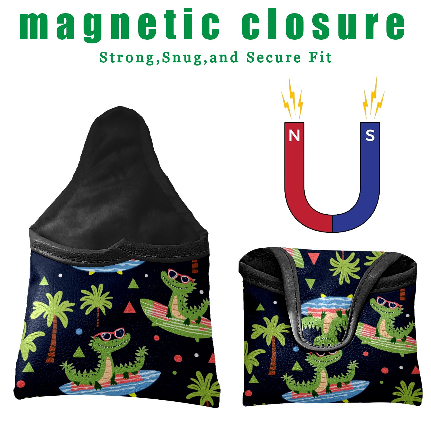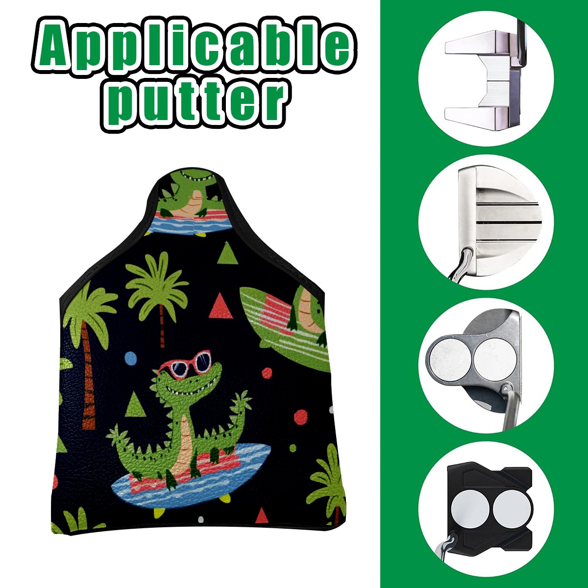 Professional Golf Club Head Covers Set for Mallet Putter - Waterproof Design with Stretchable Fit, Universal Club Protection for Men & Women (Crocodiles Surfing On Surfboards)