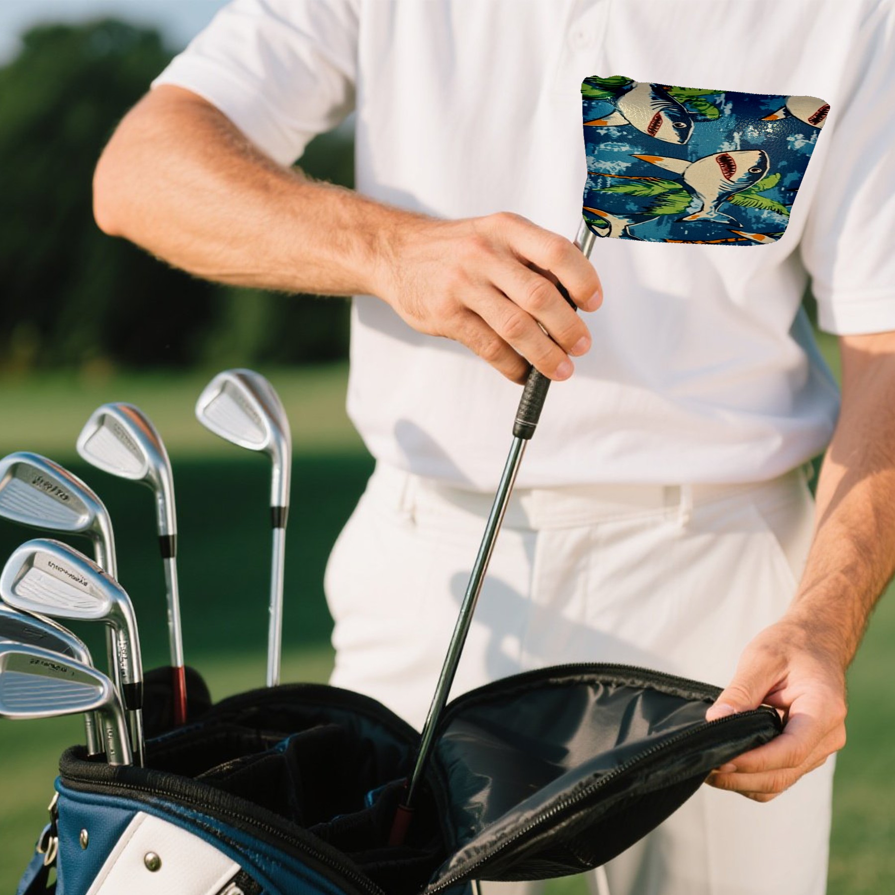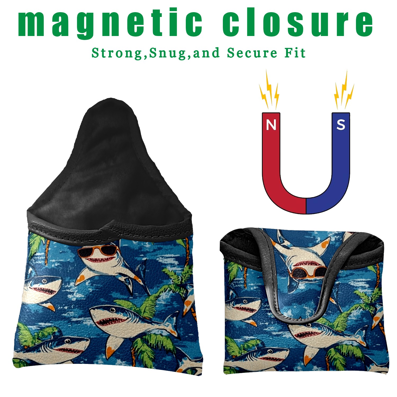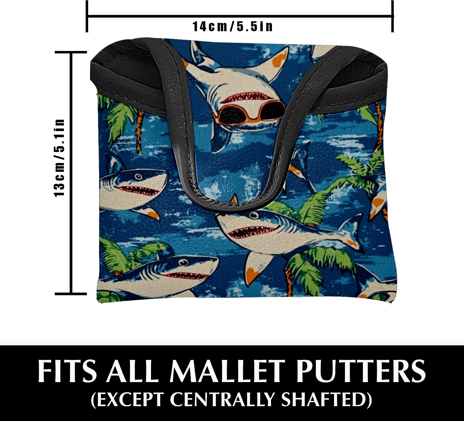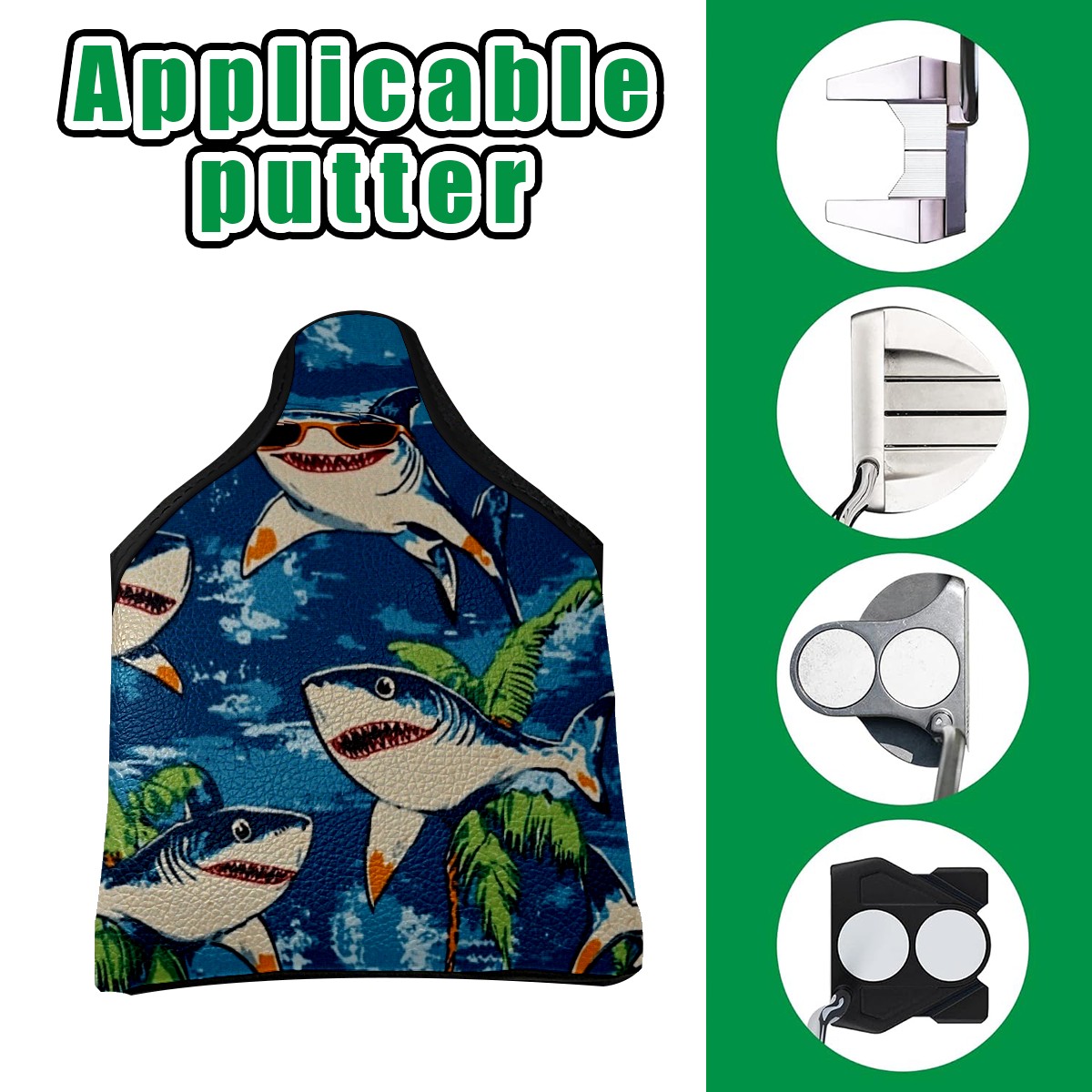 Professional Golf Club Head Covers Set for Mallet Putter - Waterproof Design with Stretchable Fit, Universal Club Protection for Men & Women (Shark Wearing Sunglasses)