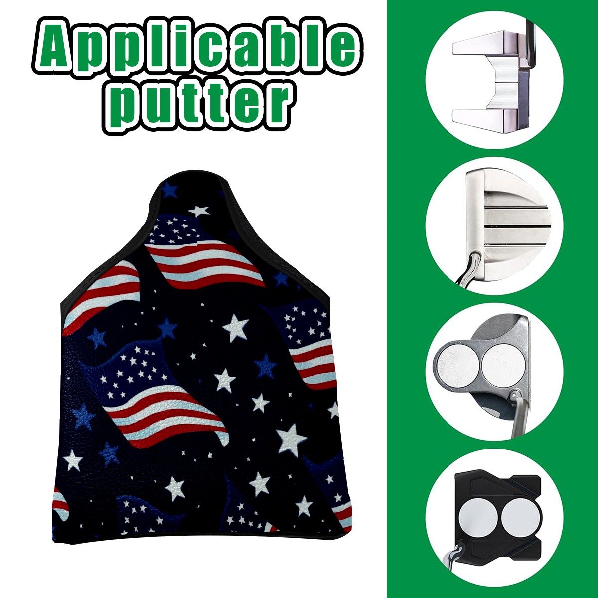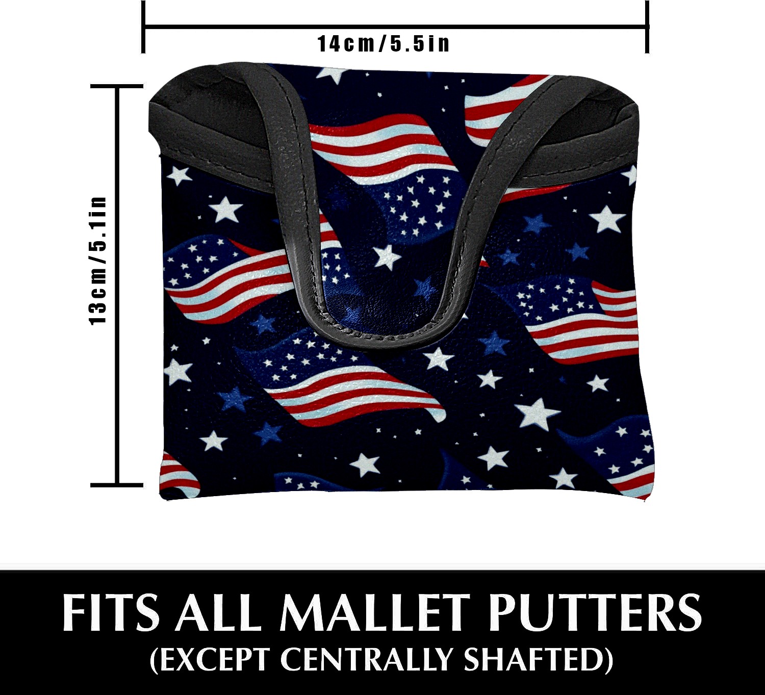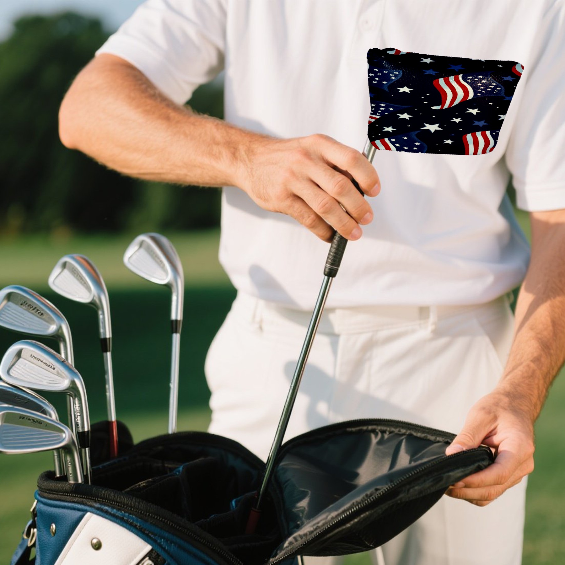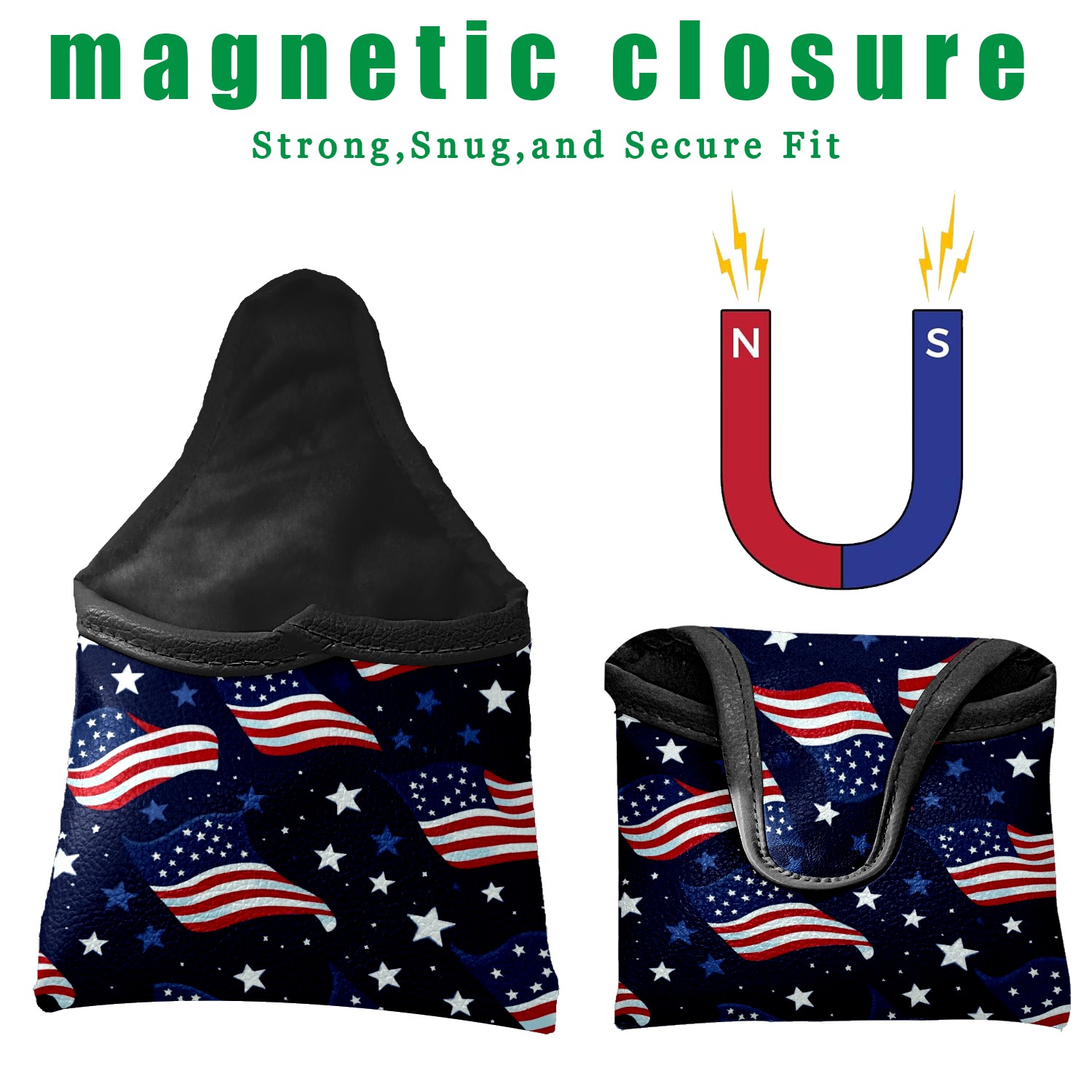 Professional Golf Club Head Covers Set for Mallet Putter - Waterproof Design with Stretchable Fit, Universal Club Protection for Men & Women (Realistic Waving American Flags)