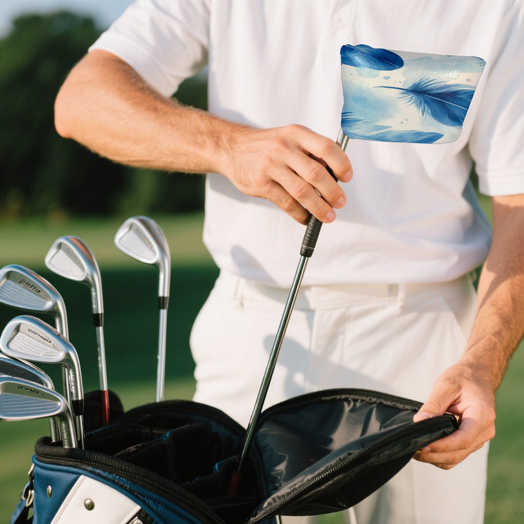Golf Club Head Cover Golf Club Covers For driver club cover waterproof Head covers Fairway Wood Head Covers Golf Blade Mallet Putter CoverBlue Feather1