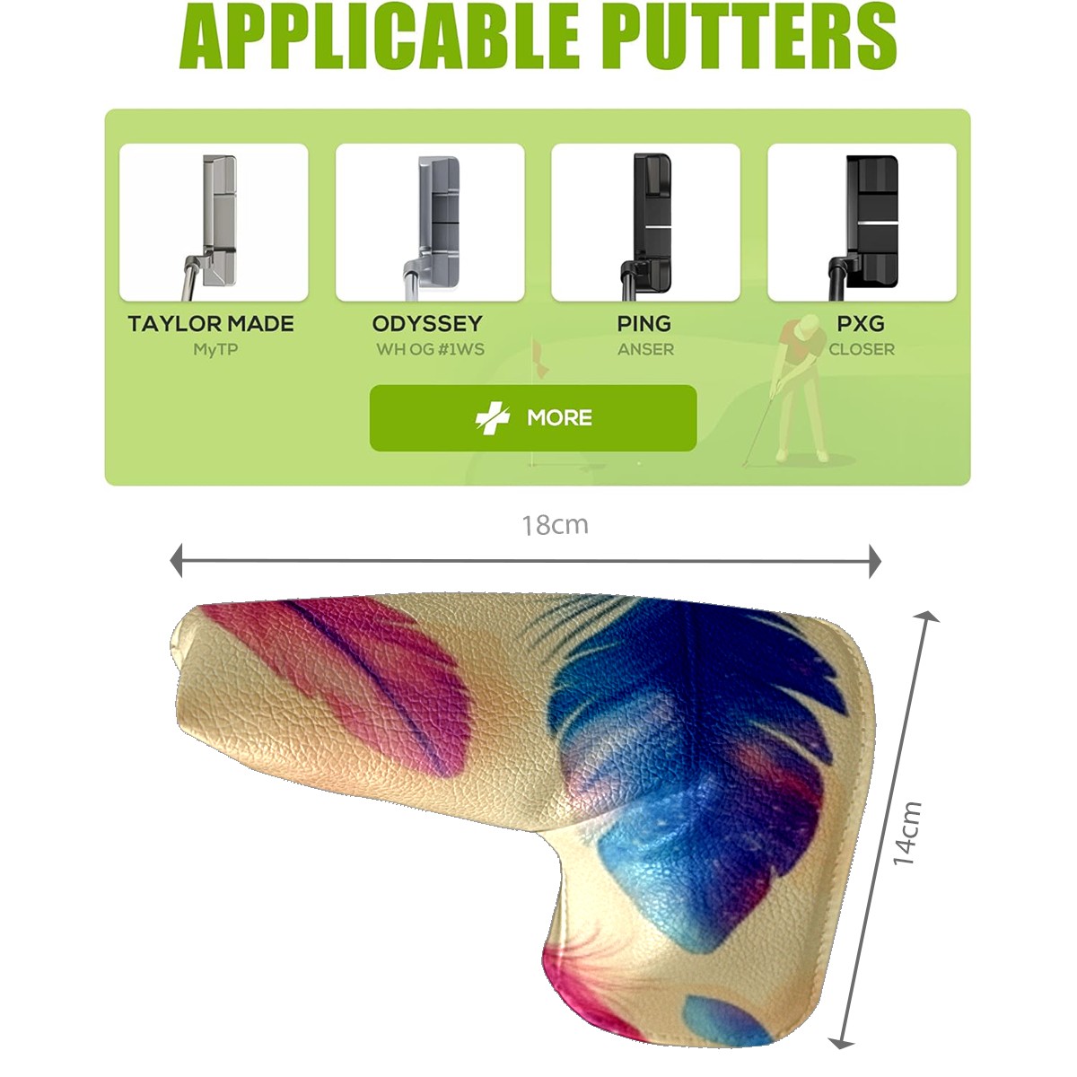 Golf Club Head Cover Golf Driver PU Fairway Wood Putter Head cover driver head cover Dad Gifts for Women Colorful Feather2