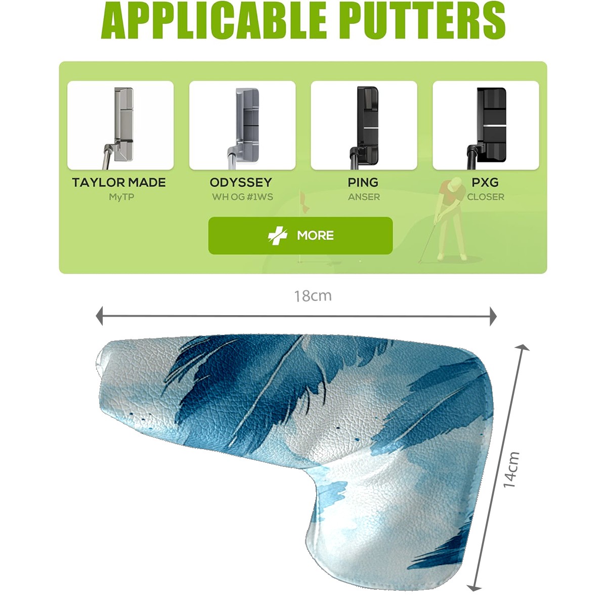 Golf Club Head Cover Golf Driver PU Fairway Wood Putter Head cover driver head cover Dad Gifts for Women Blue Feather
