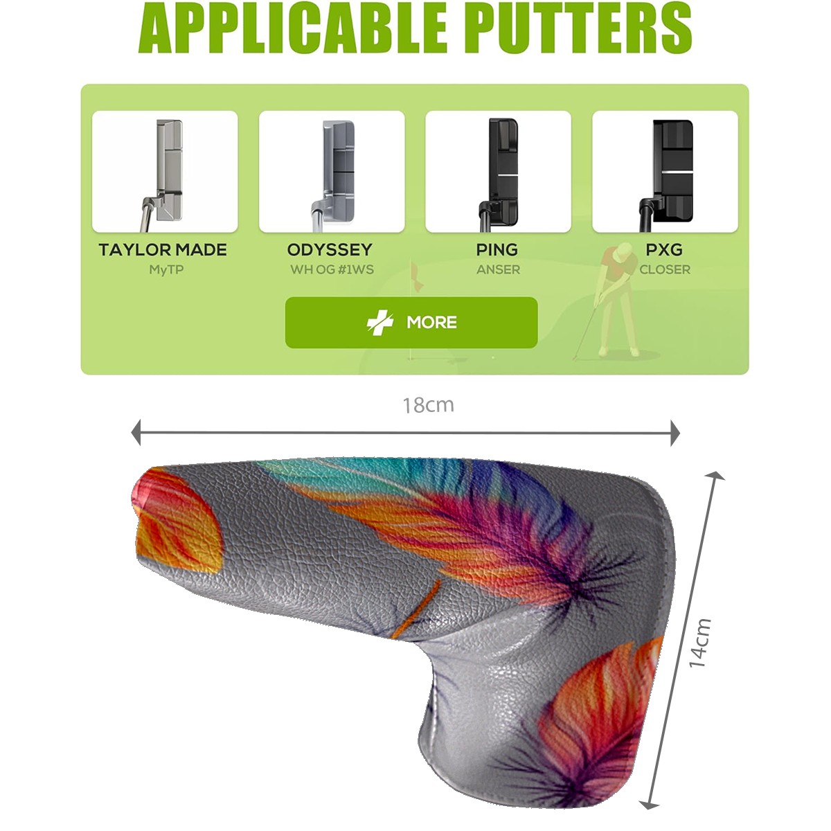 Golf Club Head Cover Golf Driver PU Fairway Wood Putter Head cover driver head cover Dad Gifts for Women Colorful Feather6