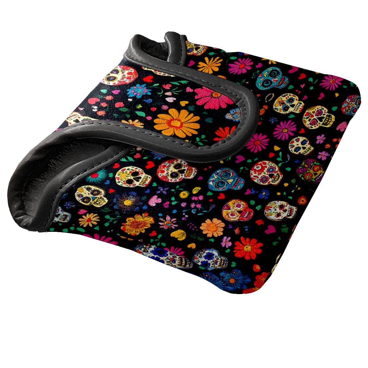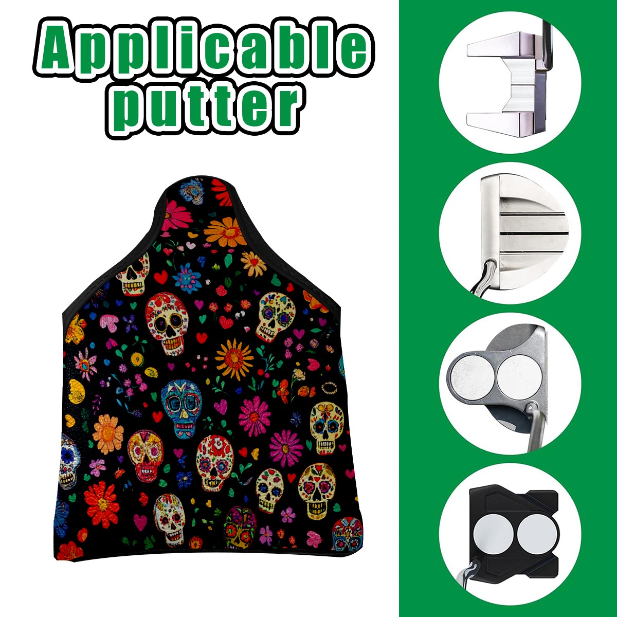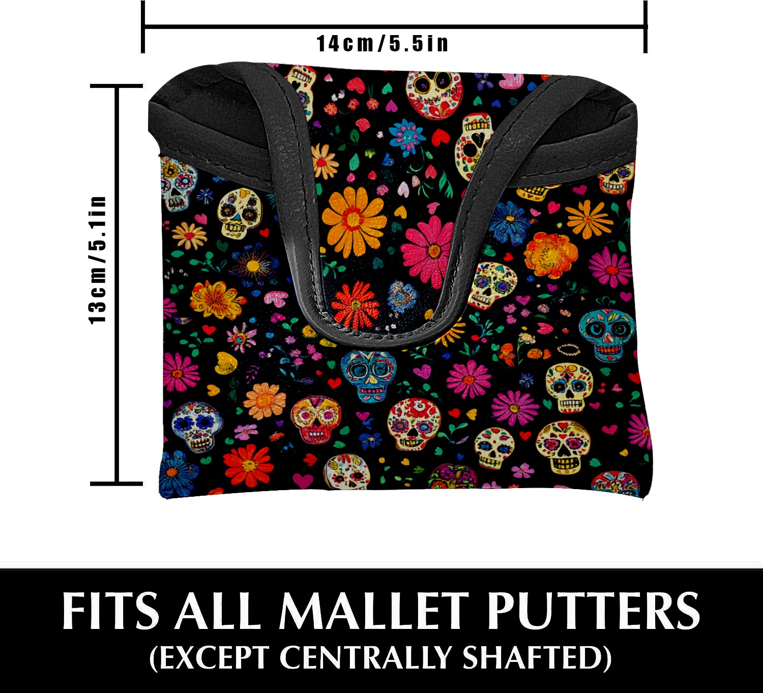 Professional Golf Club Head Covers Set for Mallet Putter - Waterproof Design with Stretchable Fit, Universal Club Protection for Men & Women (Colorful Sugar Skulls And Flowers)