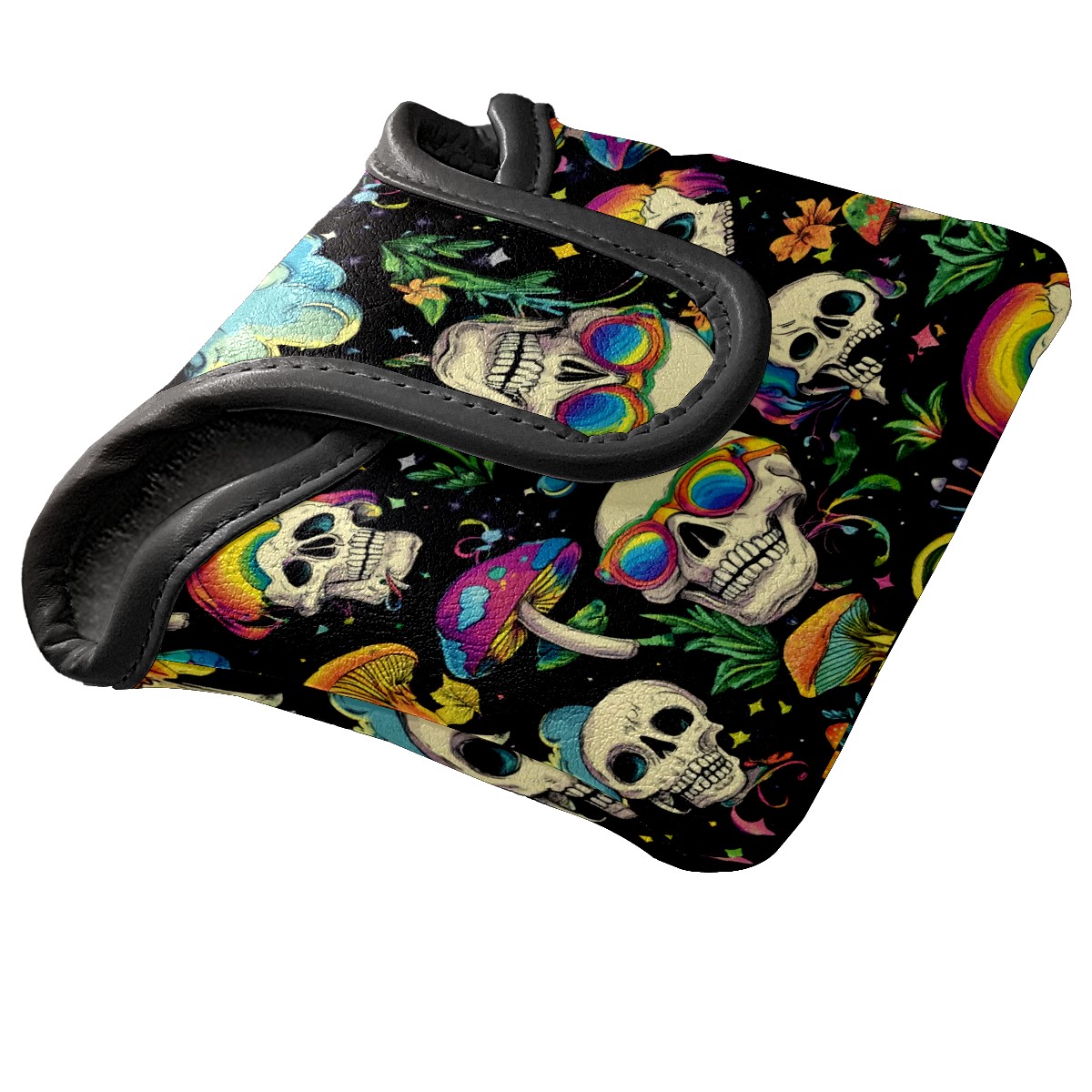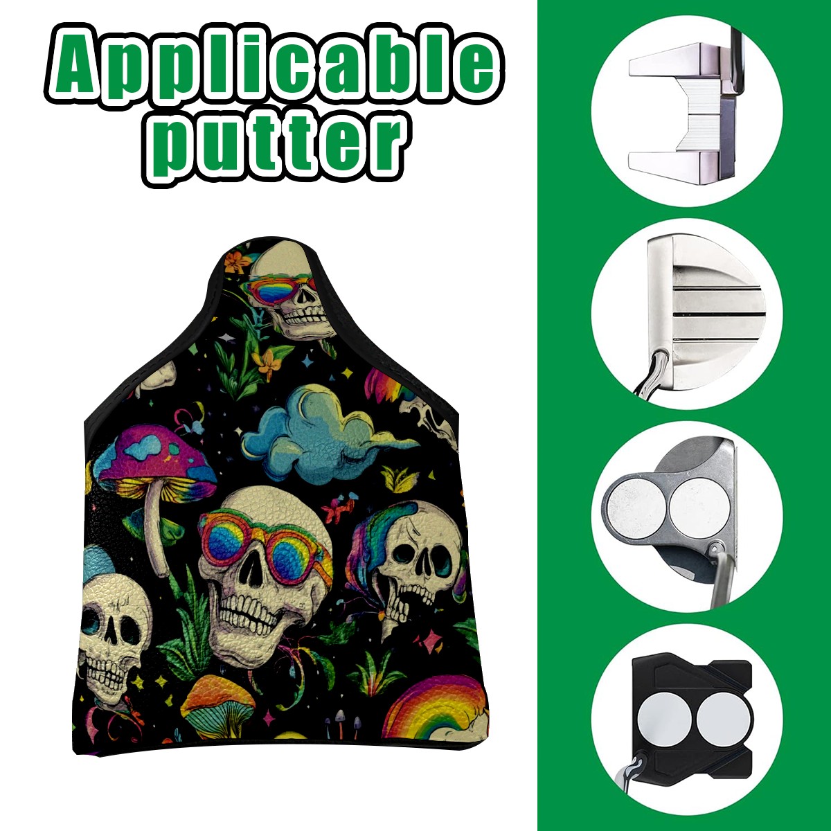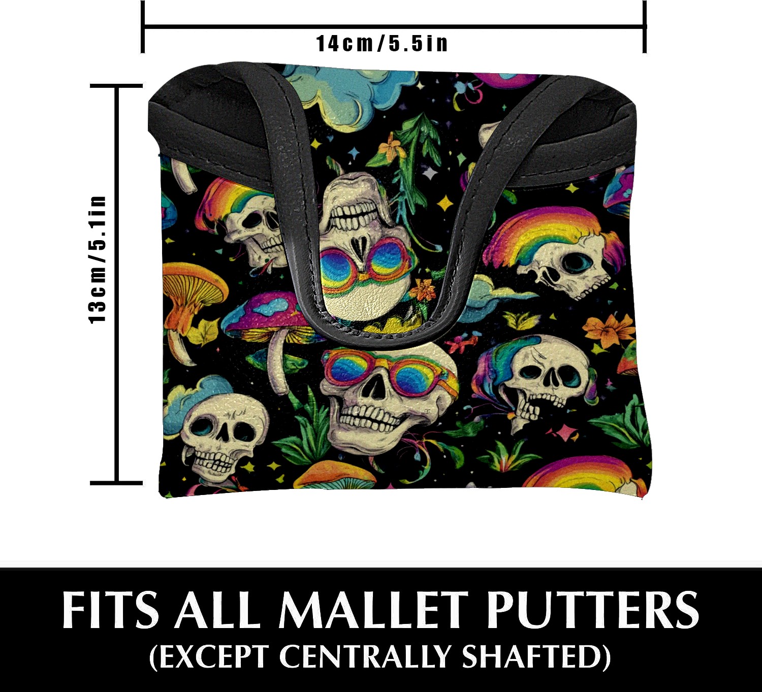 Professional Golf Club Head Covers Set for Mallet Putter - Waterproof Design with Stretchable Fit, Universal Club Protection for Men & Women (Skulls With Rainbow Eyes Mushrooms)