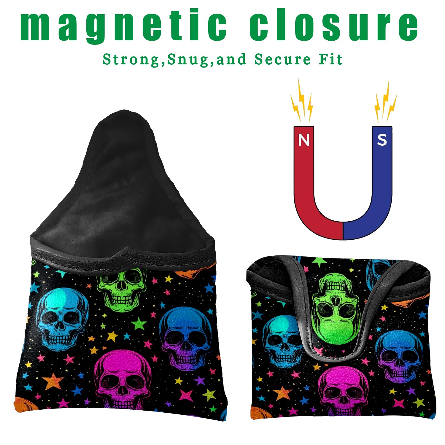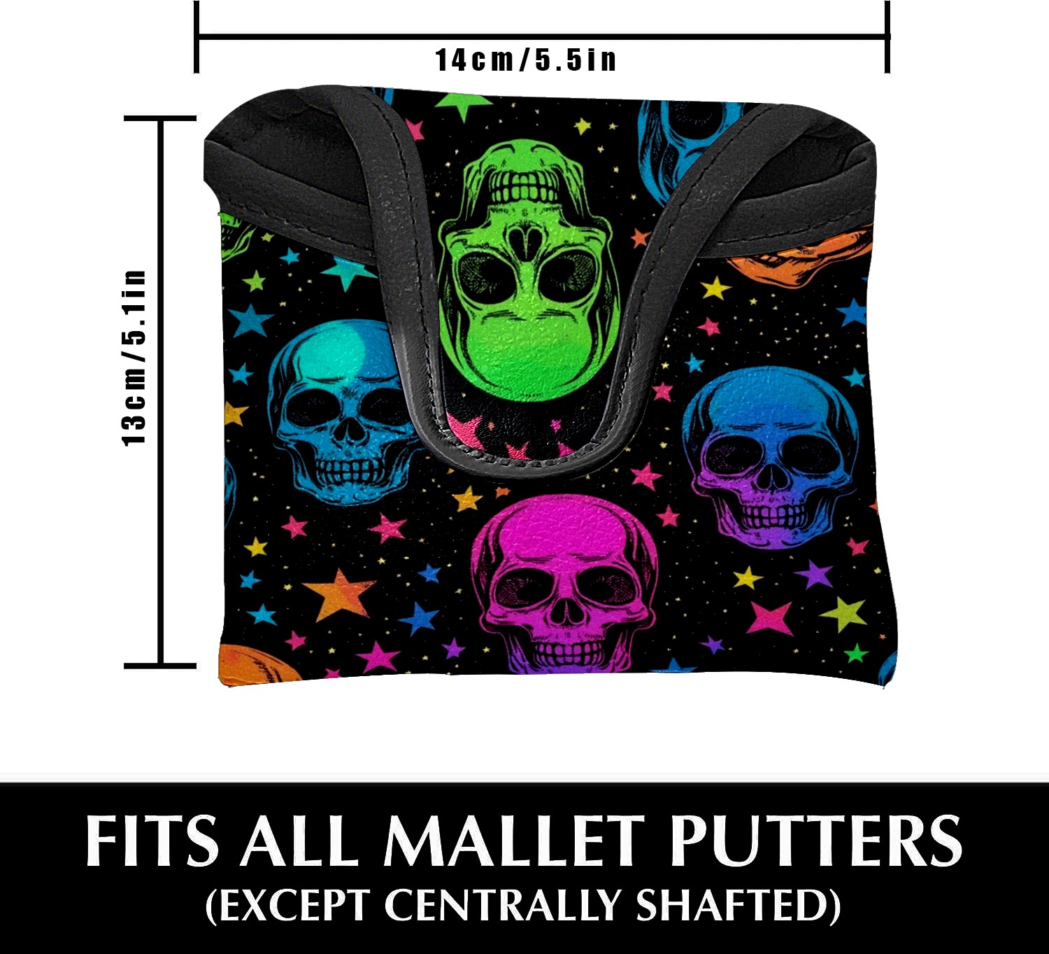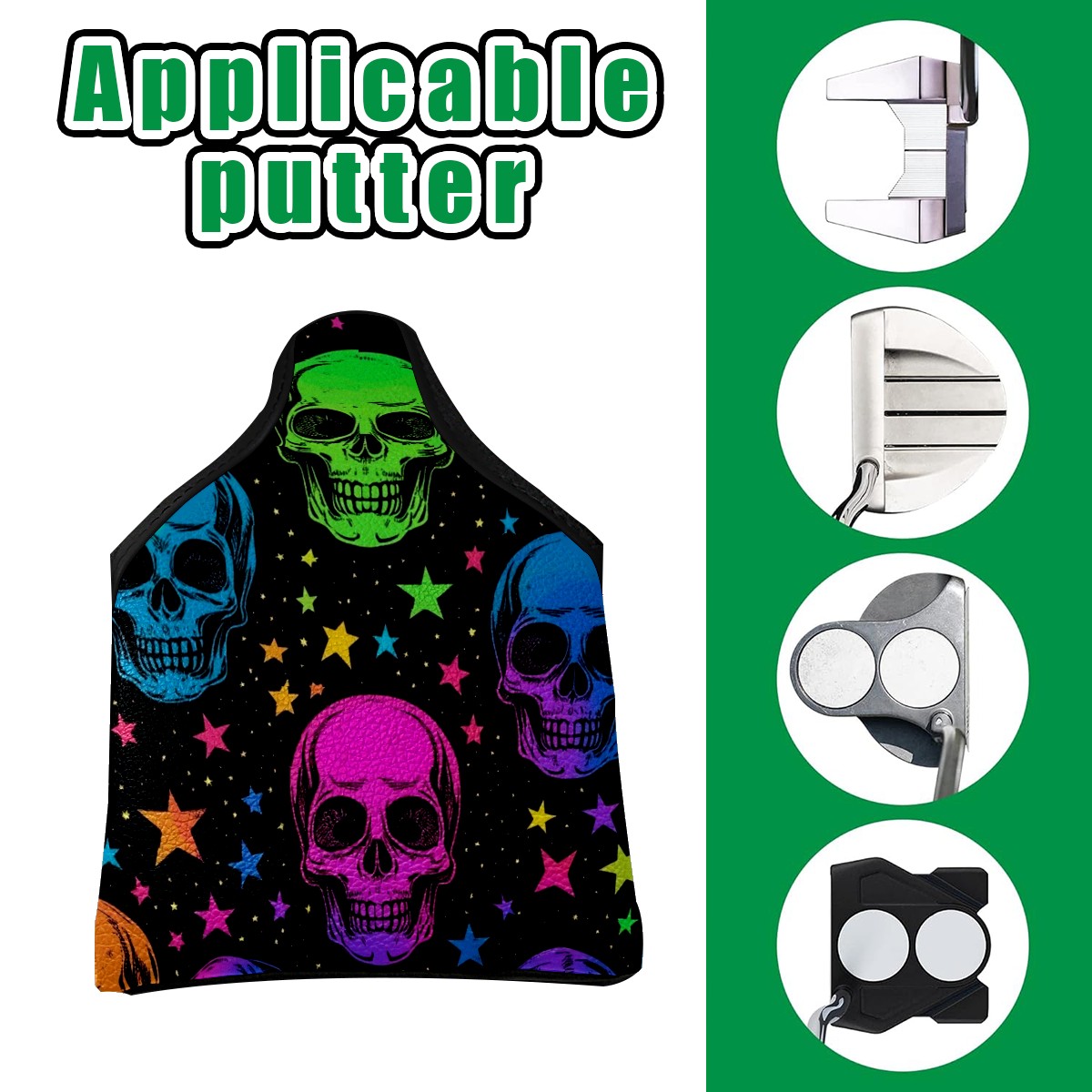 Professional Golf Club Head Covers Set for Mallet Putter - Waterproof Design with Stretchable Fit, Universal Club Protection for Men & Women (Skulls In Rainbow Colors)