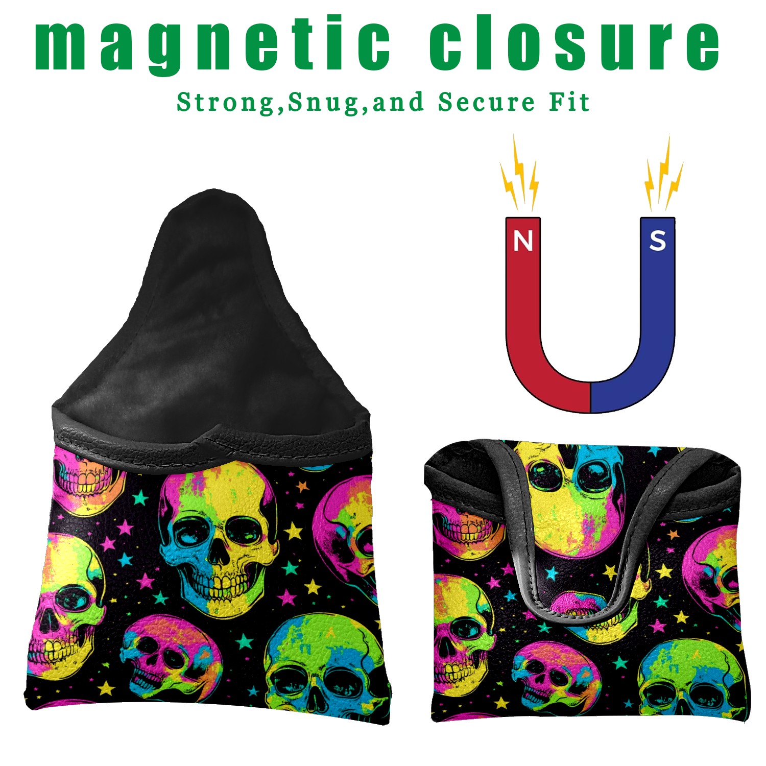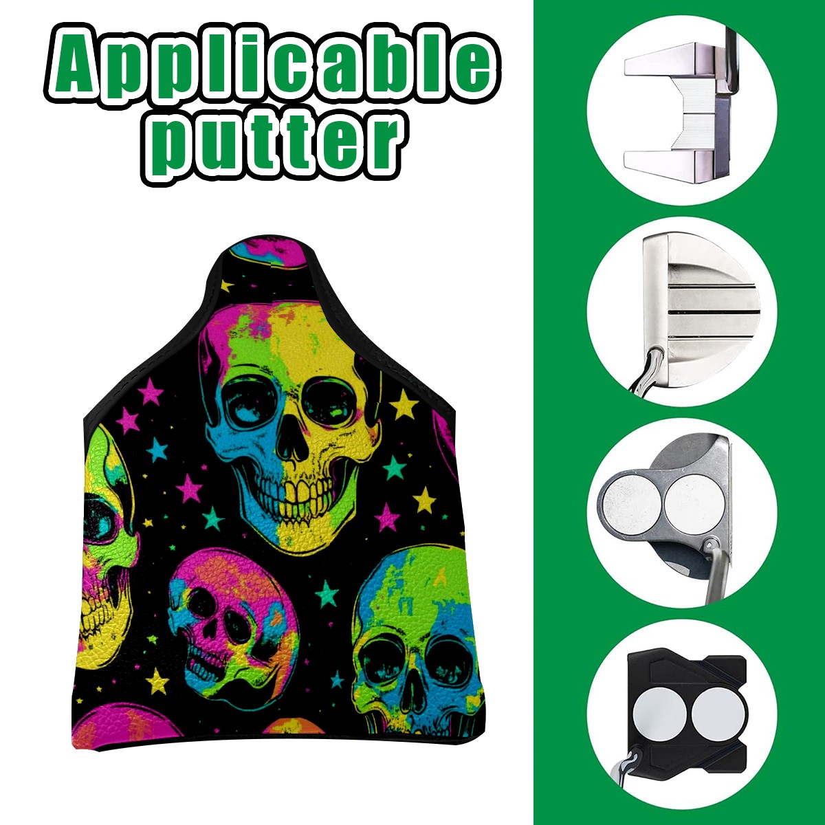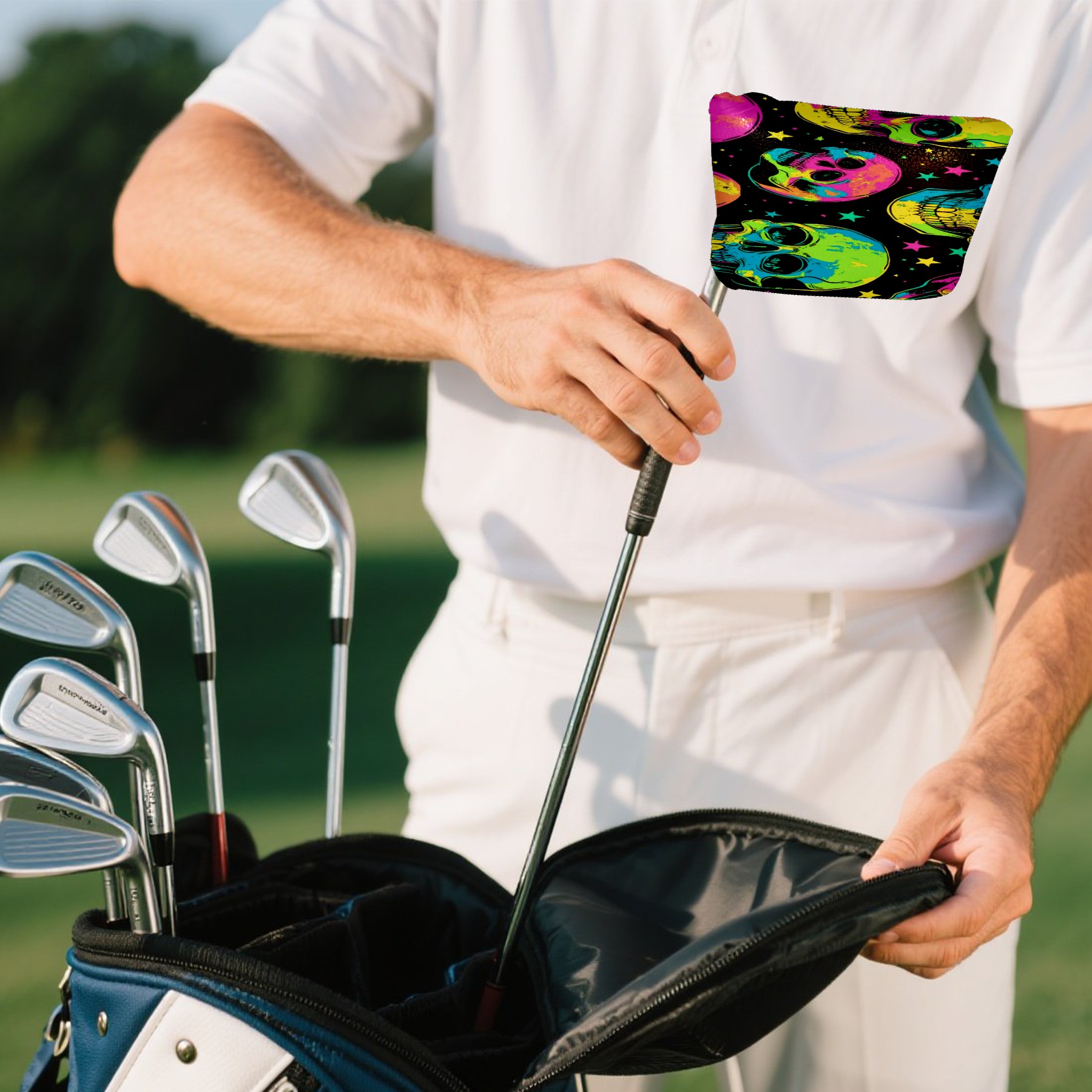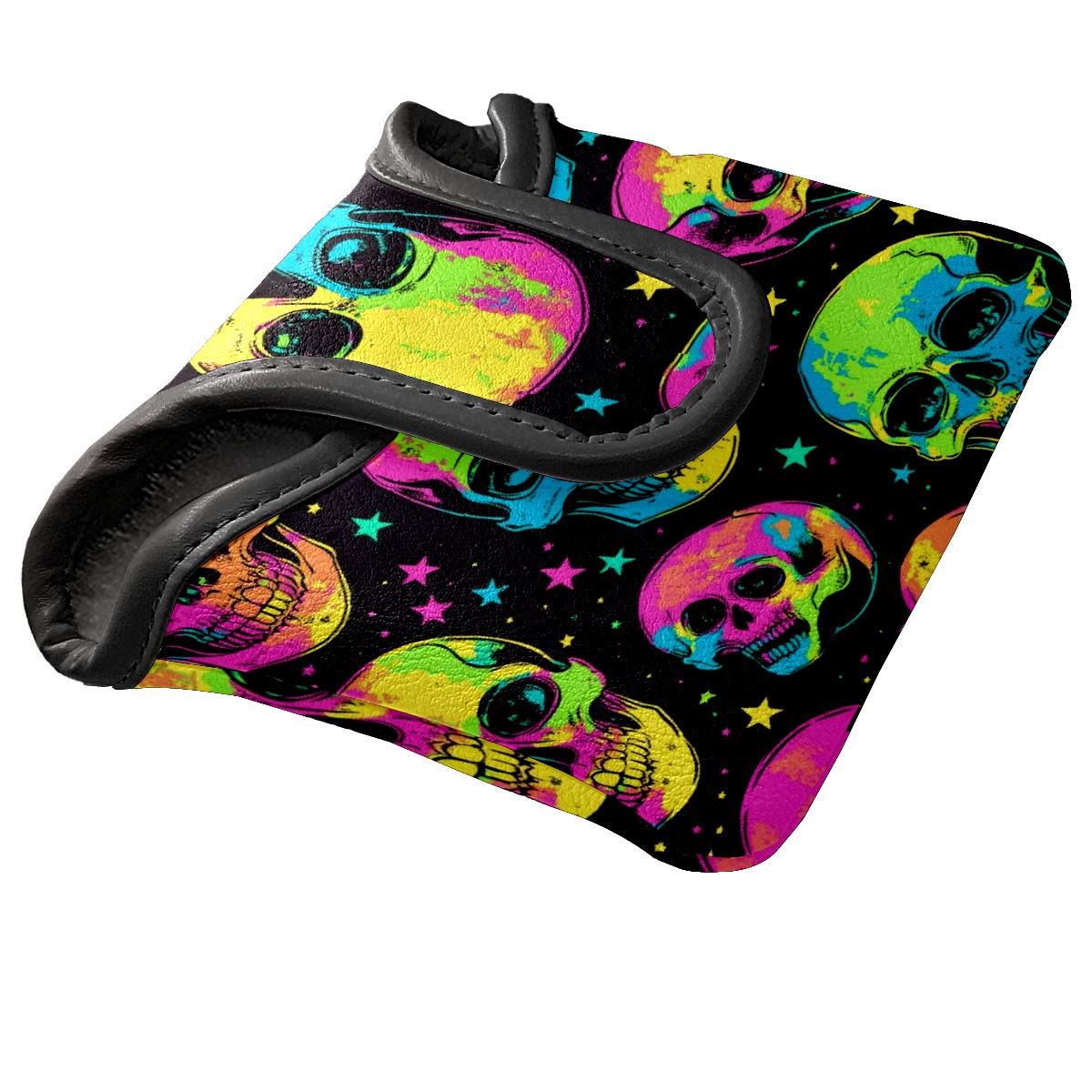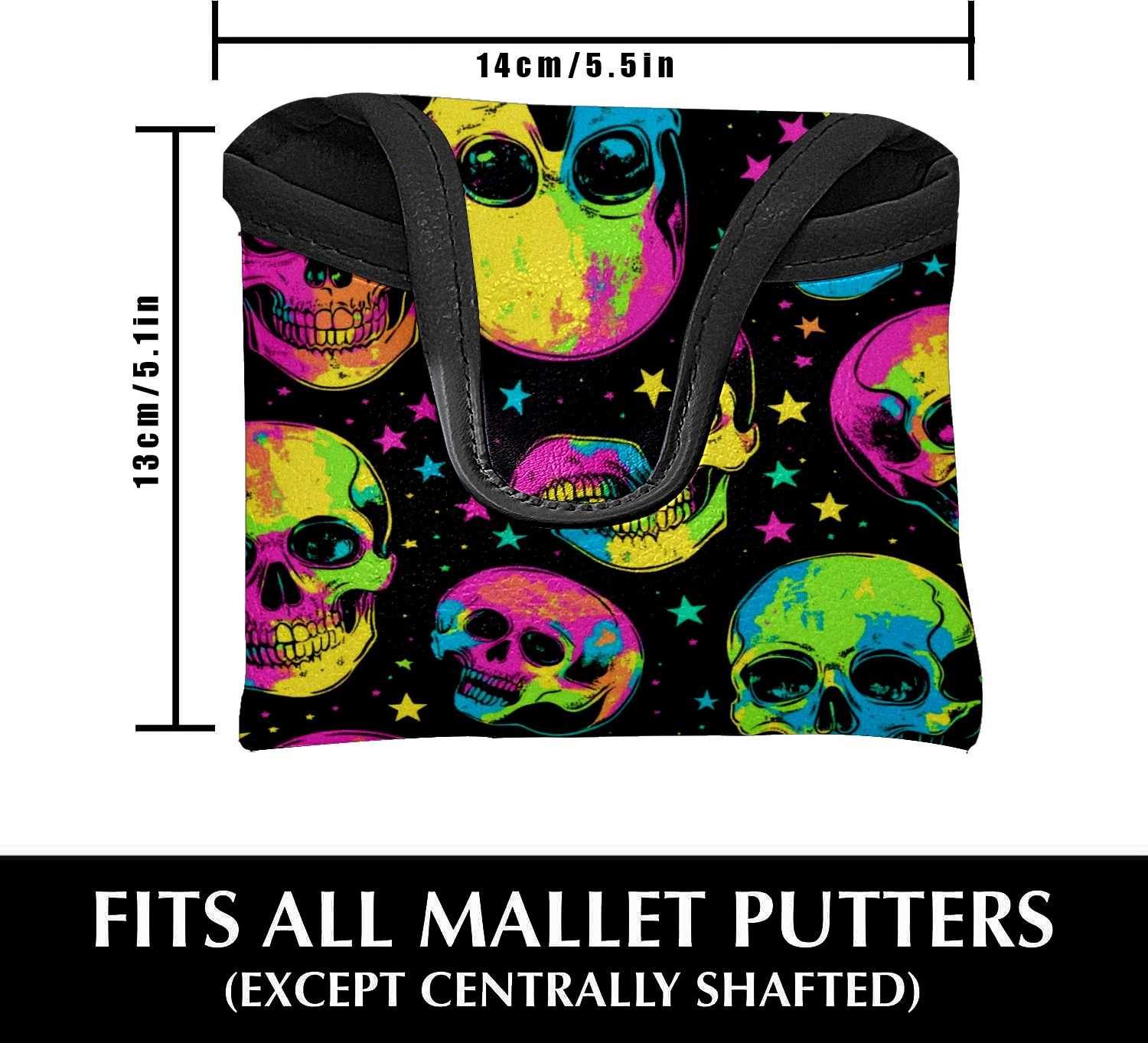 Professional Golf Club Head Covers Set for Mallet Putter - Waterproof Design with Stretchable Fit, Universal Club Protection for Men & Women (Skulls In Neon Colors)