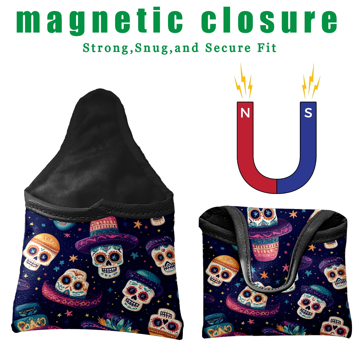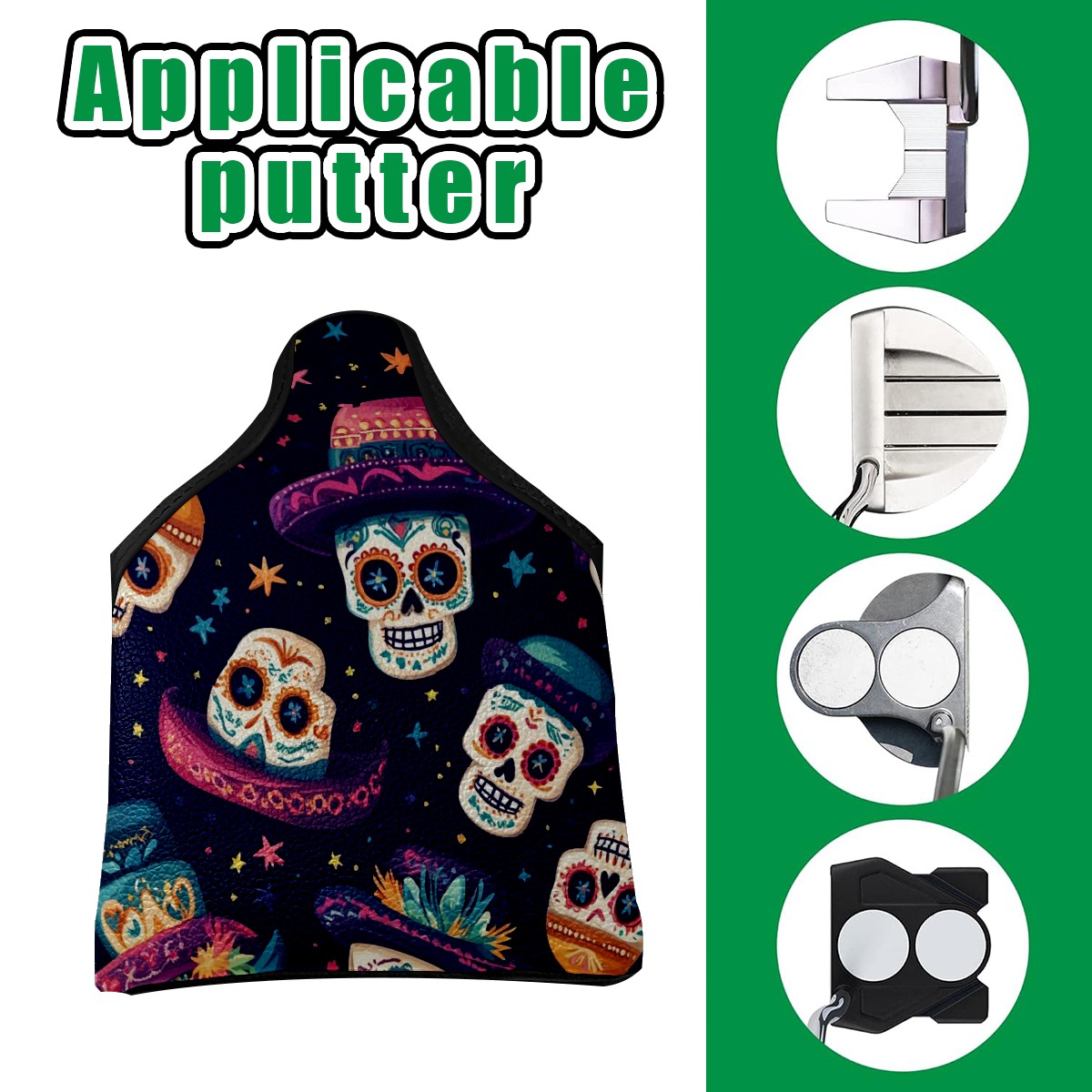 Professional Golf Club Head Covers Set for Mallet Putter - Waterproof Design with Stretchable Fit, Universal Club Protection for Men & Women (Skulls And Mexican Hat)