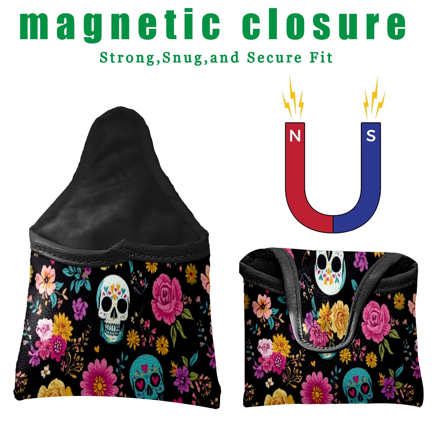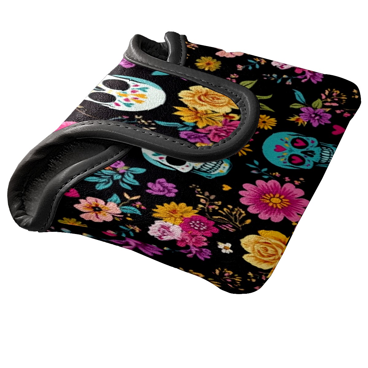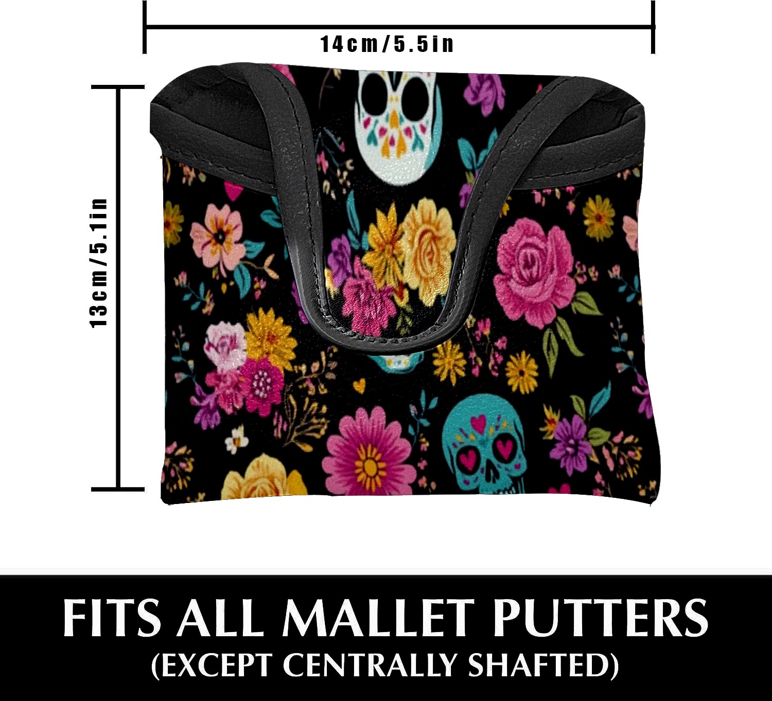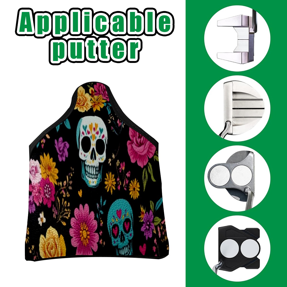 Professional Golf Club Head Covers Set for Mallet Putter - Waterproof Design with Stretchable Fit, Universal Club Protection for Men & Women (Skull And Colorful Floral)