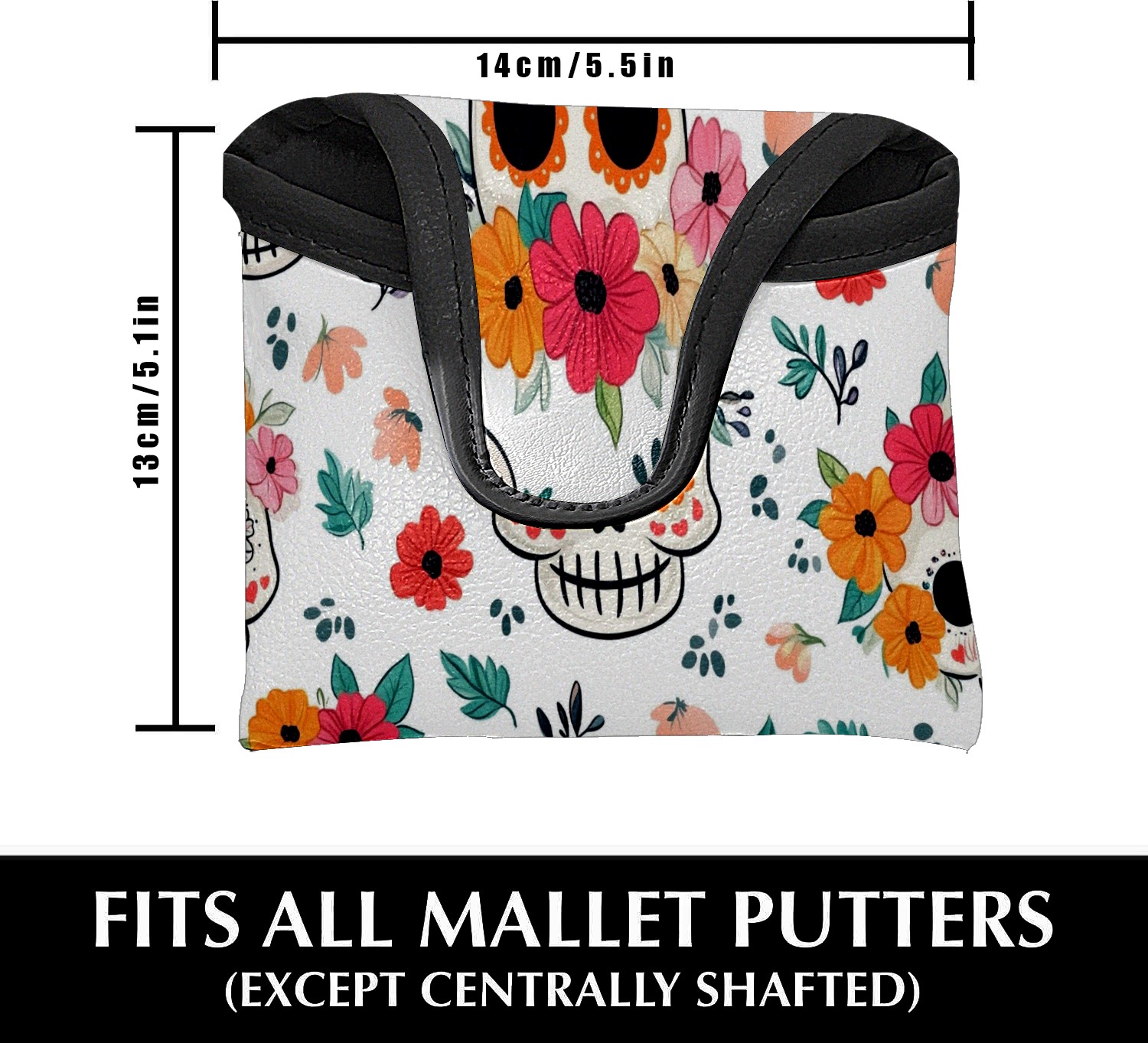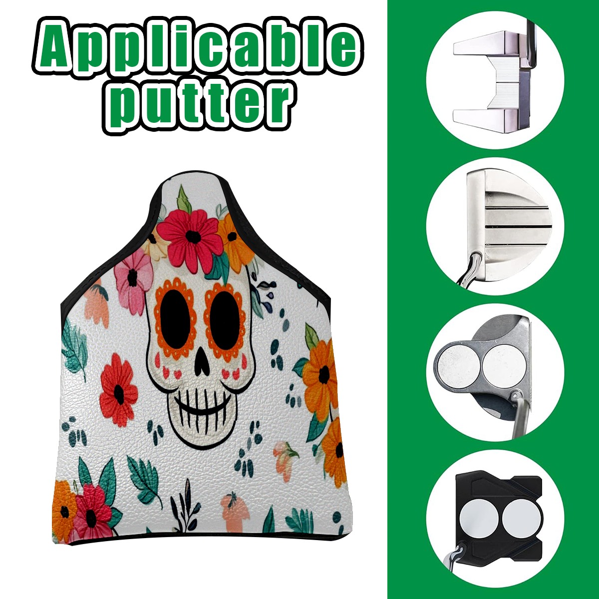 Professional Golf Club Head Covers Set for Mallet Putter - Waterproof Design with Stretchable Fit, Universal Club Protection for Men & Women (Cute Skull And Floral)