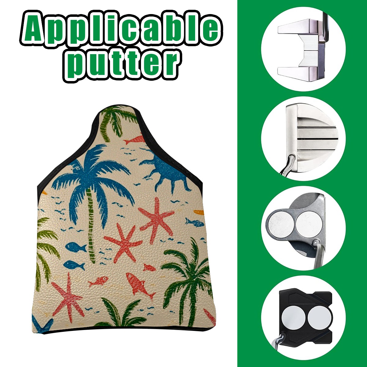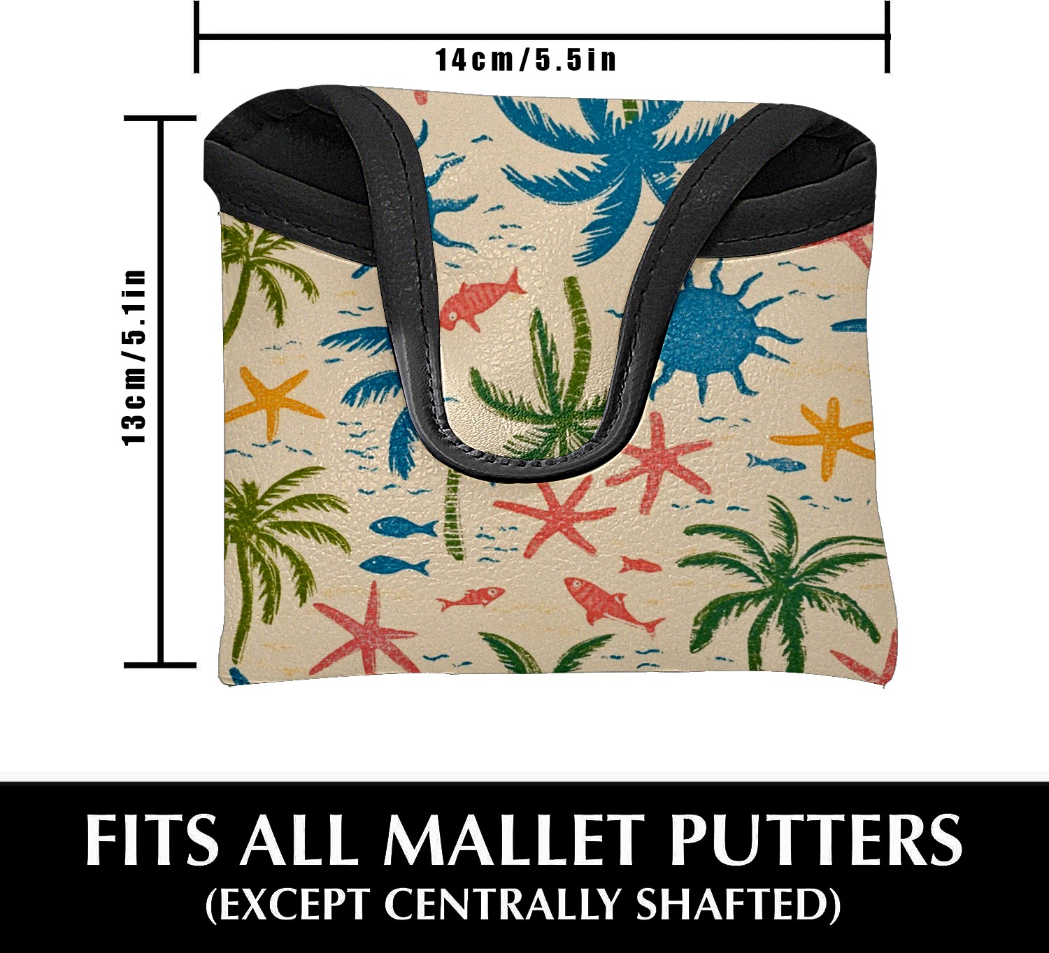 Professional Golf Club Head Covers Set for Mallet Putter - Waterproof Design with Stretchable Fit, Universal Club Protection for Men & Women (Palm Trees And Starfish)