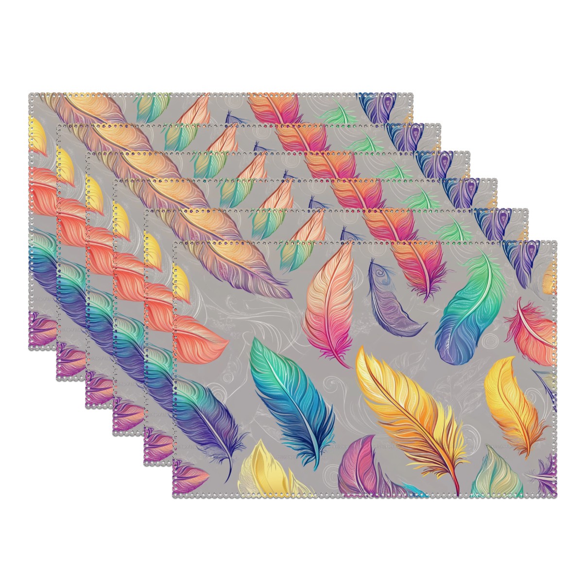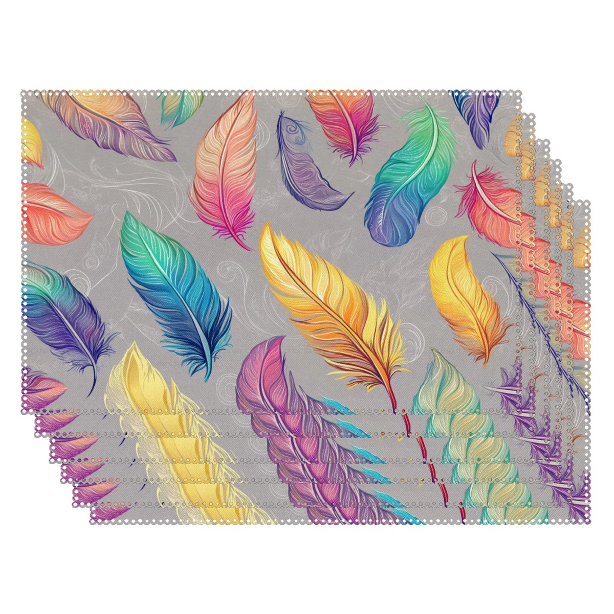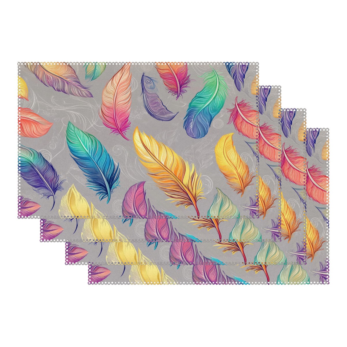 Home Brilliant Placemats Heat Resistant Dining Table Place Mats Plate Mat Cloth Placemat Seasonal Holiday Kitchen Tablecloth Indoor Outdoor Colorful Feather7