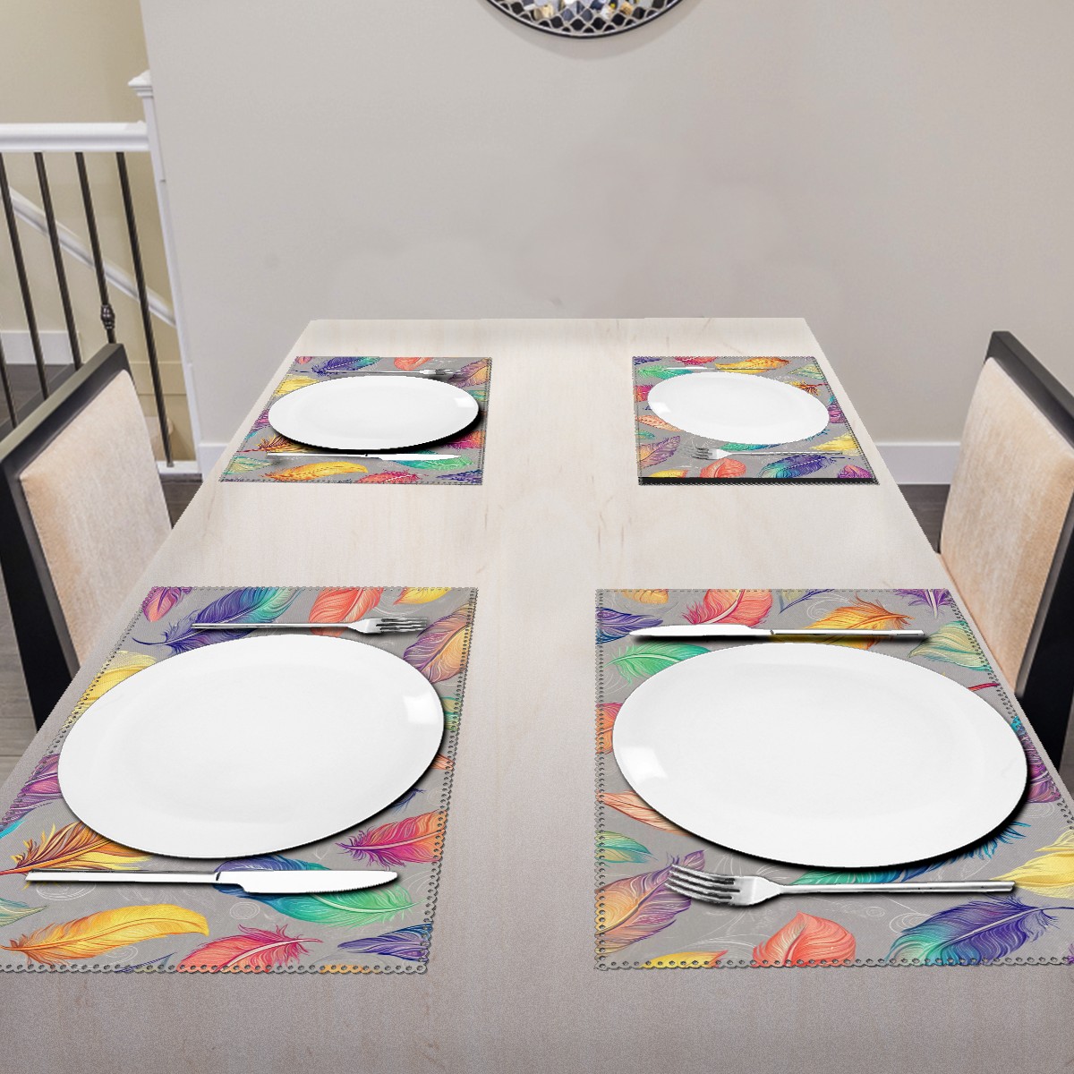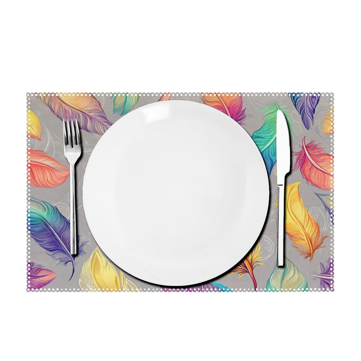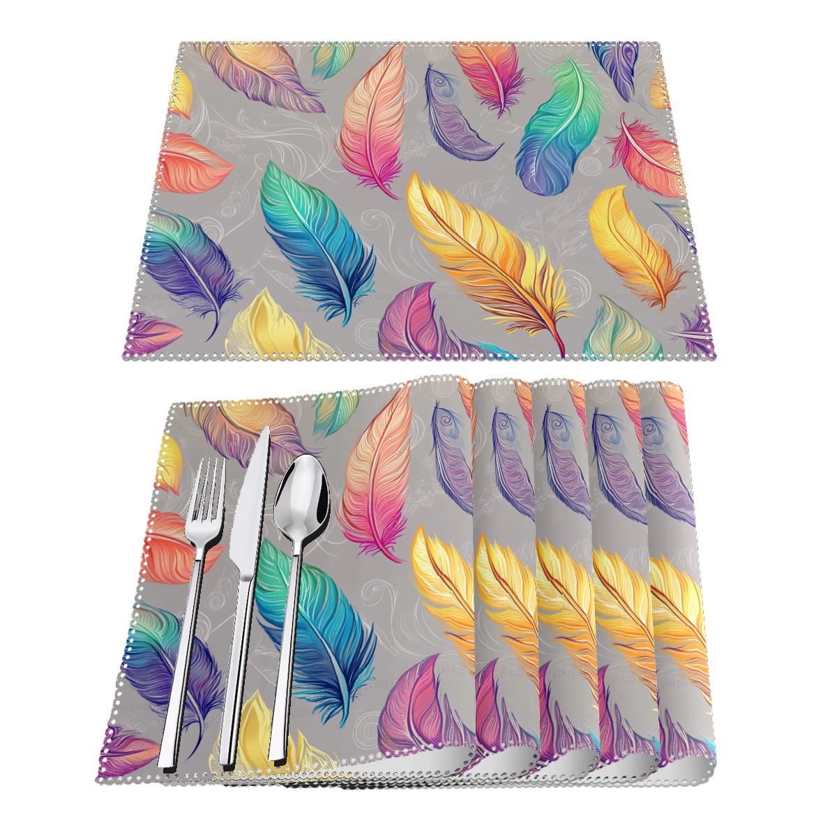 Home Brilliant Placemats Heat Resistant Dining Table Place Mats Plate Mat Cloth Placemat Seasonal Holiday Kitchen Tablecloth Indoor Outdoor Colorful Feather7