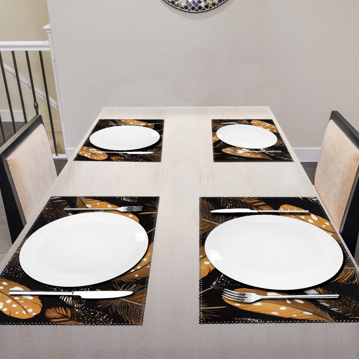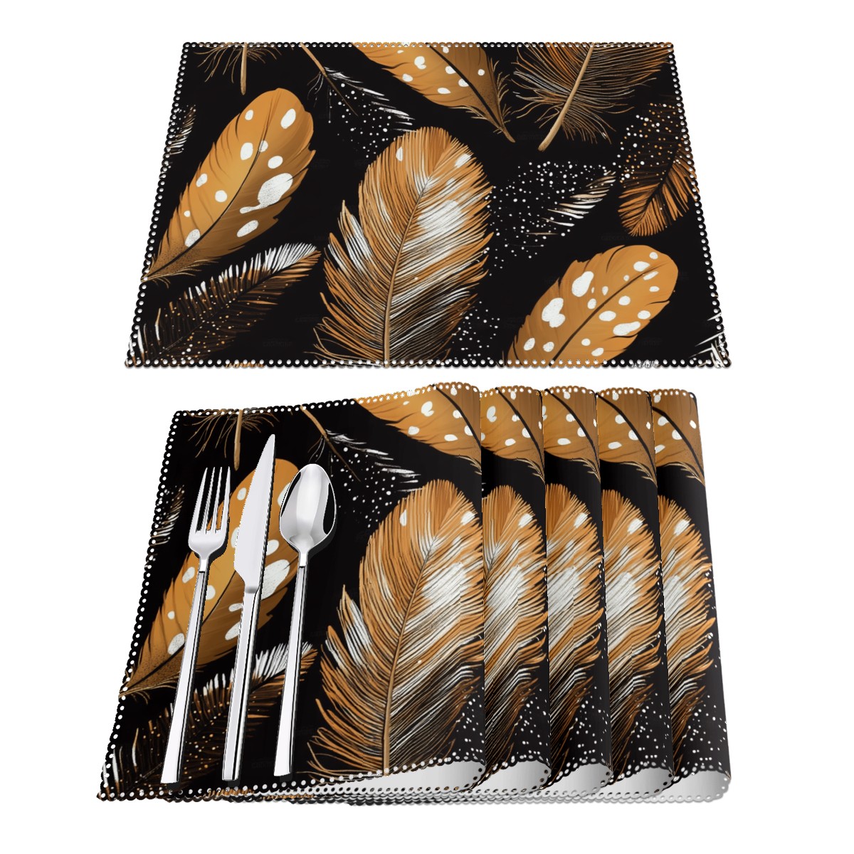 Home Brilliant Placemats Heat Resistant Dining Table Place Mats Plate Mat Cloth Placemat Seasonal Holiday Kitchen Tablecloth Indoor Outdoor Brown Feather2