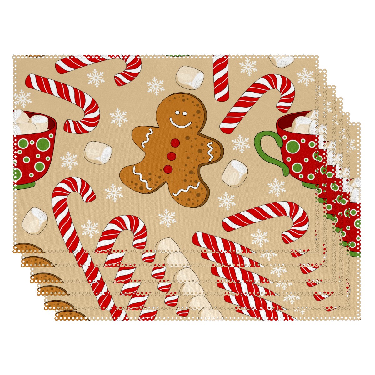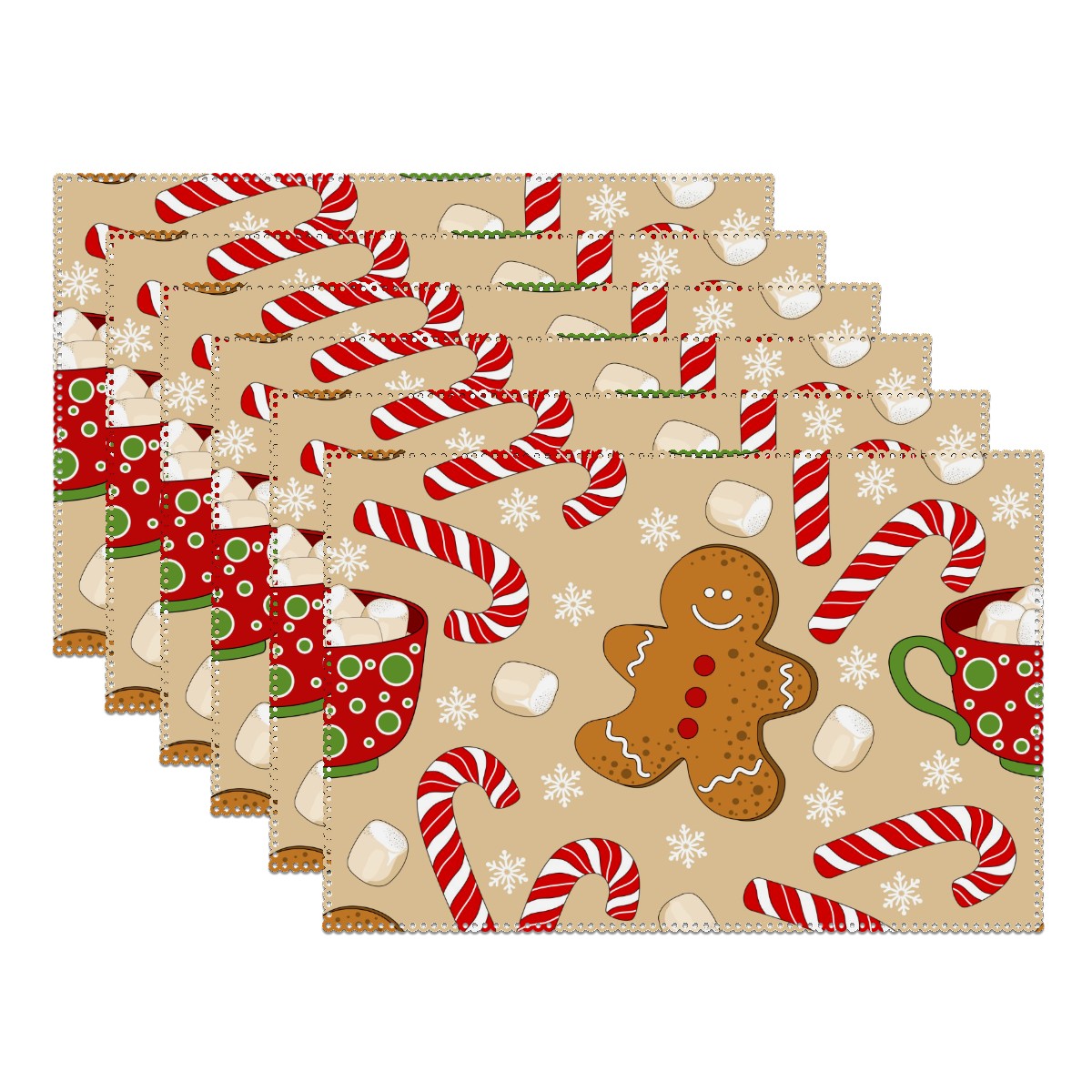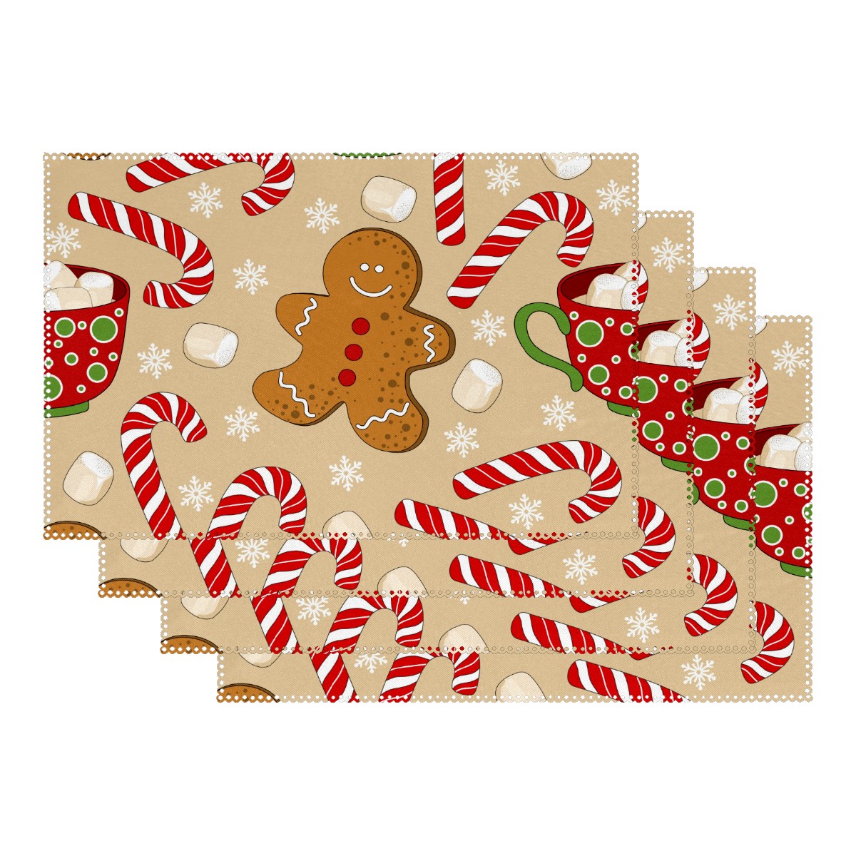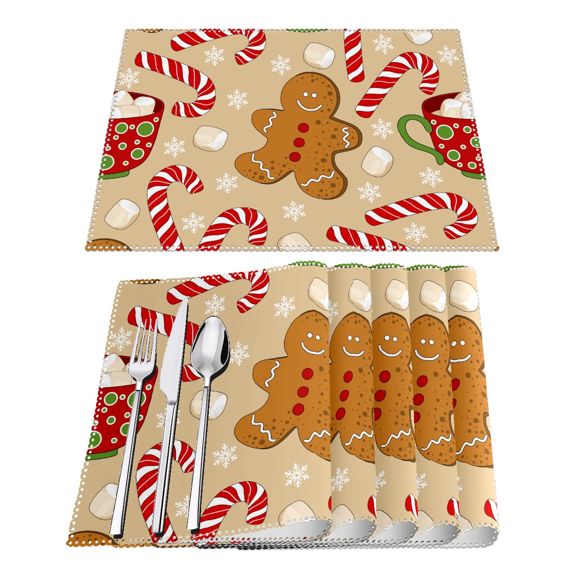 Home Brilliant Placemats Heat Resistant Dining Table Place Mats Plate Mat Cloth Placemat Seasonal Holiday Kitchen Tablecloth Indoor Outdoor Christmas Gingerbread Man Candy