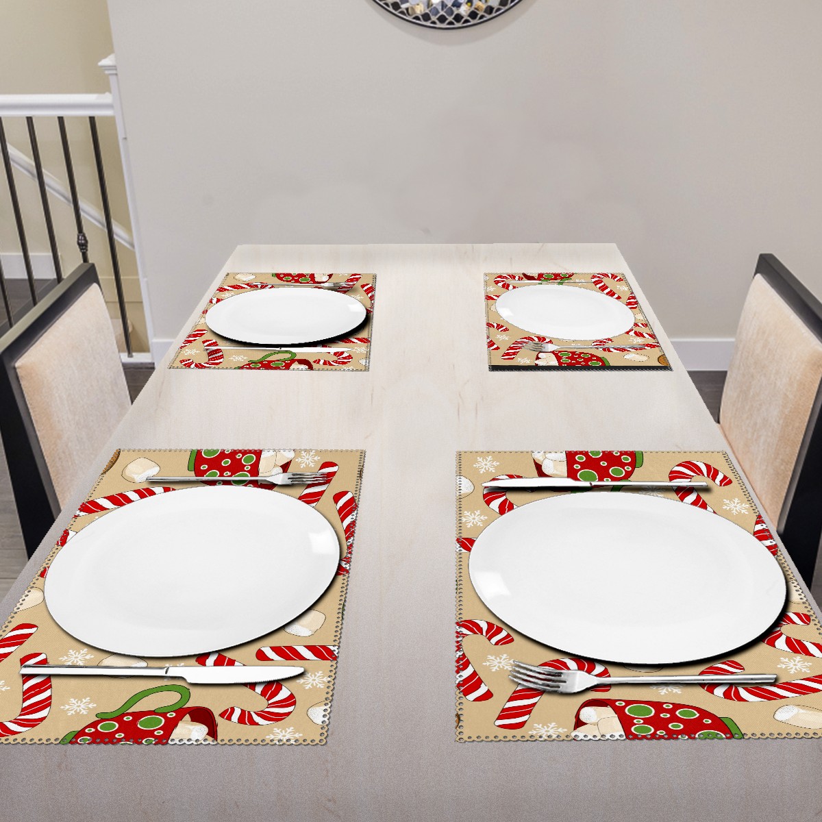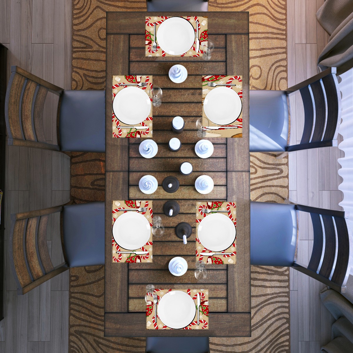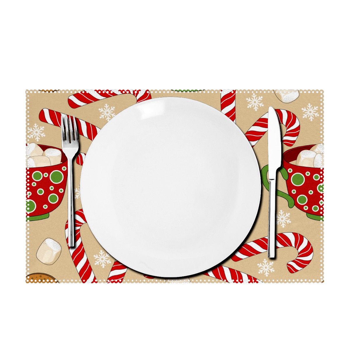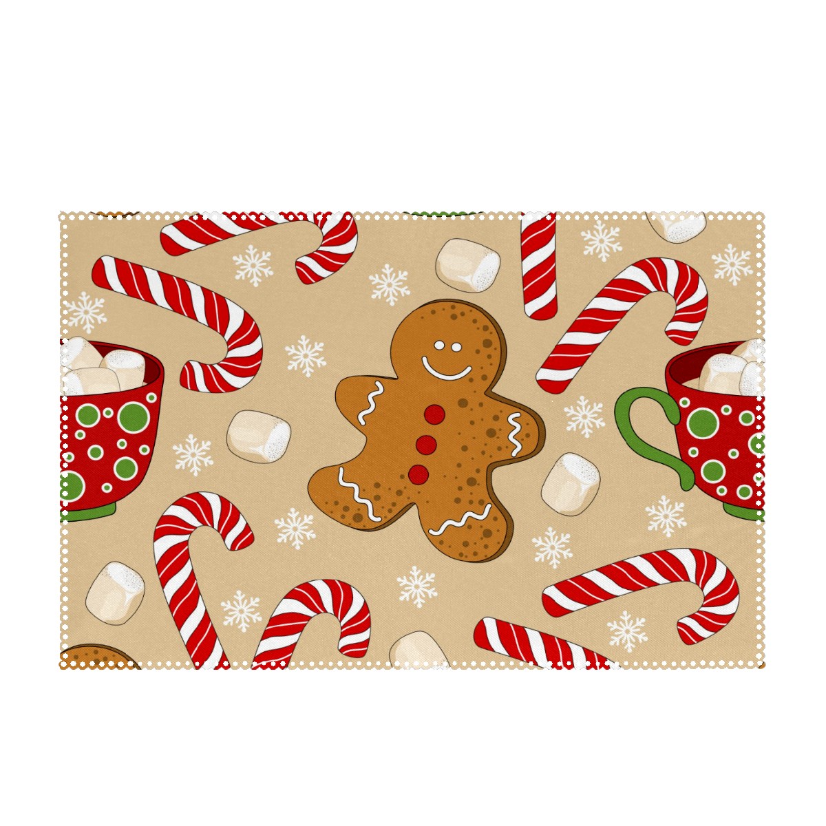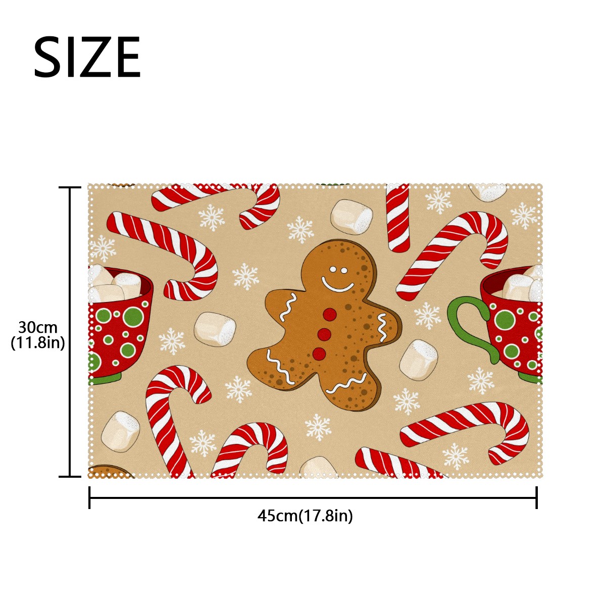 Home Brilliant Placemats Heat Resistant Dining Table Place Mats Plate Mat Cloth Placemat Seasonal Holiday Kitchen Tablecloth Indoor Outdoor Christmas Gingerbread Man Candy
