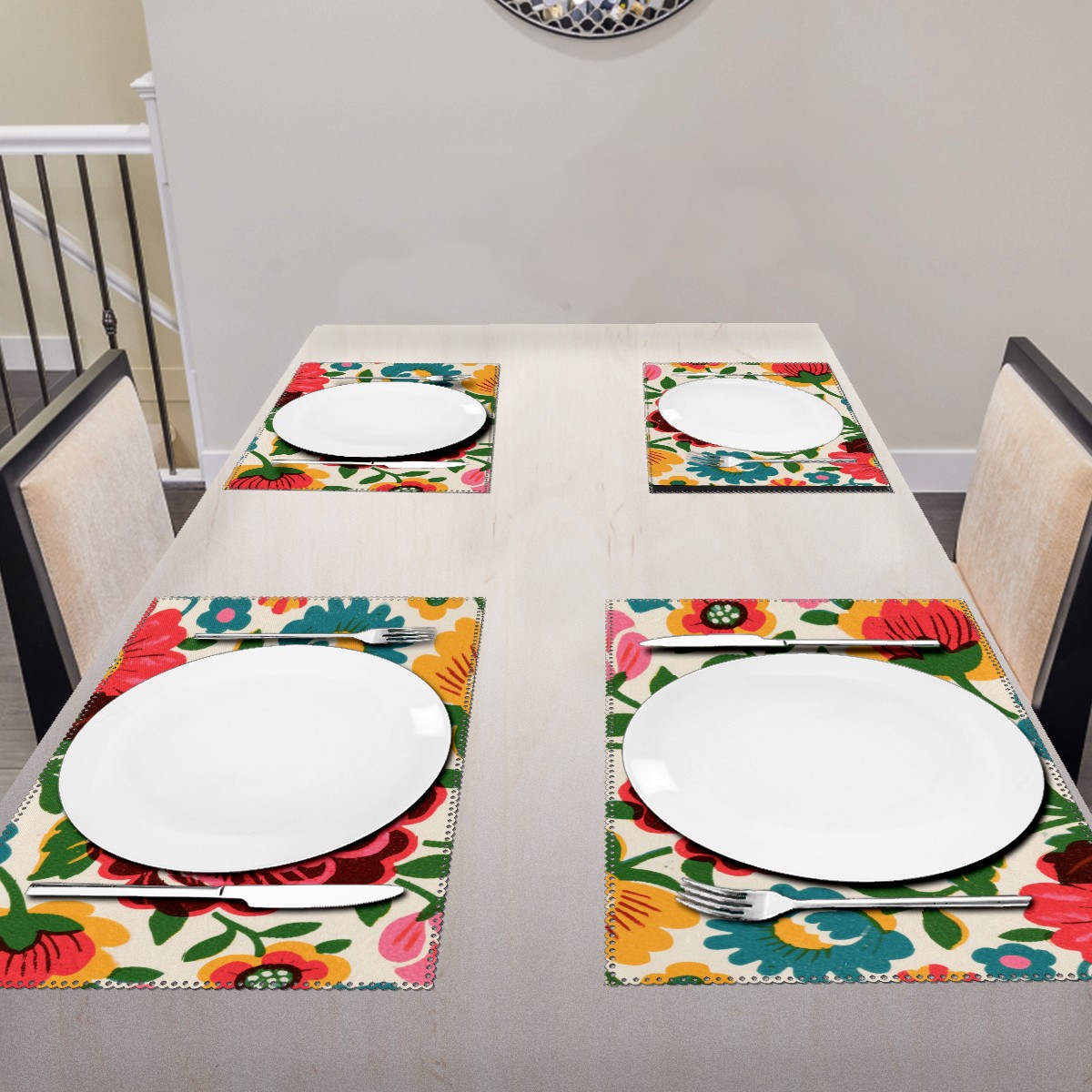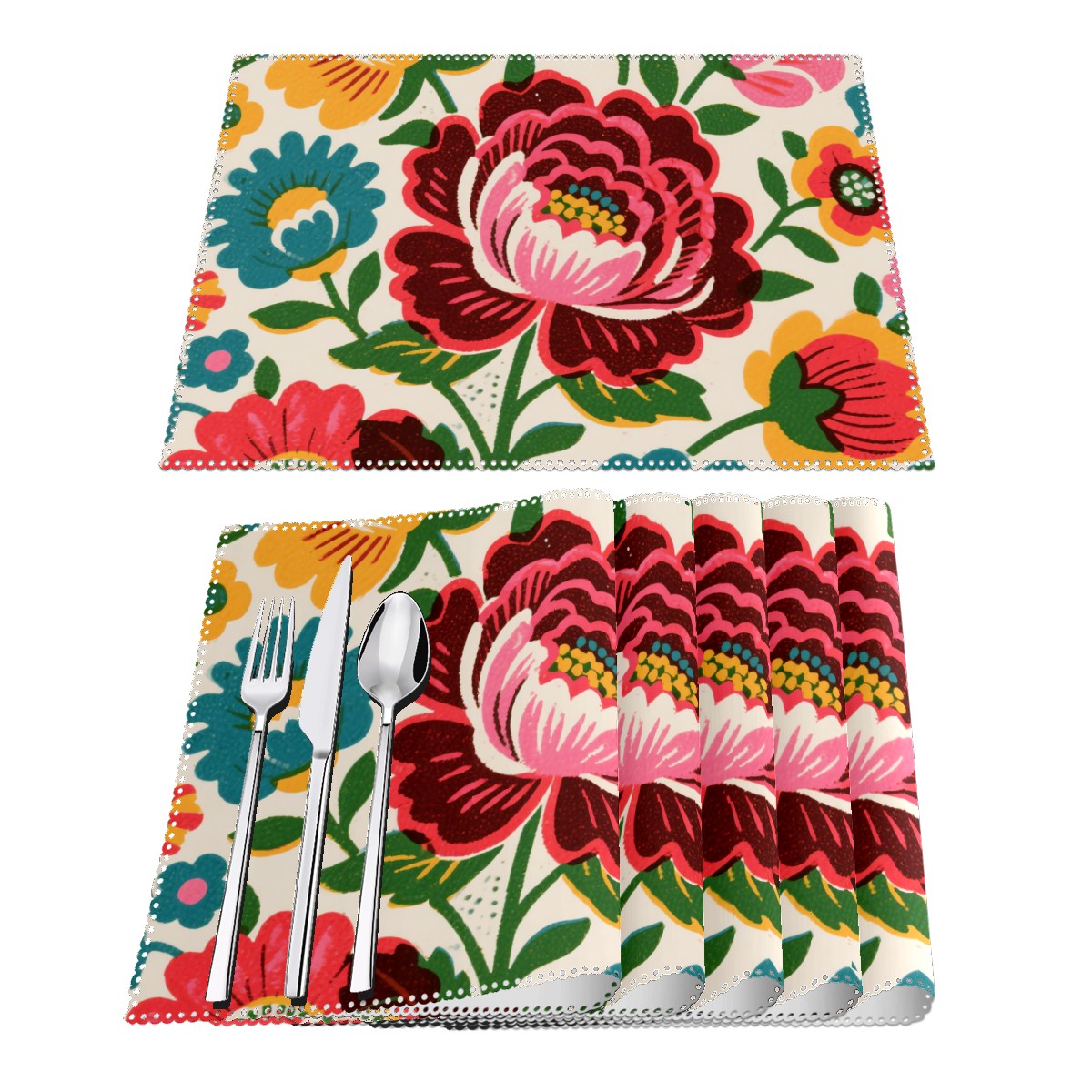 Home Brilliant Placemats Heat Resistant Dining Table Place Mats Plate Mat Cloth Placemat Seasonal Holiday Kitchen Tablecloth Indoor Outdoor Ink Printing Flowers (10)