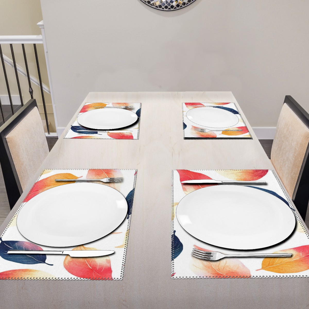 Home Brilliant Placemats Heat Resistant Dining Table Place Mats Plate Mat Cloth Placemat Seasonal Holiday Kitchen Tablecloth Indoor Outdoor Leaves4