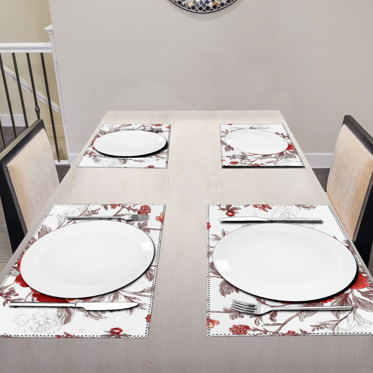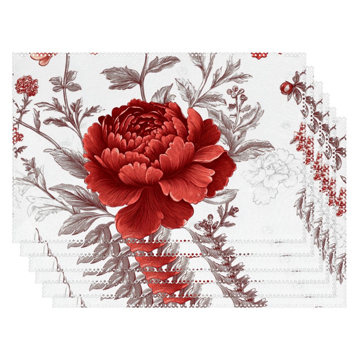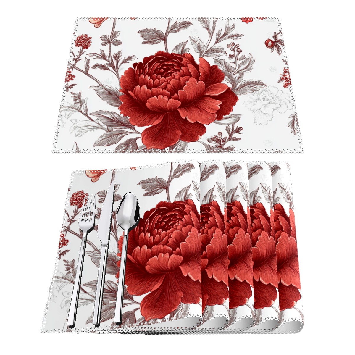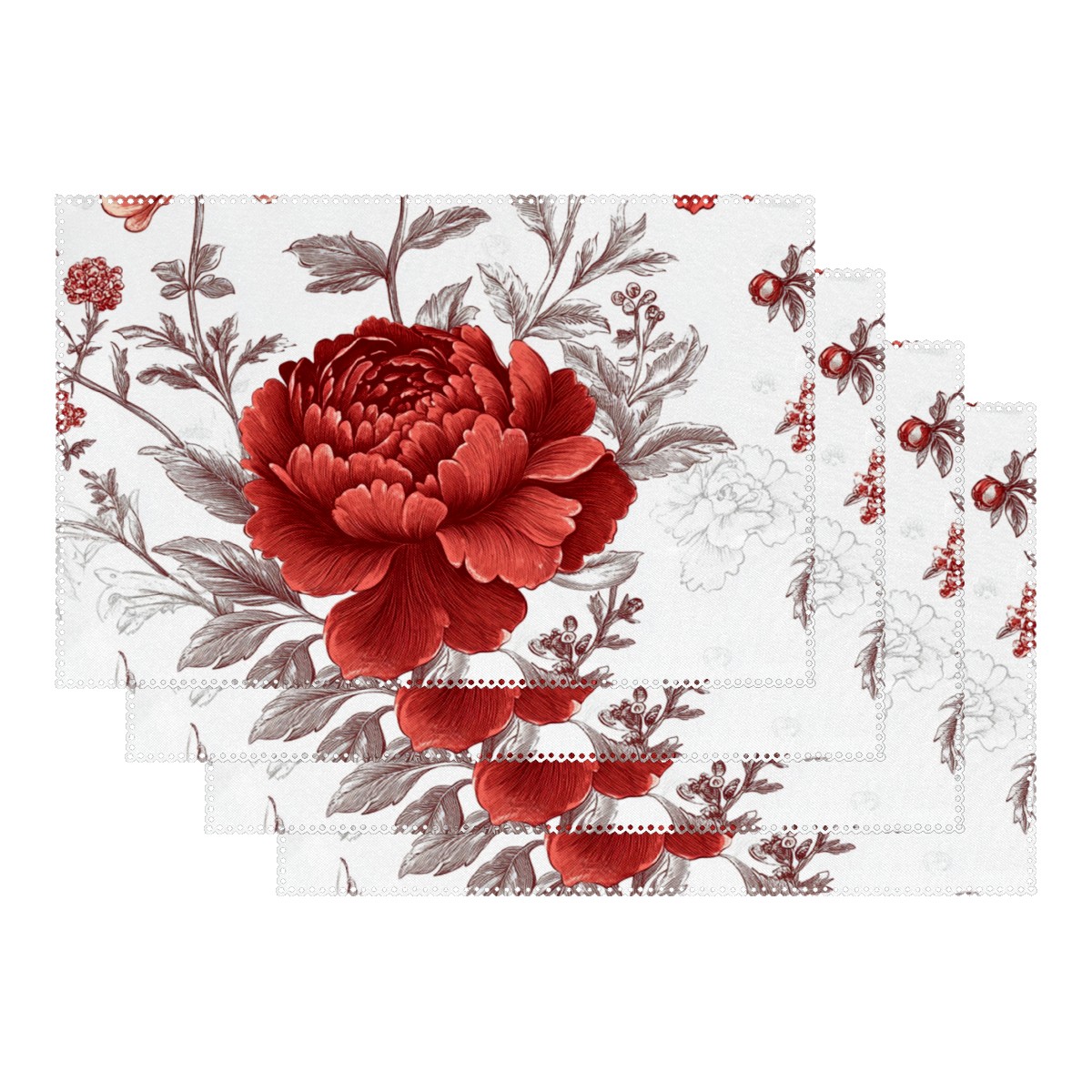 Home Brilliant Placemats Heat Resistant Dining Table Place Mats Plate Mat Cloth Placemat Seasonal Holiday Kitchen Tablecloth Indoor Outdoor Red Flower
