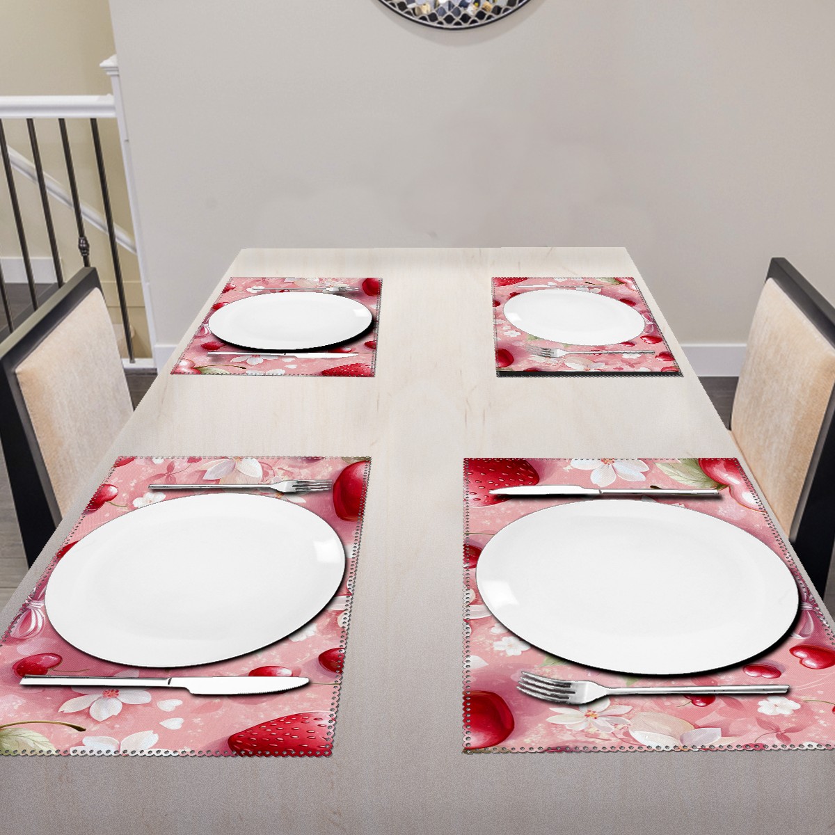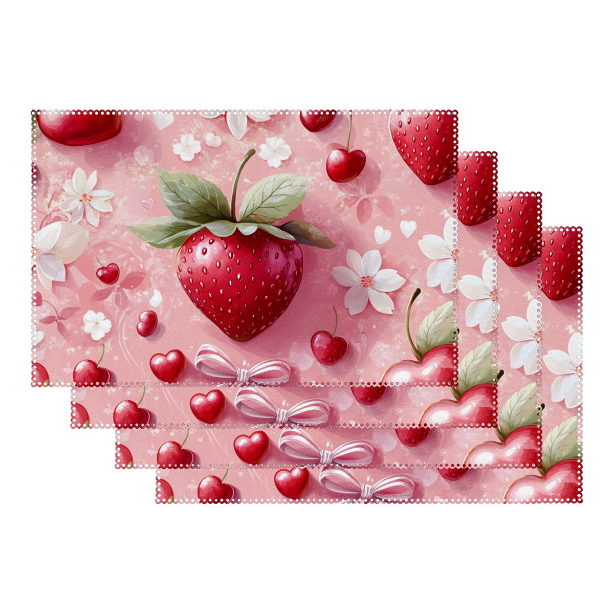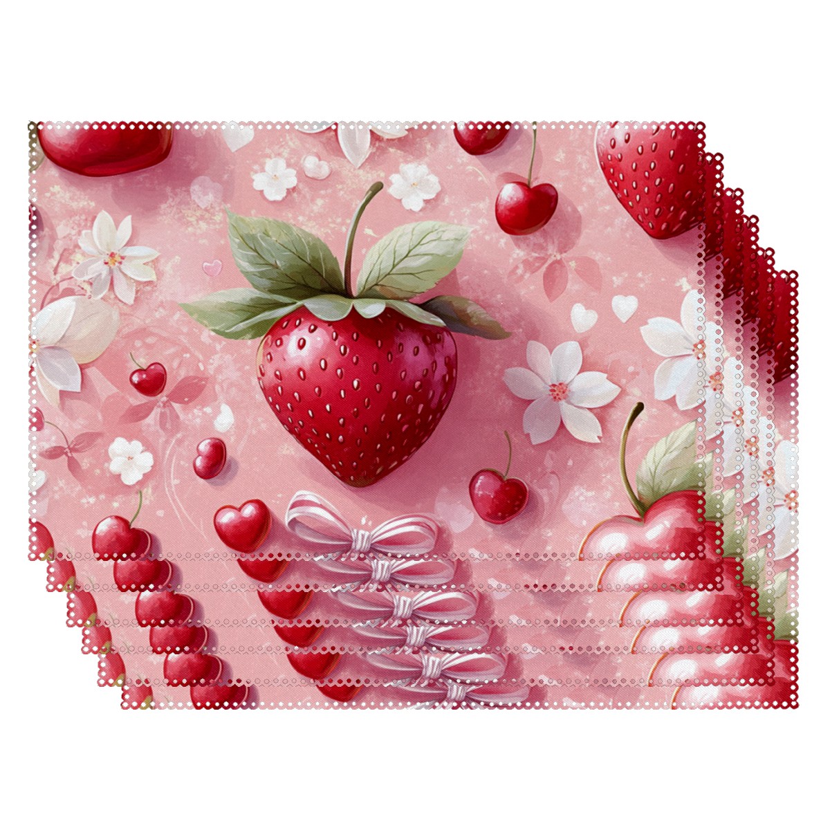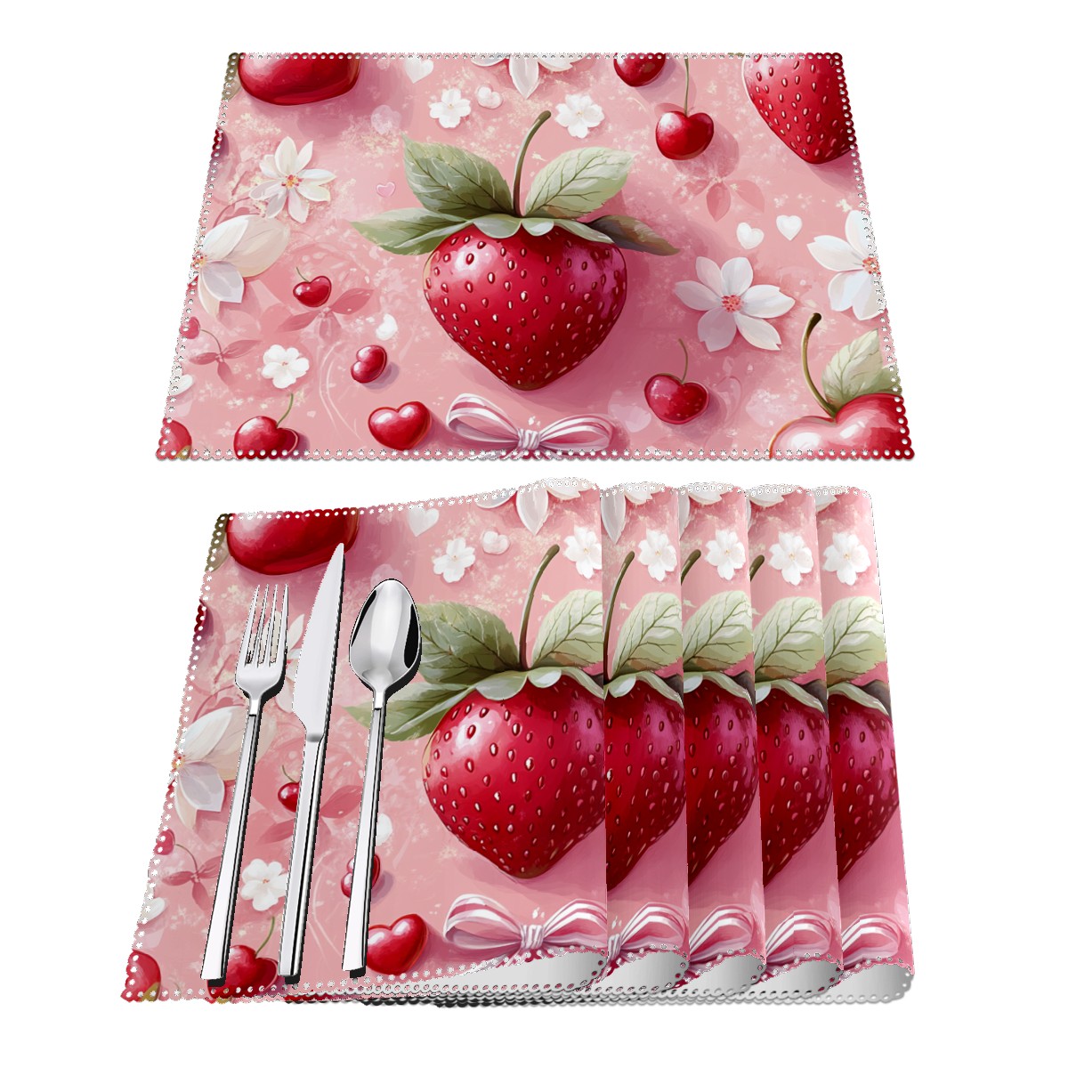 Home Brilliant Placemats Heat Resistant Dining Table Place Mats Plate Mat Cloth Placemat Seasonal Holiday Kitchen Tablecloth Indoor Outdoor Strawberry
