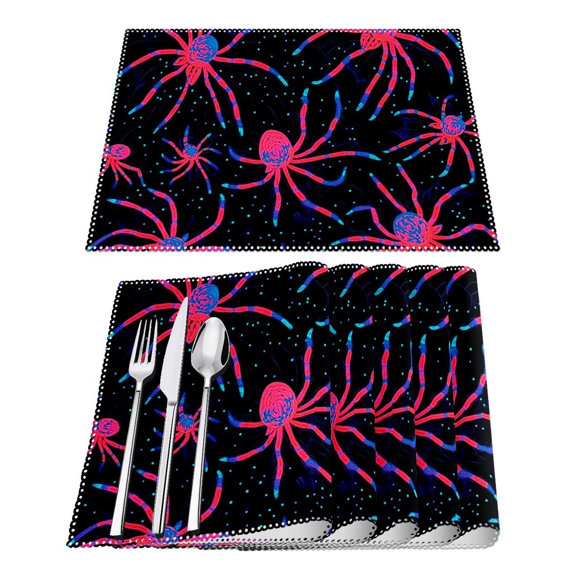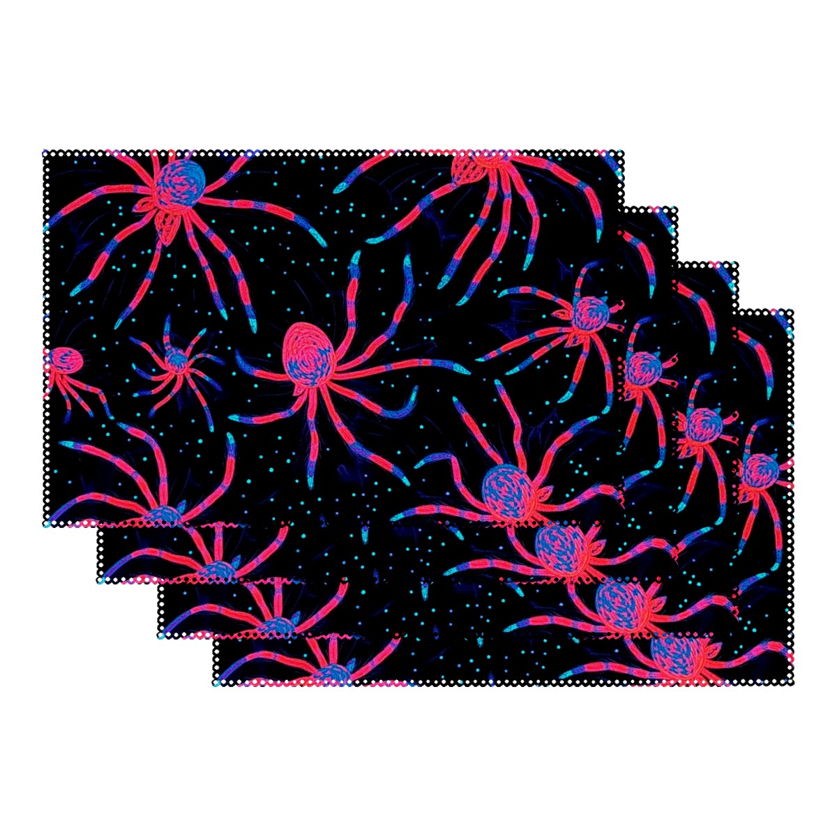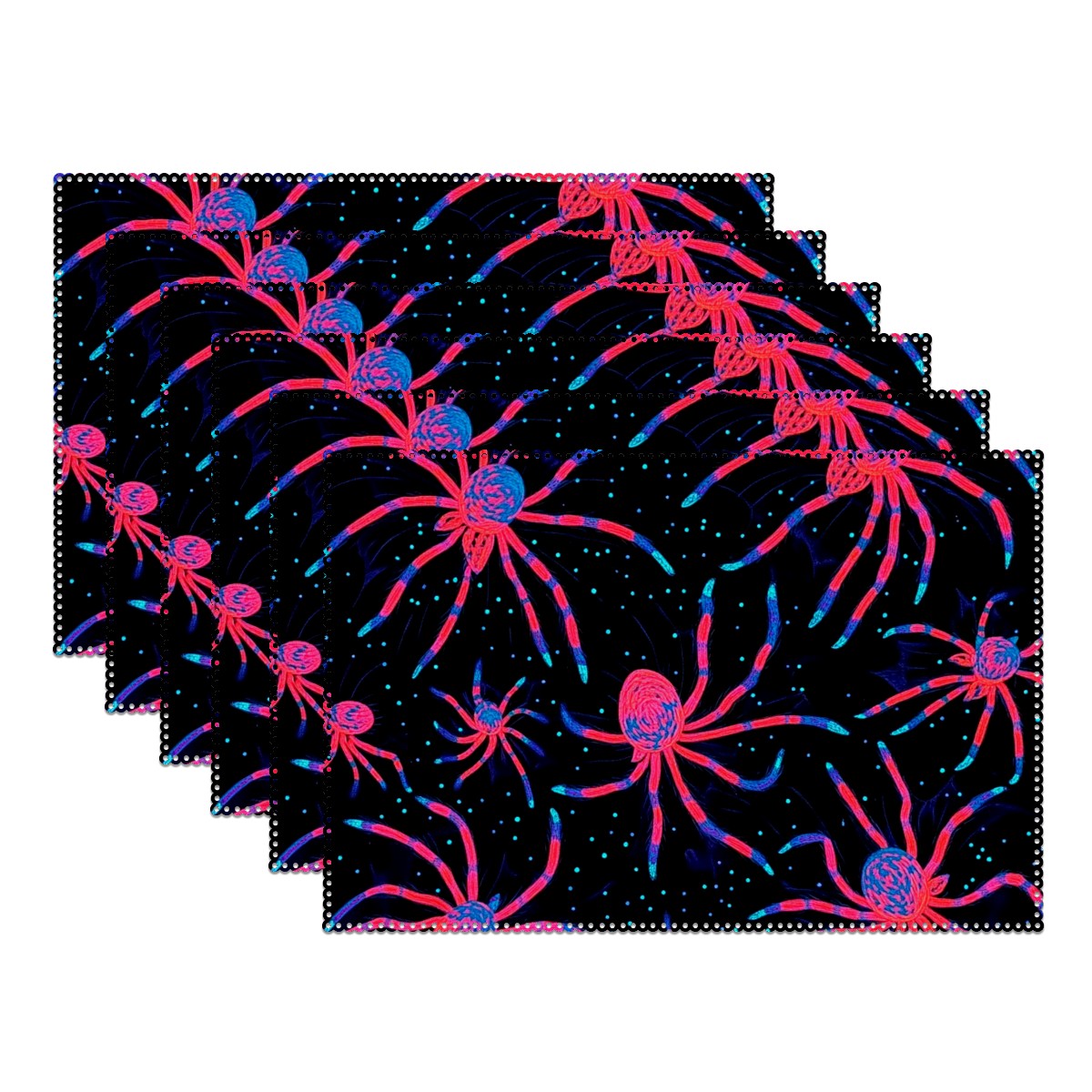 Home Brilliant Placemats Heat Resistant Dining Table Place Mats Plate Mat Cloth Placemat Seasonal Holiday Kitchen Tablecloth Indoor Outdoor Neon Red And Blue Spider