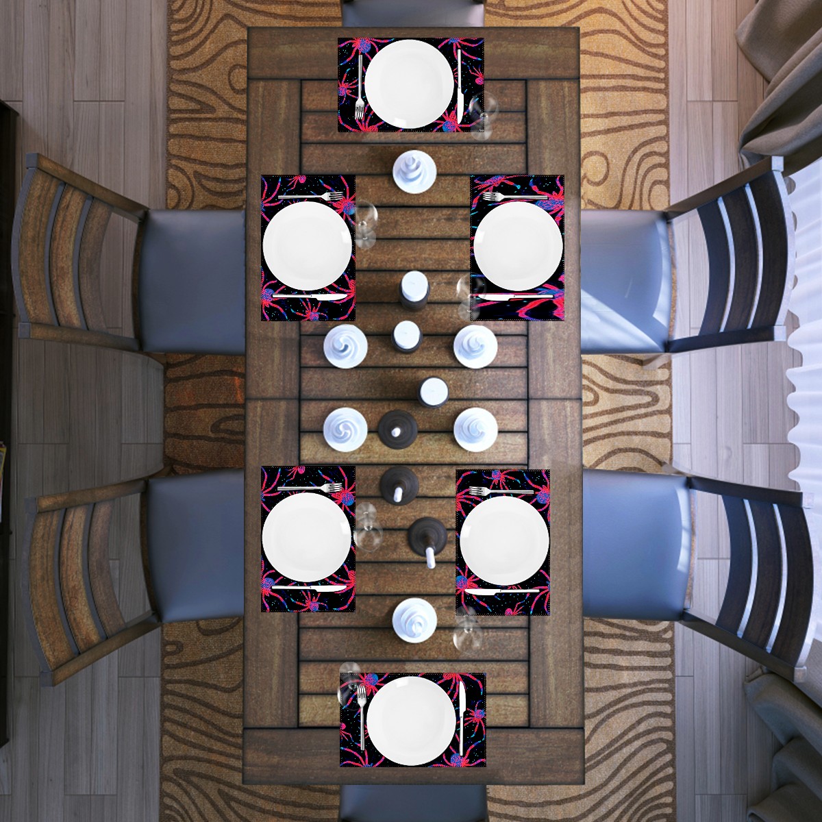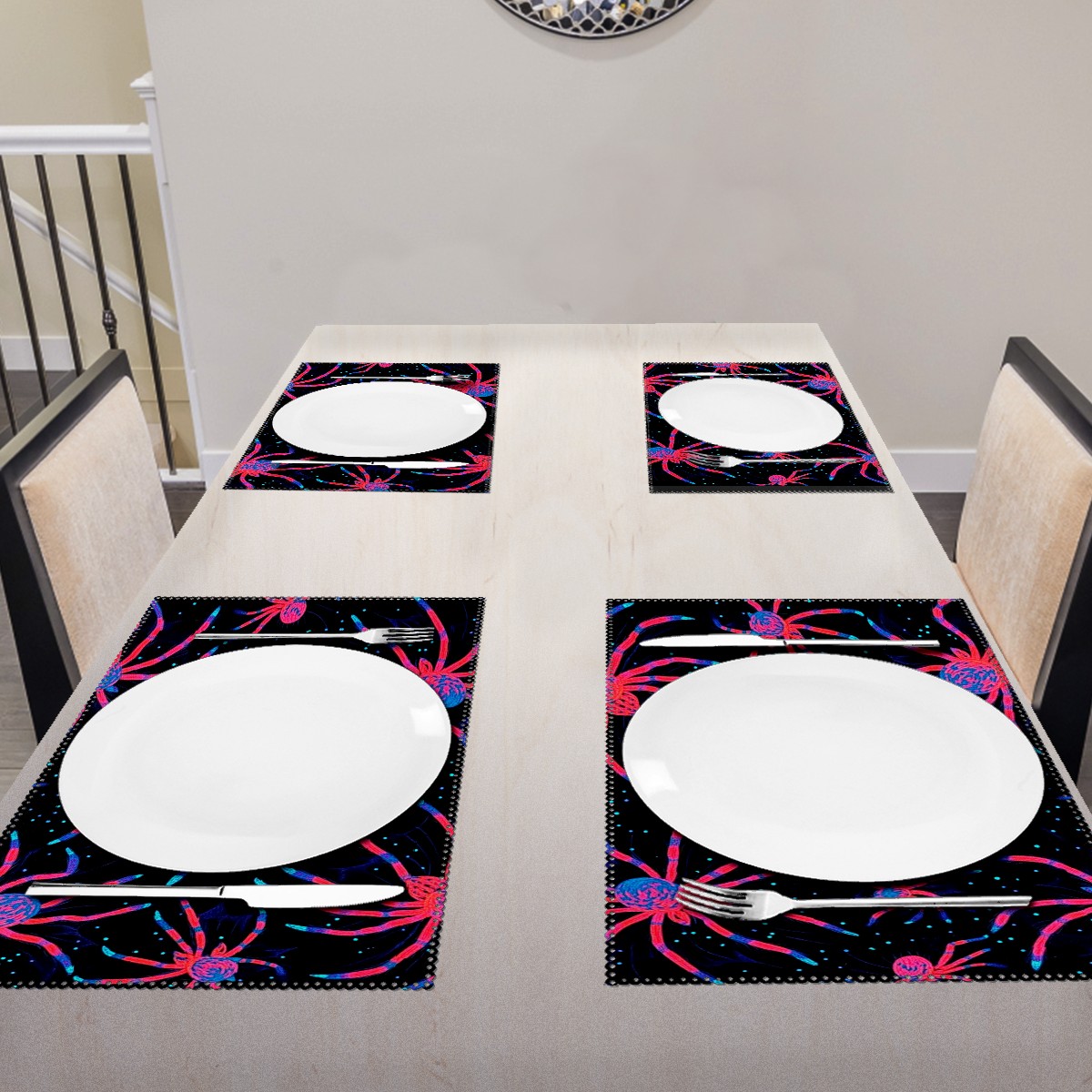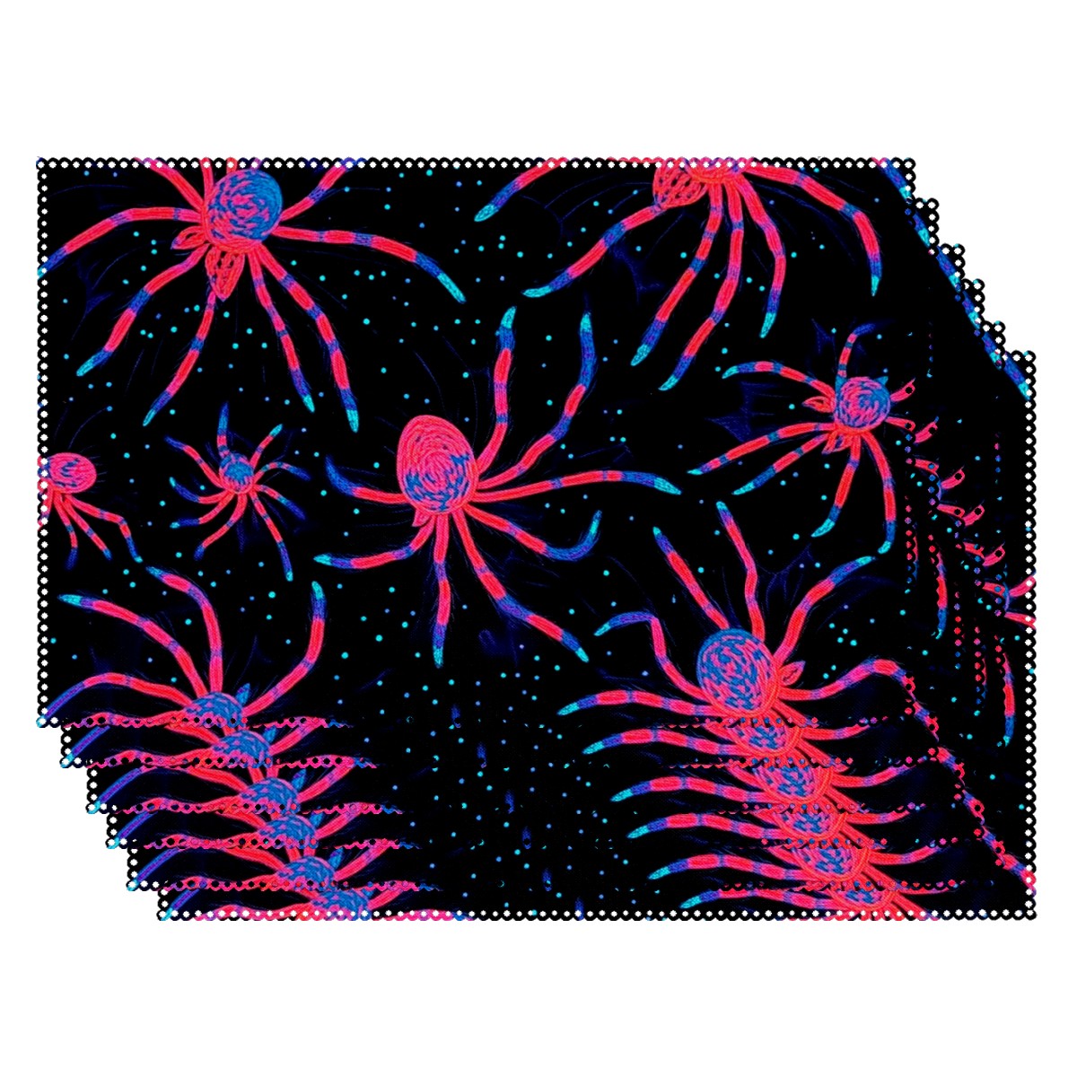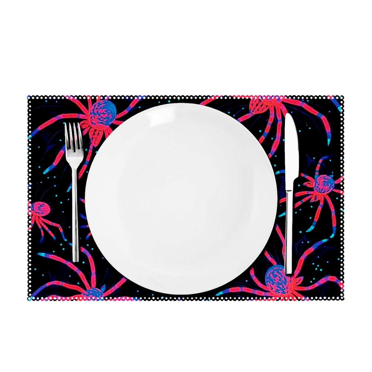 Home Brilliant Placemats Heat Resistant Dining Table Place Mats Plate Mat Cloth Placemat Seasonal Holiday Kitchen Tablecloth Indoor Outdoor Neon Red And Blue Spider