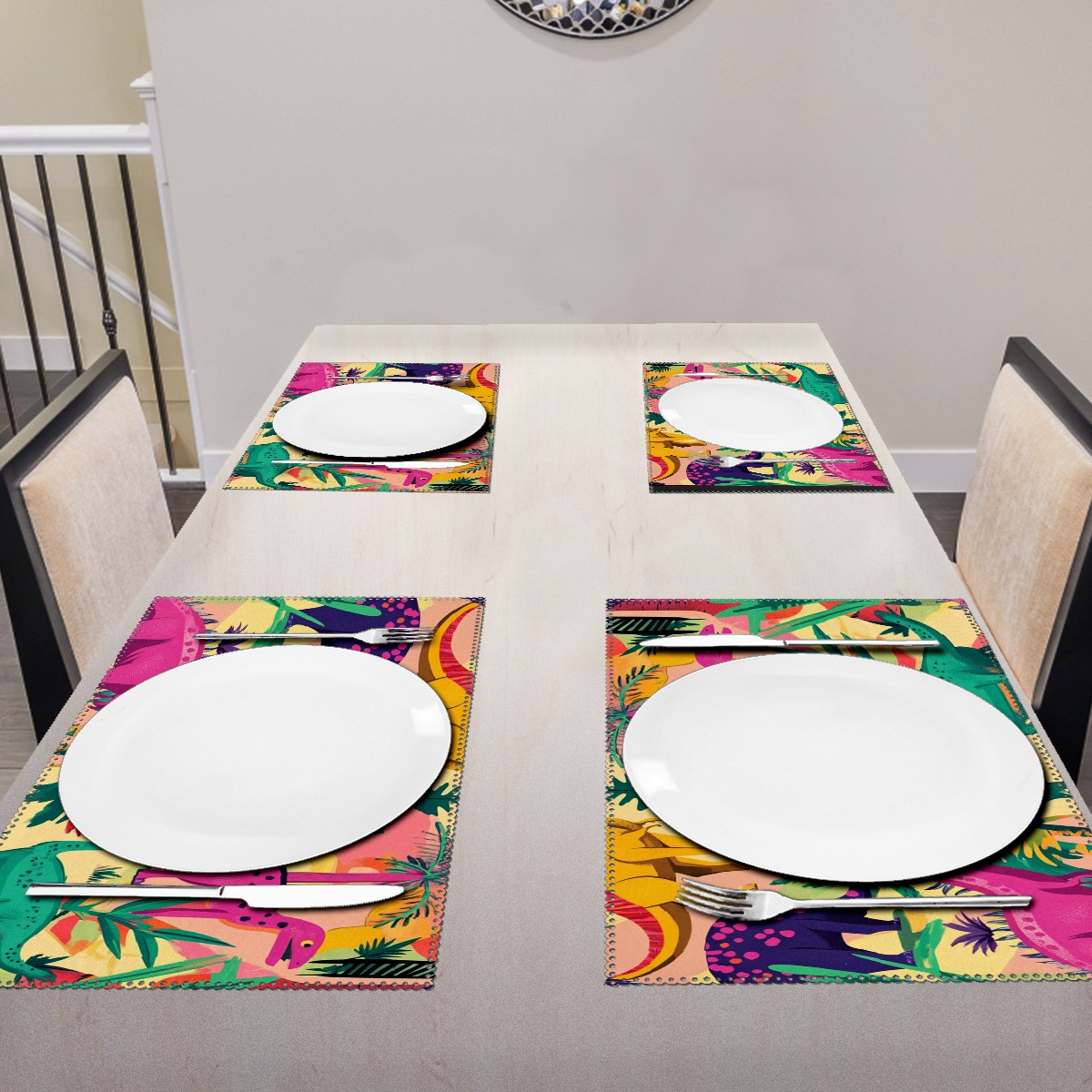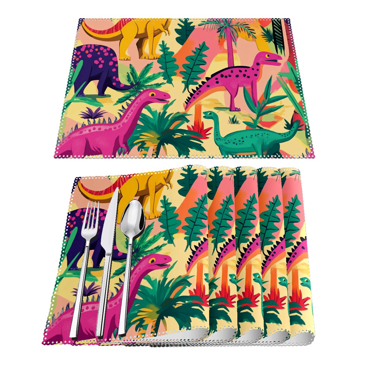 Home Brilliant Placemats Heat Resistant Dining Table Place Mats Plate Mat Cloth Placemat Seasonal Holiday Kitchen Tablecloth Indoor Outdoor Dinosaurs