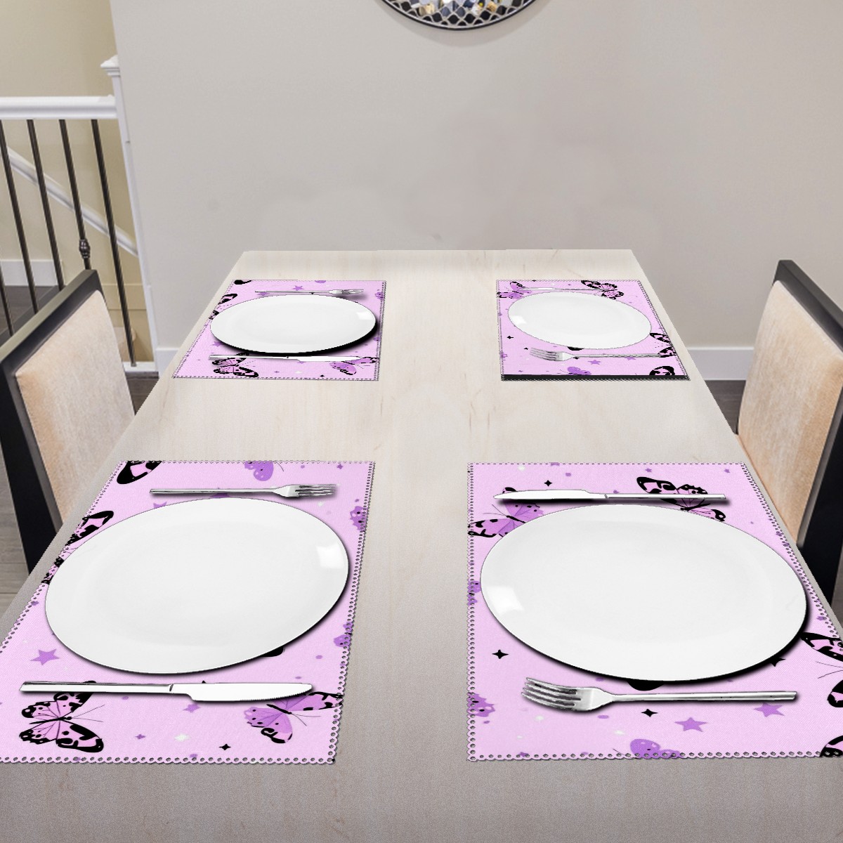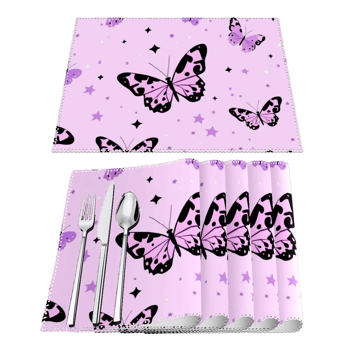 Home Brilliant Placemats Heat Resistant Dining Table Place Mats Plate Mat Cloth Placemat Seasonal Holiday Kitchen Tablecloth Indoor Outdoor Pink Leopard-print Butterflies