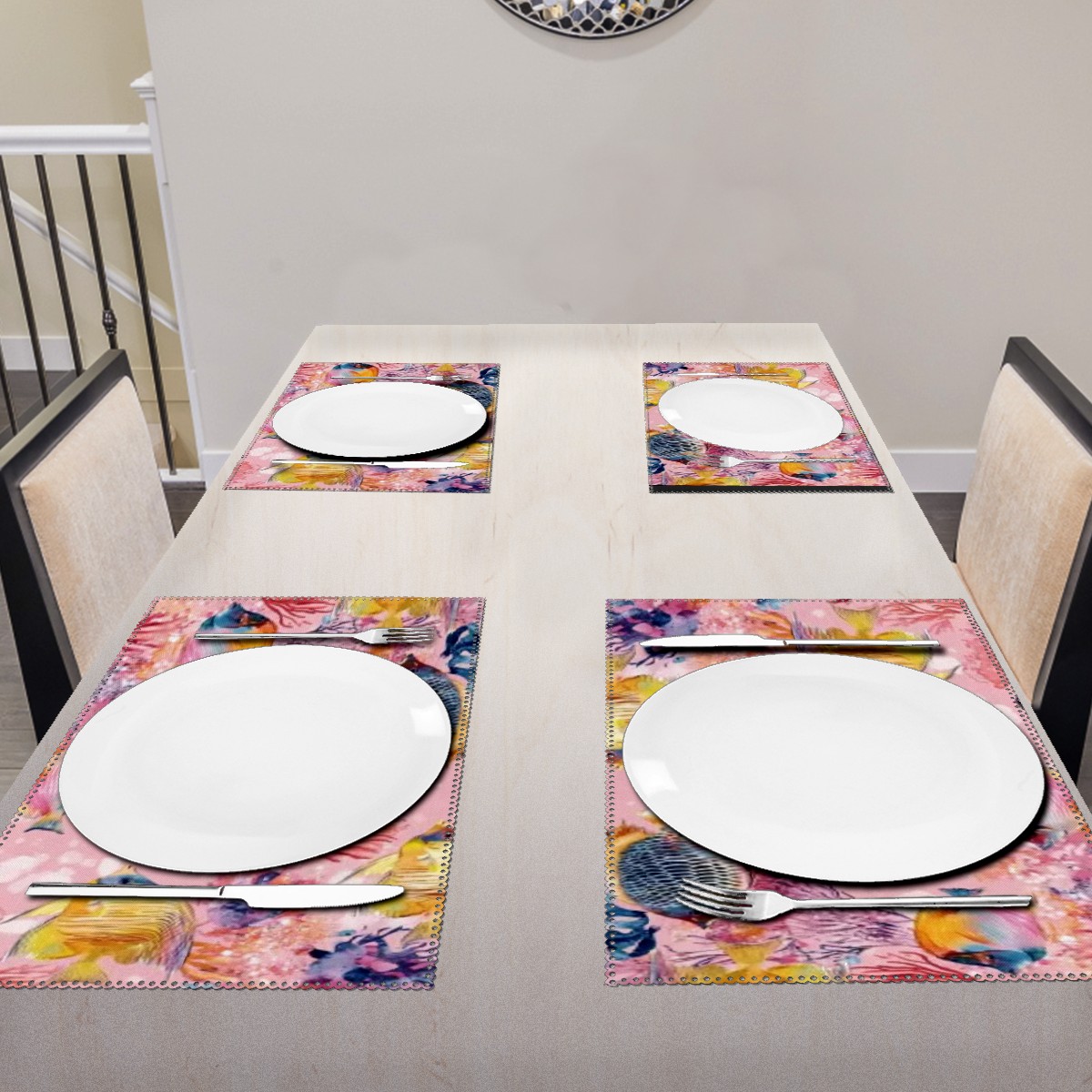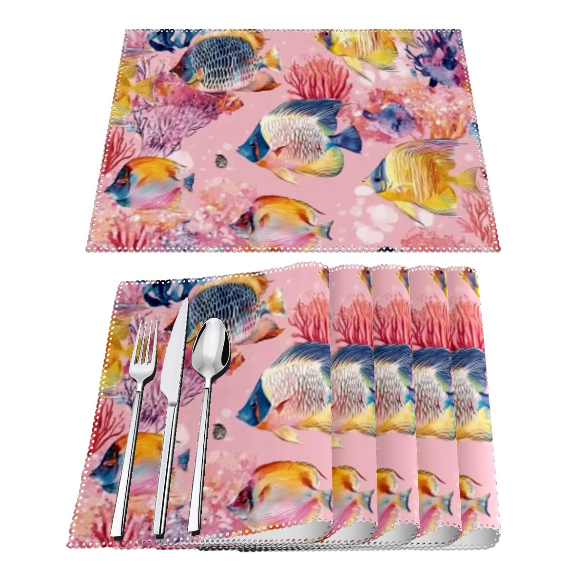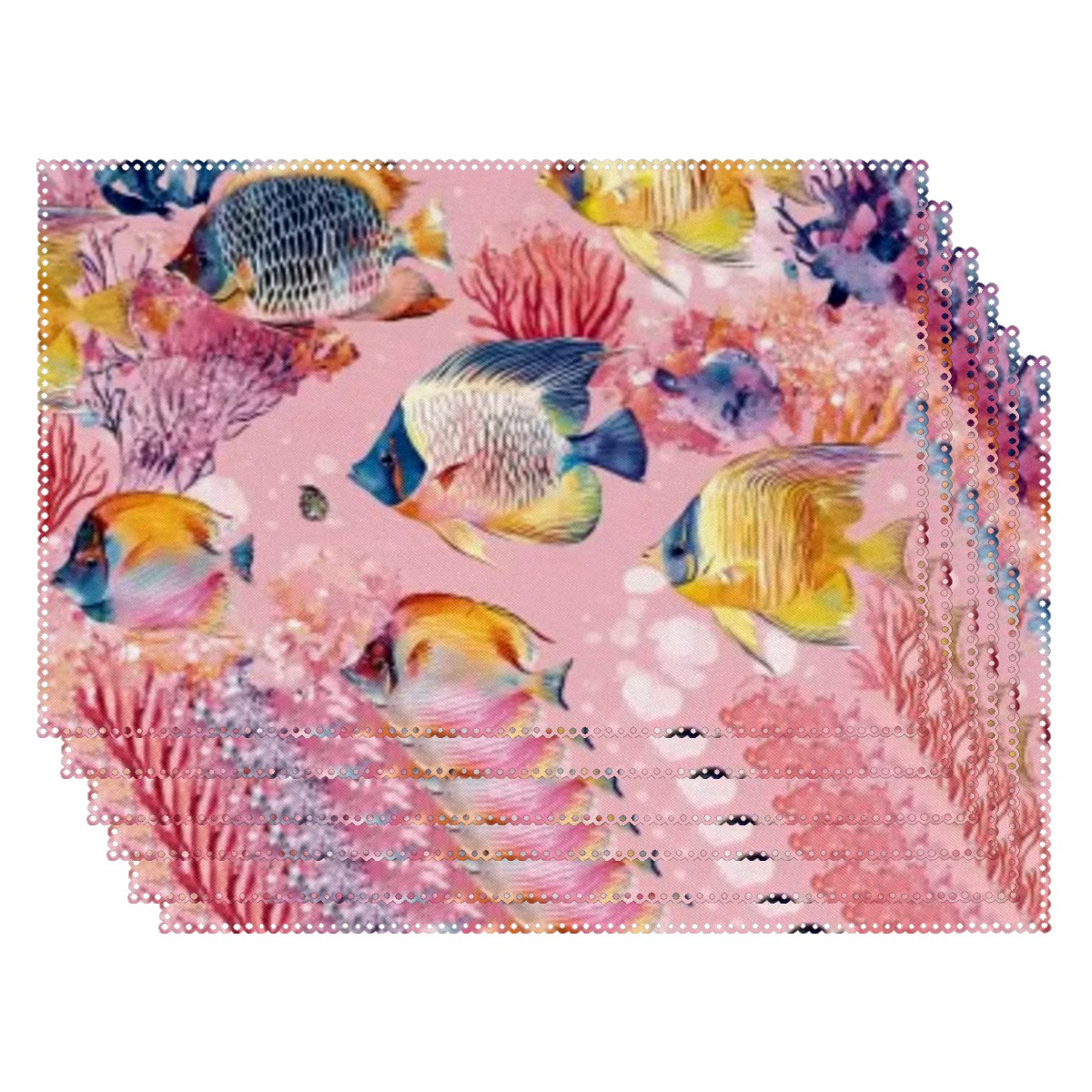 Home Brilliant Placemats Heat Resistant Dining Table Place Mats Plate Mat Cloth Placemat Seasonal Holiday Kitchen Tablecloth Indoor Outdoor Tropical Fish