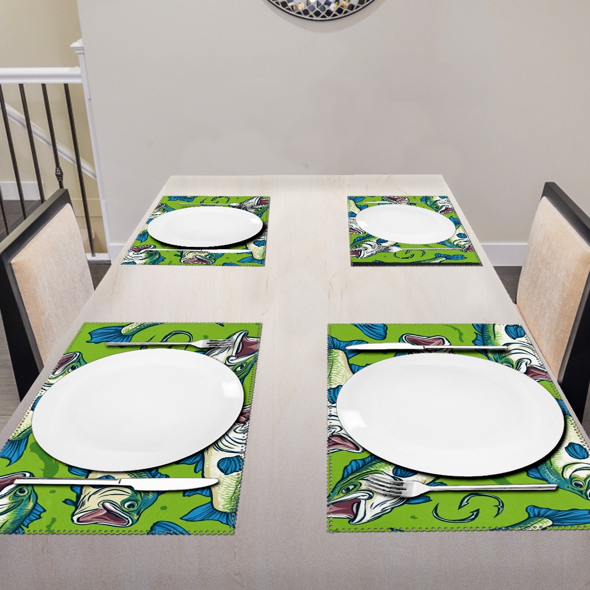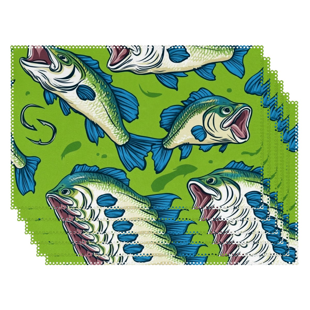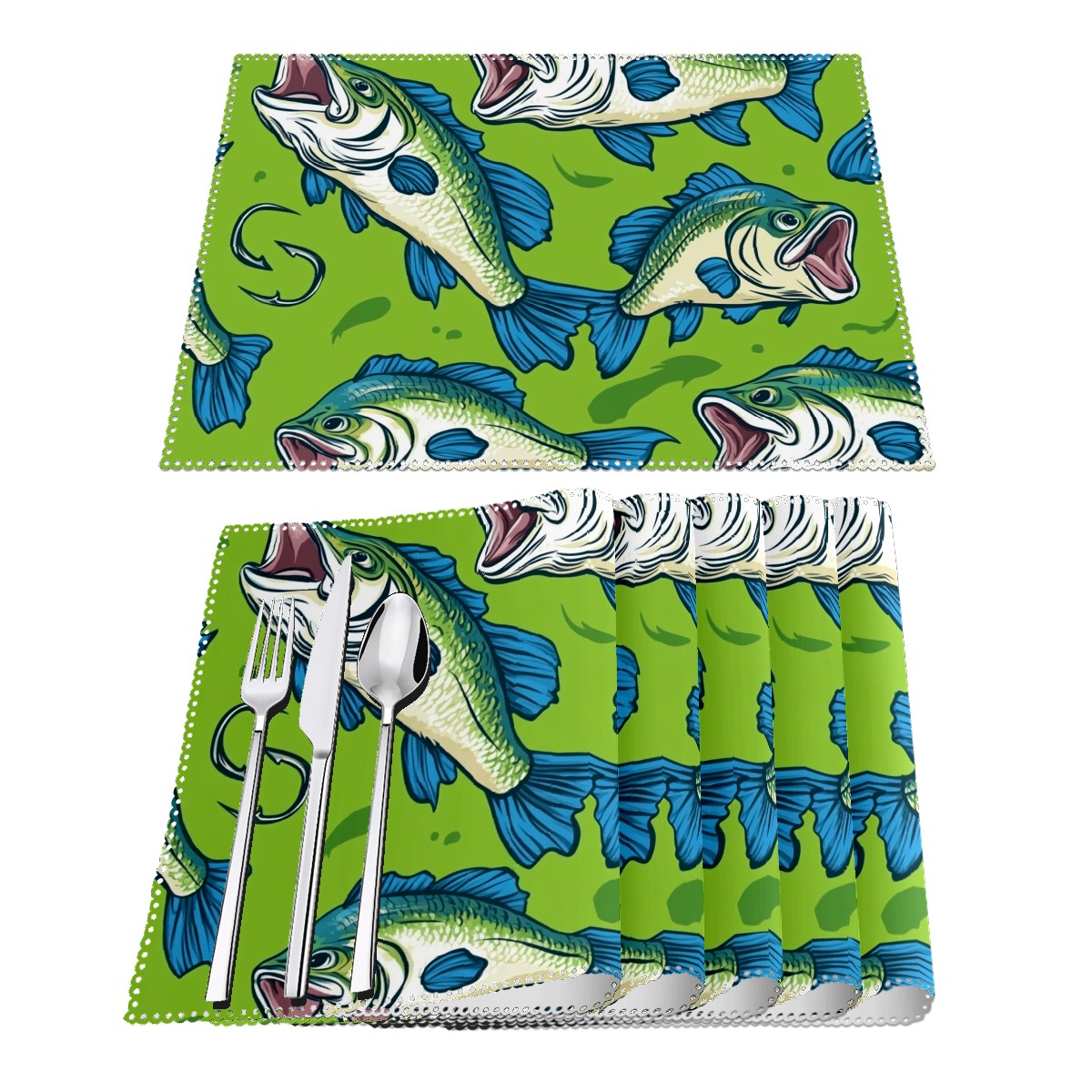 Home Brilliant Placemats Heat Resistant Dining Table Place Mats Plate Mat Cloth Placemat Seasonal Holiday Kitchen Tablecloth Indoor Outdoor Fish