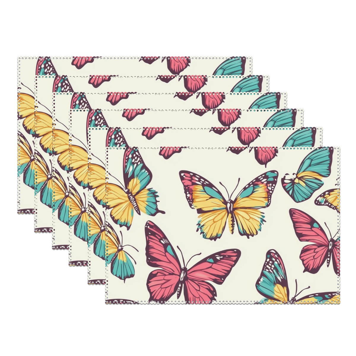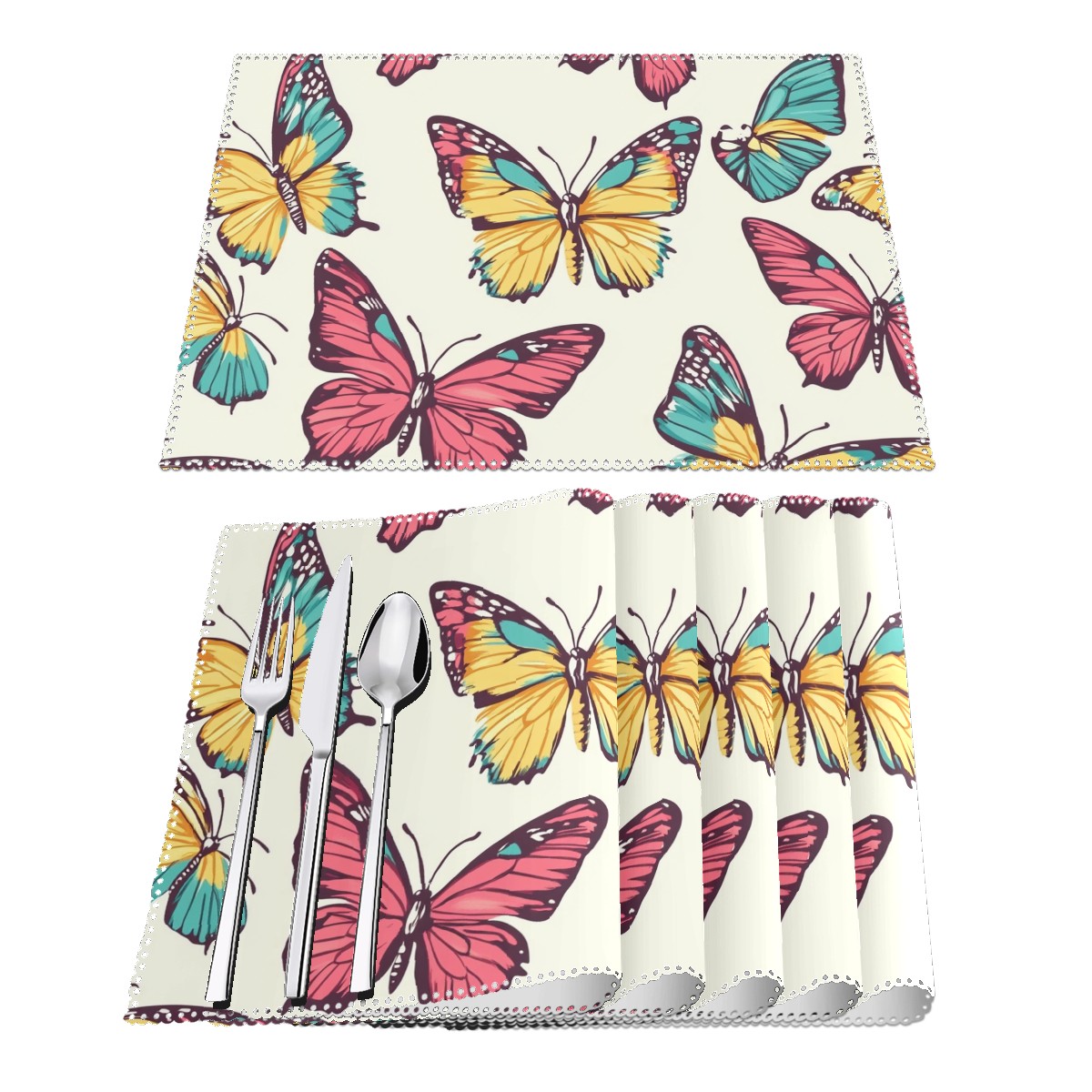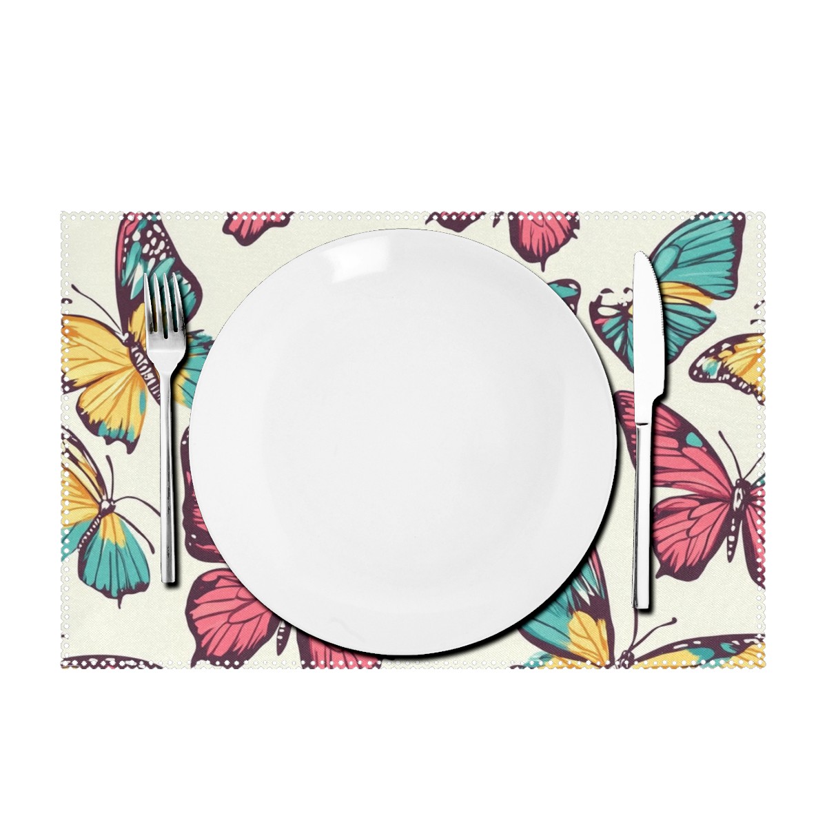 Home Brilliant Placemats Heat Resistant Dining Table Place Mats Plate Mat Cloth Placemat Seasonal Holiday Kitchen Tablecloth Indoor Outdoor Colorful Butterflies