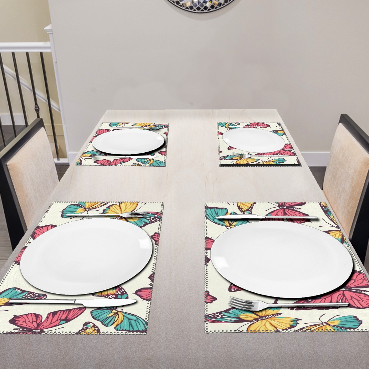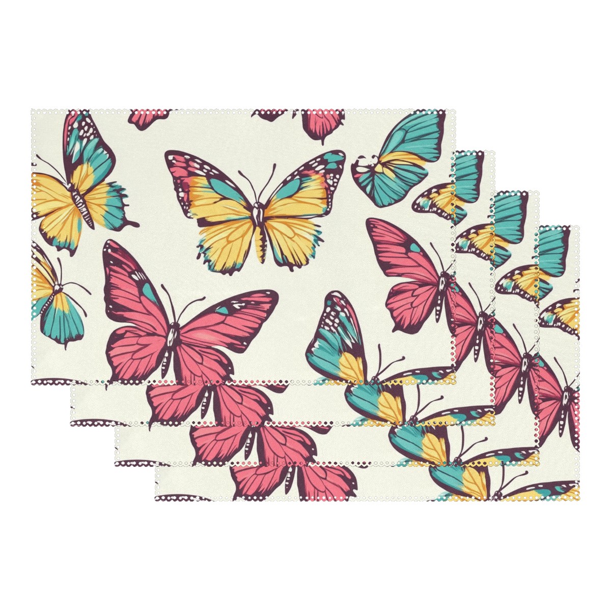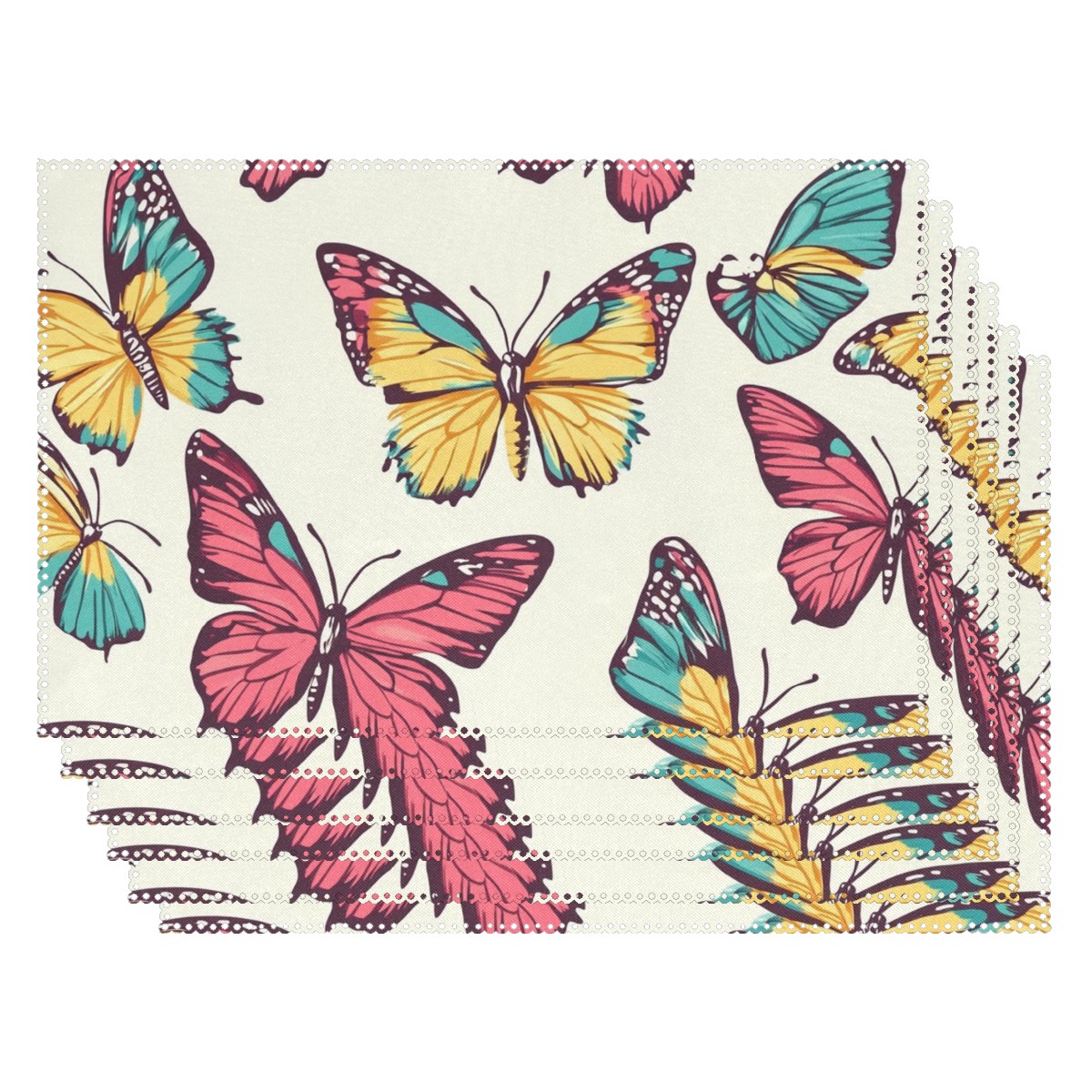 Home Brilliant Placemats Heat Resistant Dining Table Place Mats Plate Mat Cloth Placemat Seasonal Holiday Kitchen Tablecloth Indoor Outdoor Colorful Butterflies