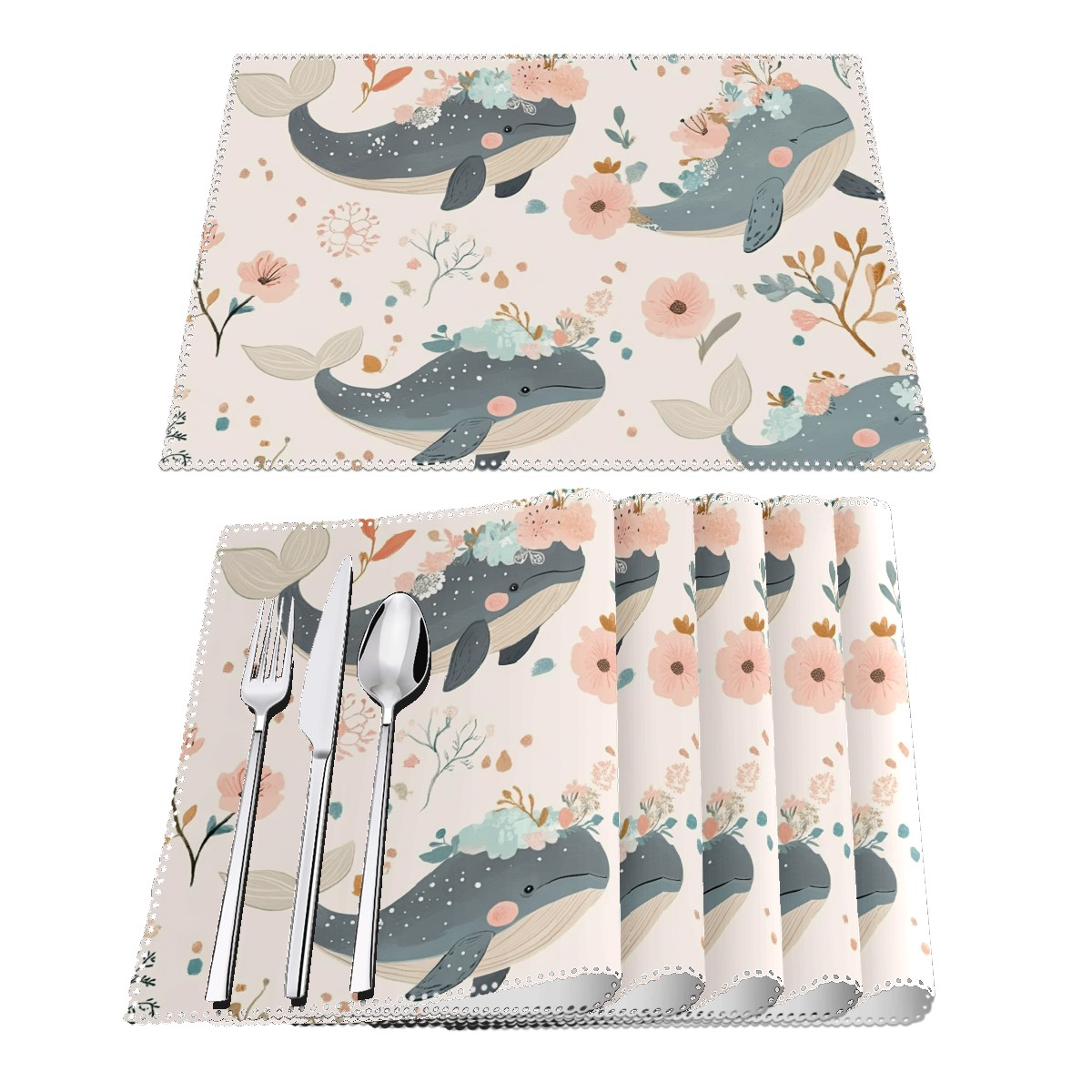 Home Brilliant Placemats Heat Resistant Dining Table Place Mats Plate Mat Cloth Placemat Seasonal Holiday Kitchen Tablecloth Indoor Outdoor Adorable Baby Whales