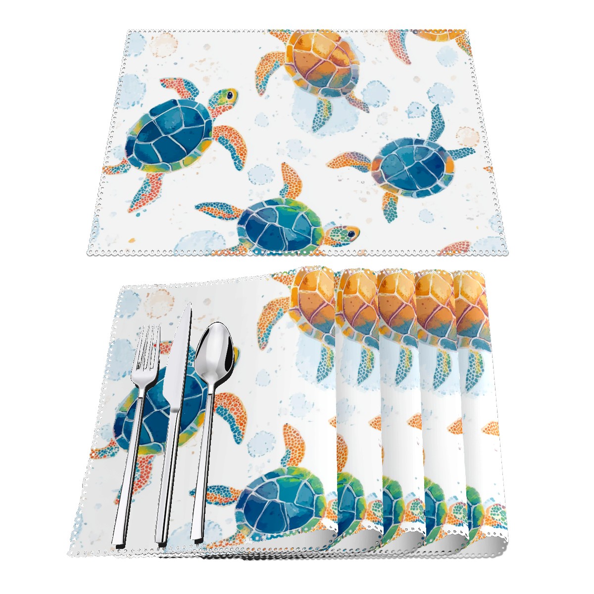 Home Brilliant Placemats Heat Resistant Dining Table Place Mats Plate Mat Cloth Placemat Seasonal Holiday Kitchen Tablecloth Indoor Outdoor Colorful Sea Turtles