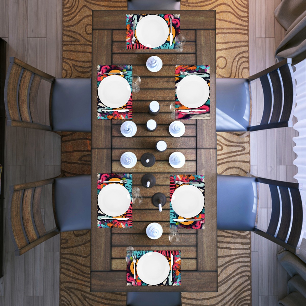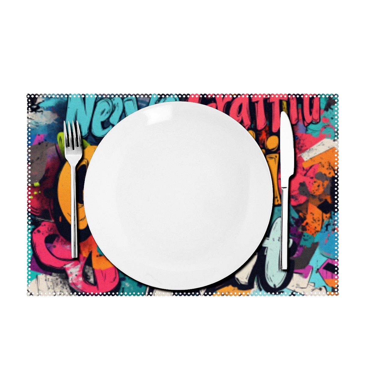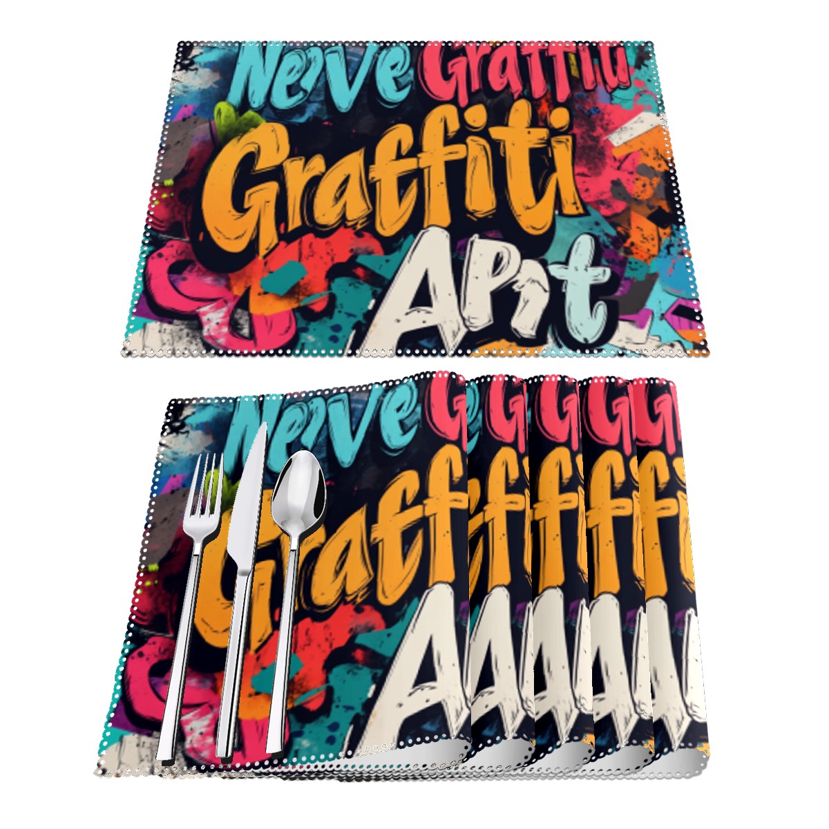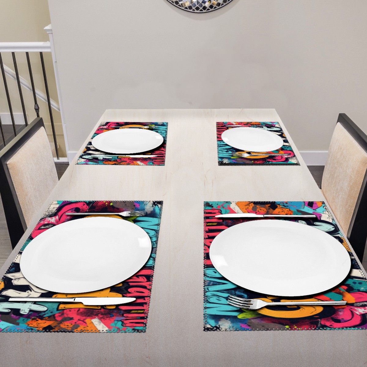 Home Brilliant Placemats Heat Resistant Dining Table Place Mats Plate Mat Cloth Placemat Seasonal Holiday Kitchen Tablecloth Indoor Outdoor Graffiti