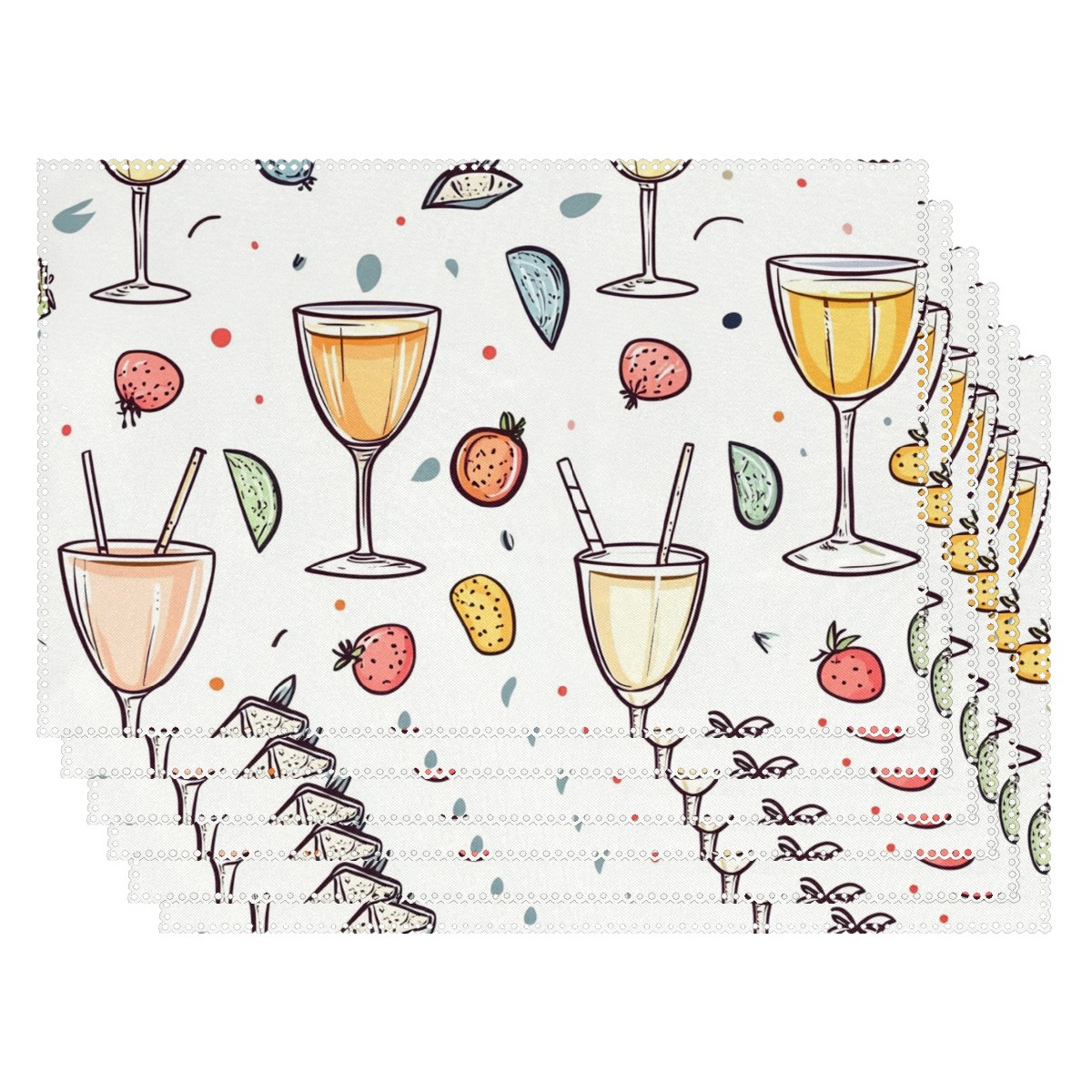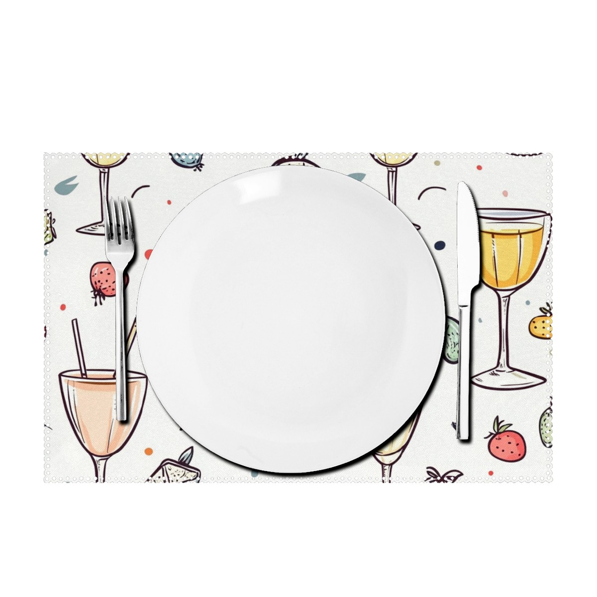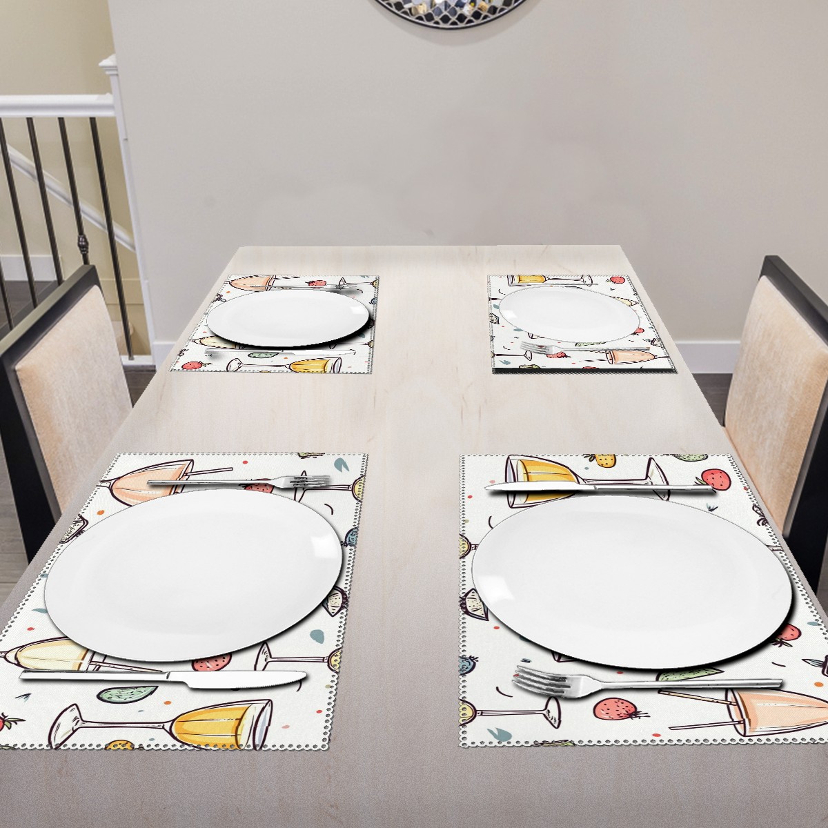 Home Brilliant Placemats Heat Resistant Dining Table Place Mats Plate Mat Cloth Placemat Seasonal Holiday Kitchen Tablecloth Indoor Outdoor Champagne Glasses Pattern