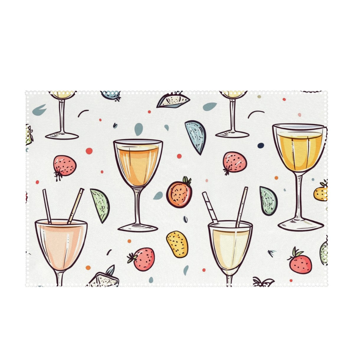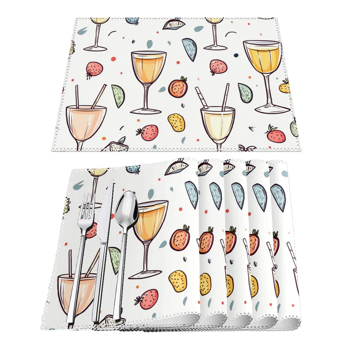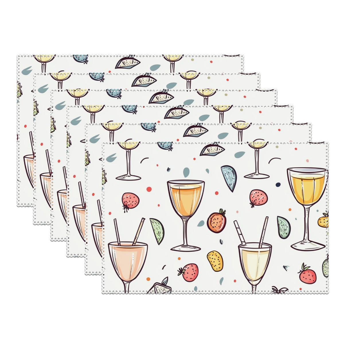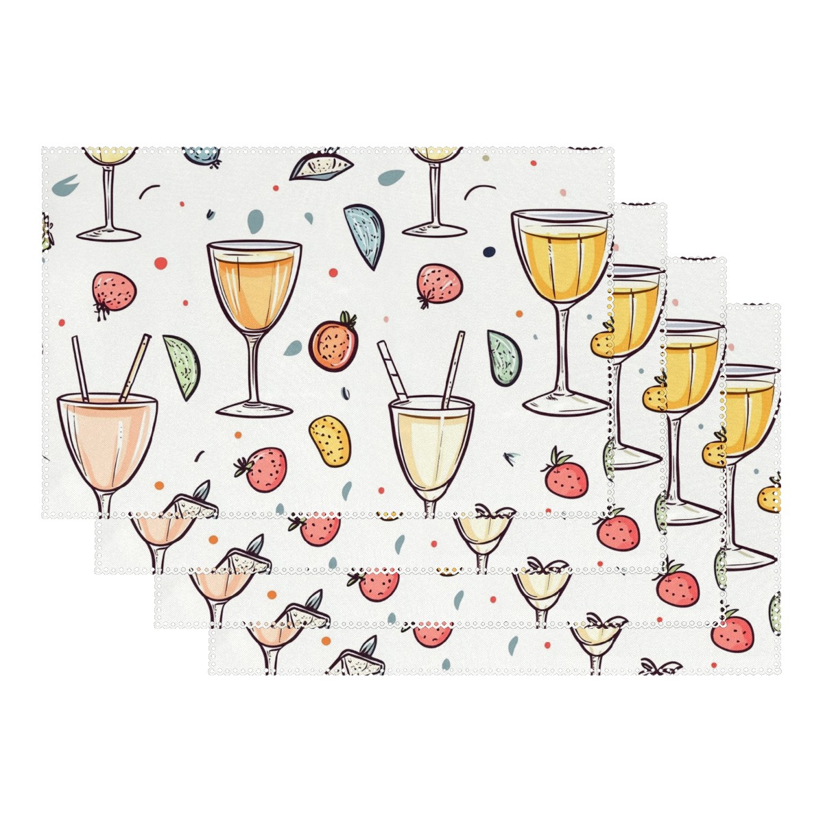 Home Brilliant Placemats Heat Resistant Dining Table Place Mats Plate Mat Cloth Placemat Seasonal Holiday Kitchen Tablecloth Indoor Outdoor Champagne Glasses Pattern