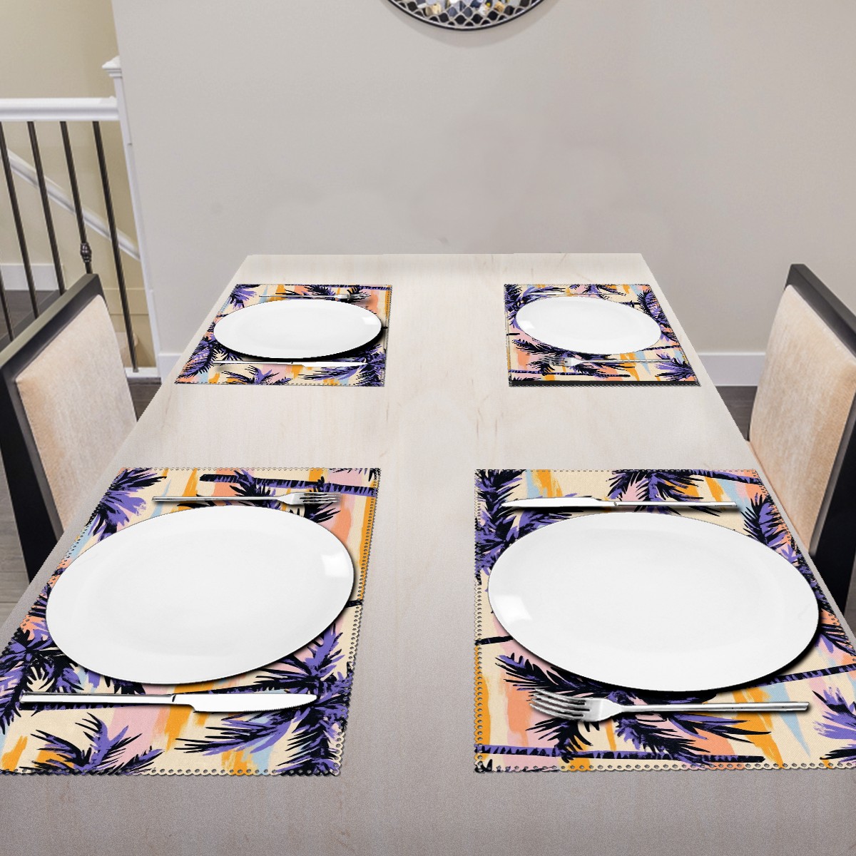 Home Brilliant Placemats Heat Resistant Dining Table Place Mats Plate Mat Cloth Placemat Seasonal Holiday Kitchen Tablecloth Indoor Outdoor Retro Pattern