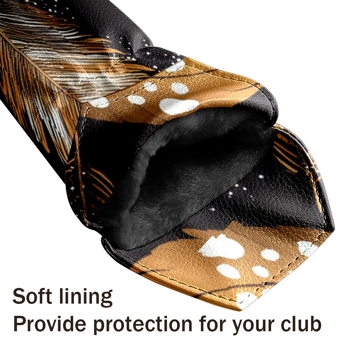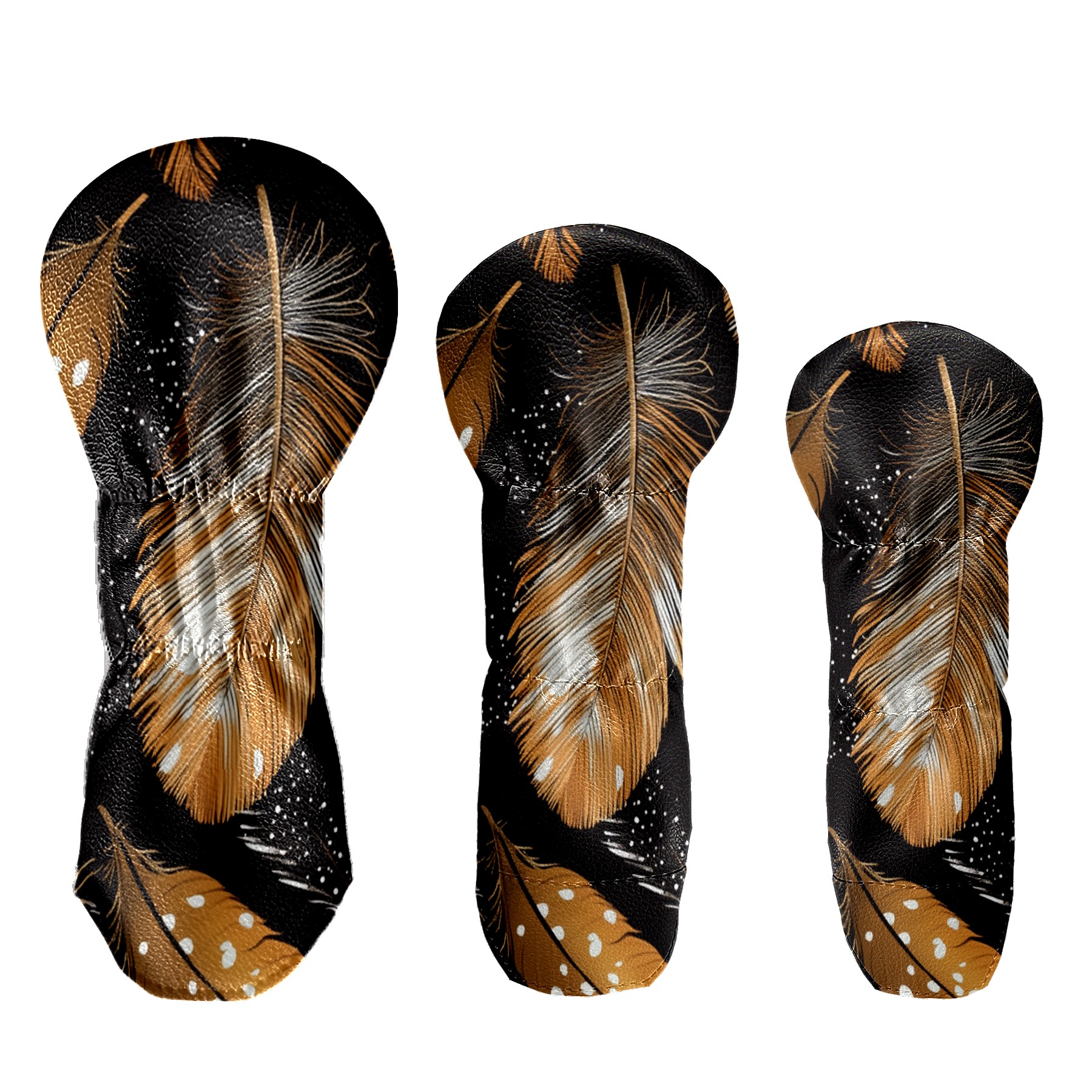 Golf Club Head Cover Golf Club Covers For driver club cover waterproof Head covers Brown Feather2