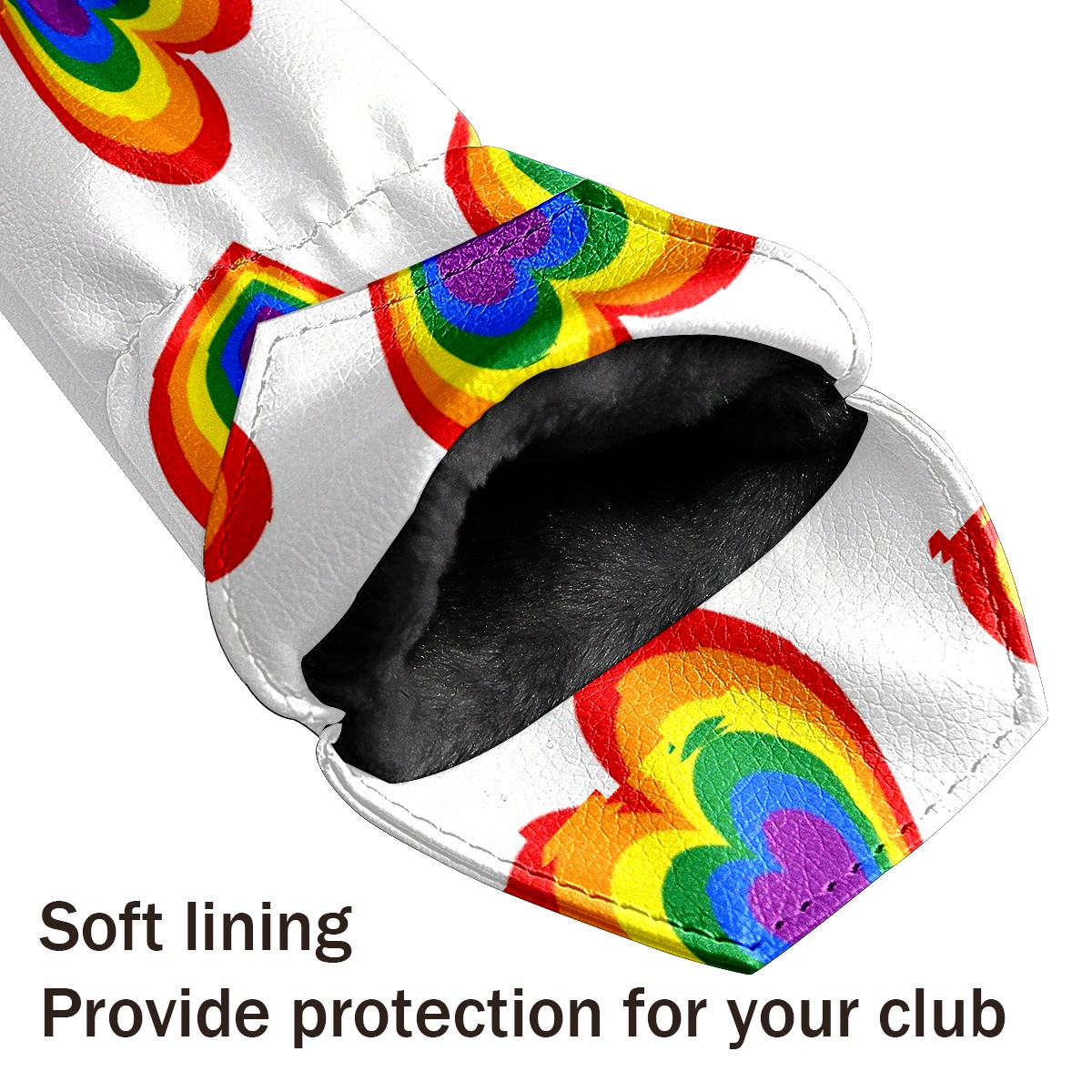 Golf Club Head Cover Golf Club Covers For driver club cover waterproof Head covers Driver Head cover Fairway Valentine's Day Rainbow Heart