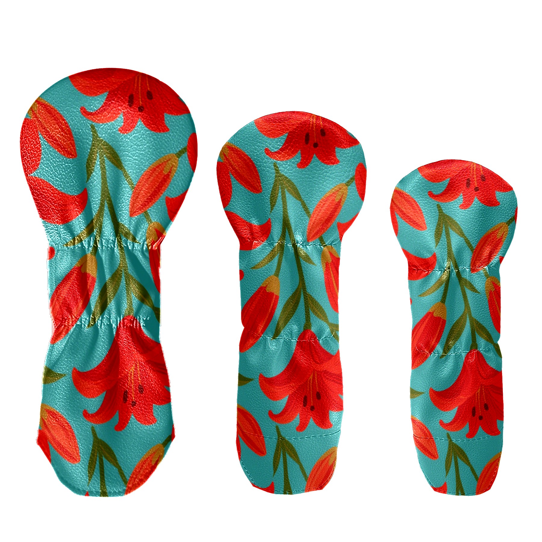 Golf Club Head Cover Golf Club Covers For driver club cover waterproof Head covers Driver Head cover Fairway Red Lily