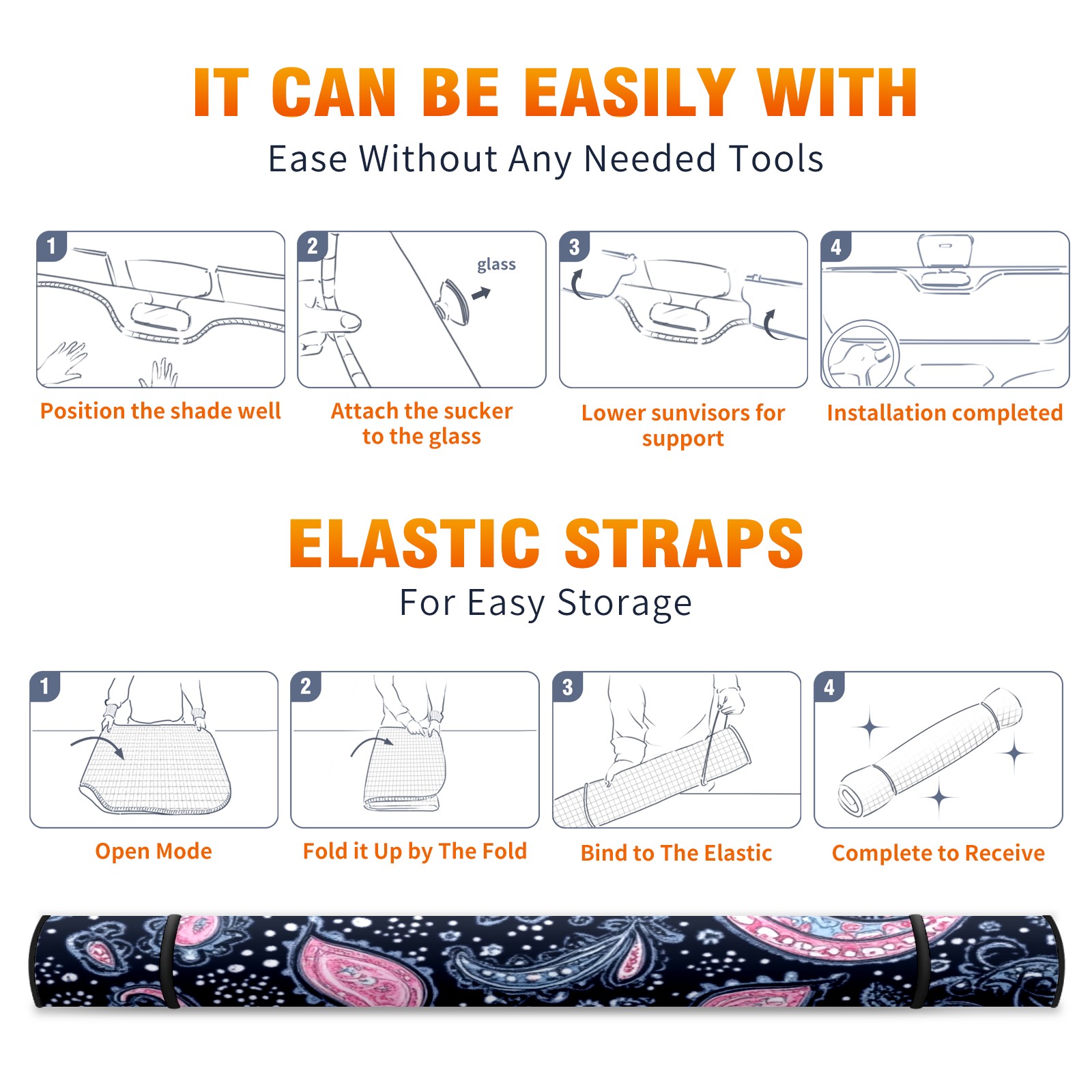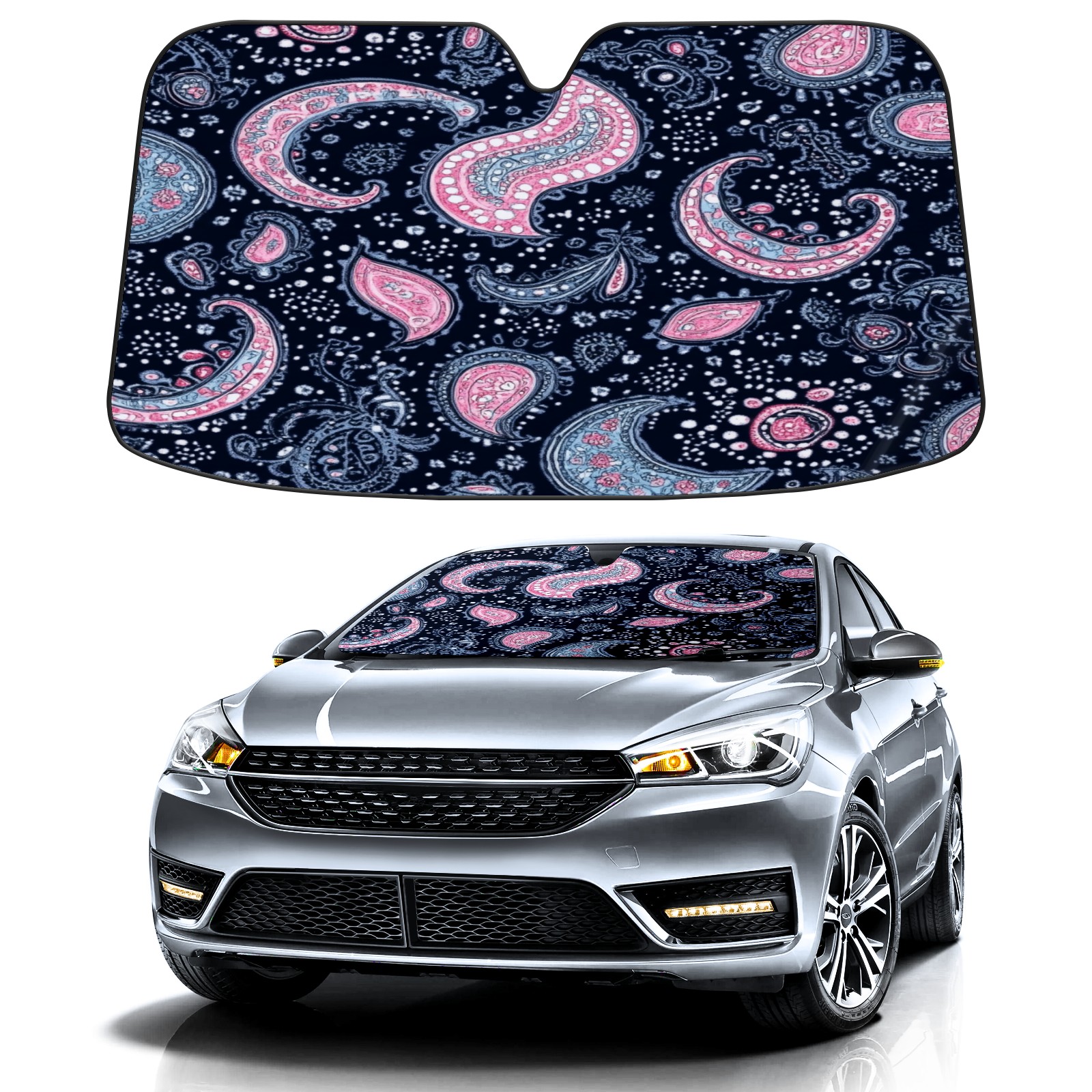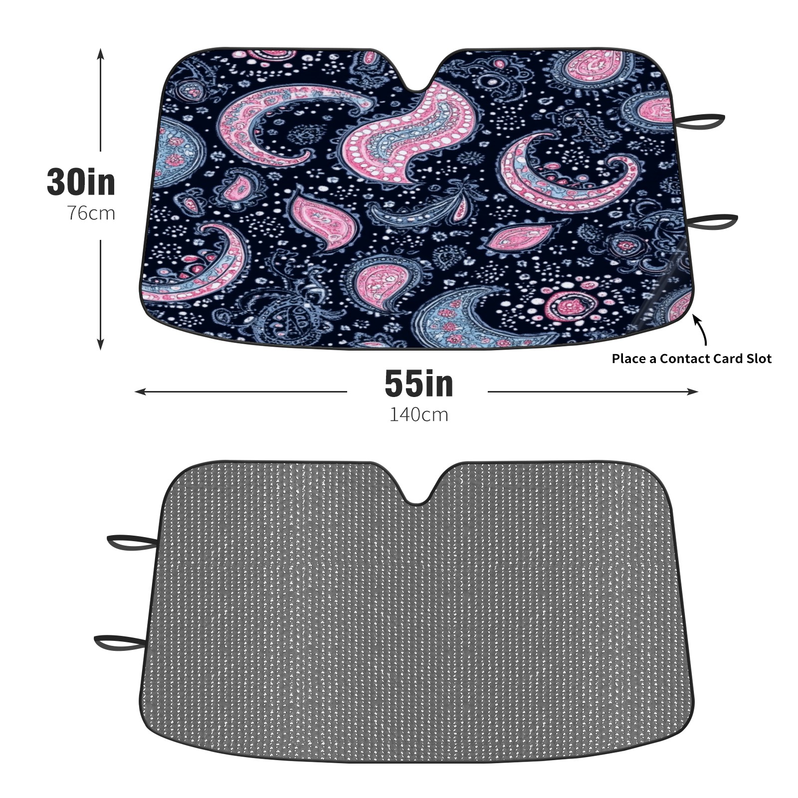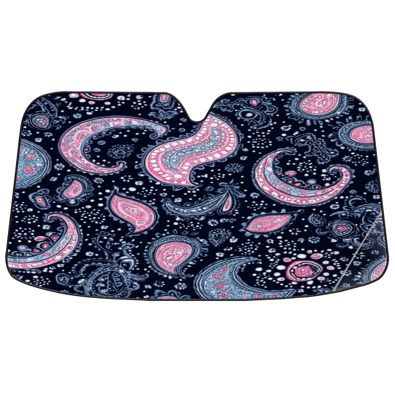 Dark Blue And Pink Paisley Windshield Sun Shade for Car Thicken 5-Layer UV Reflector Auto Front Window Sunshade Visor Shield Cover and Keep Your Vehicle Cool(55" ¡Á 30")