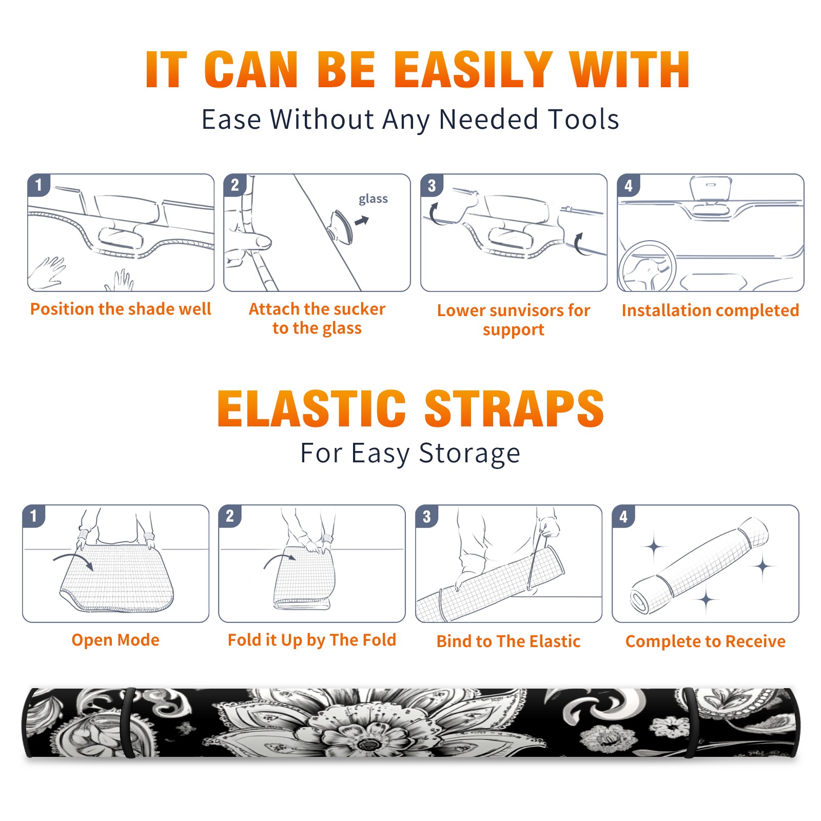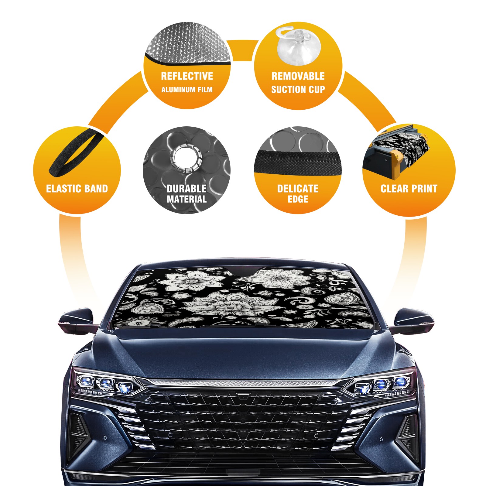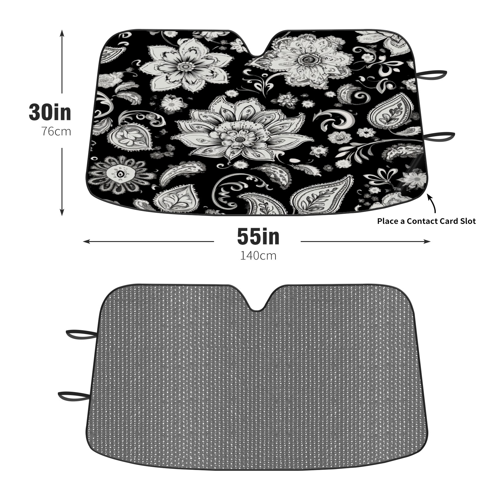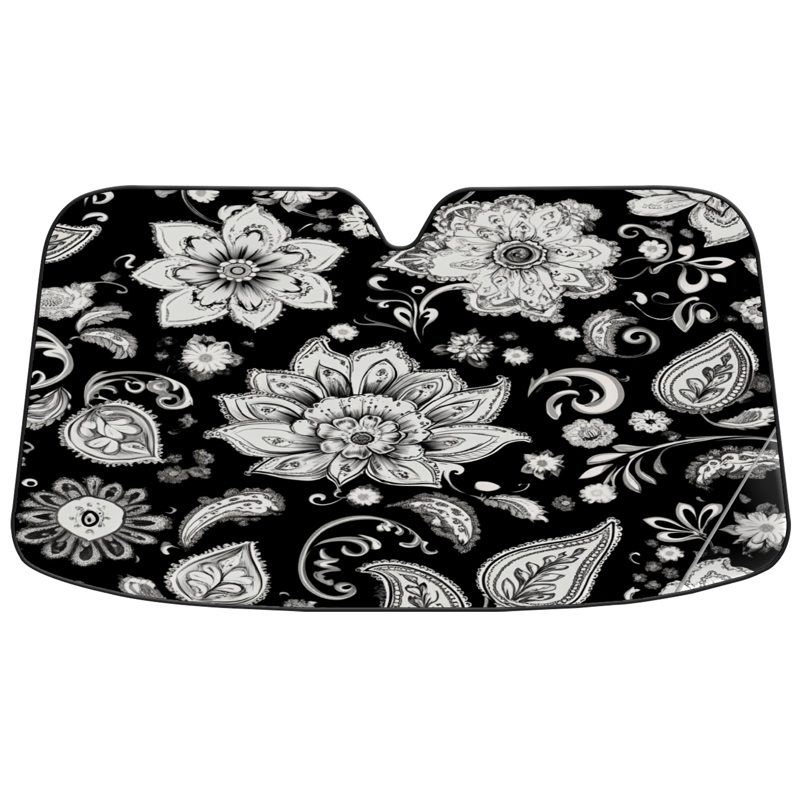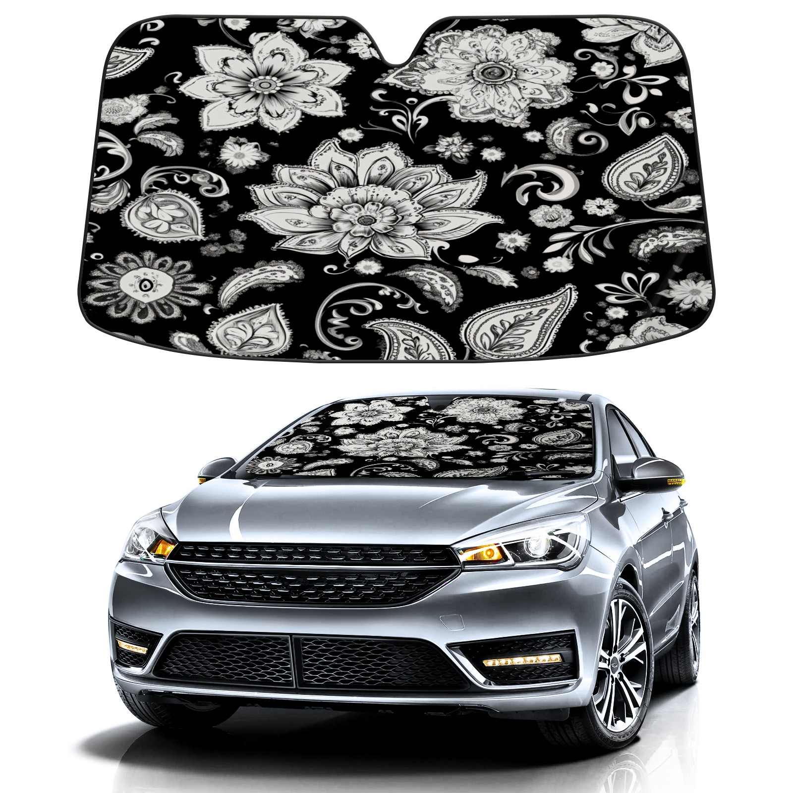 Black And White Paisley Design Windshield Sun Shade for Car Thicken 5-Layer UV Reflector Auto Front Window Sunshade Visor Shield Cover and Keep Your Vehicle Cool(55" ¡Á 30")