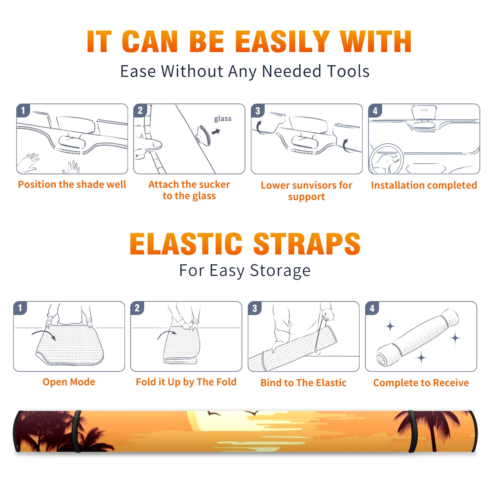 <p>[Material description] Aluminum foil + polyester</p> <p>Size: 140x76cm (55inx30in)</p> <p>[Product performance] Can effectively block the sun for your car, effectively protect your car interior, durable.</p> <p>Easy to carry: easy to fold, light and portable, reasonable size for carrying and storage, storage in the car will not take up too much space.</p> <p>Uv protection: uv protection, effectively protect your car interior, can keep your car interior cool, very suitable for internal protection, while preventing harmful UV damage to your upholstery. Protect car dashboard, steering wheel and chair from sun aging. Keep the car cool: Using high-quality aluminum foil bubbles can reduce heat, has good insulation, effectively reduce the temperature of the car, save fuel consumption, air conditioning helps to keep the car cool in hot and sunny weather.</p> <p>Suitable for car portable, outdoor travel, work out, to meet your various choices.</p>