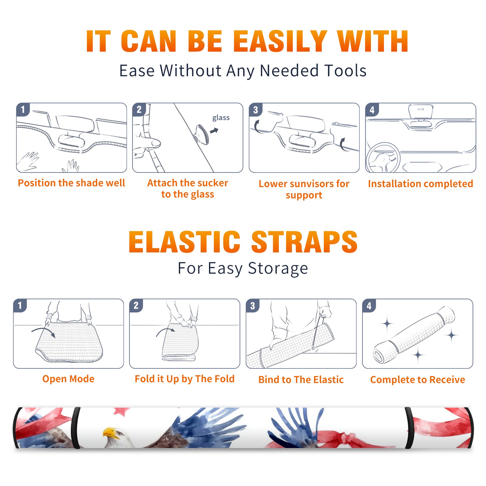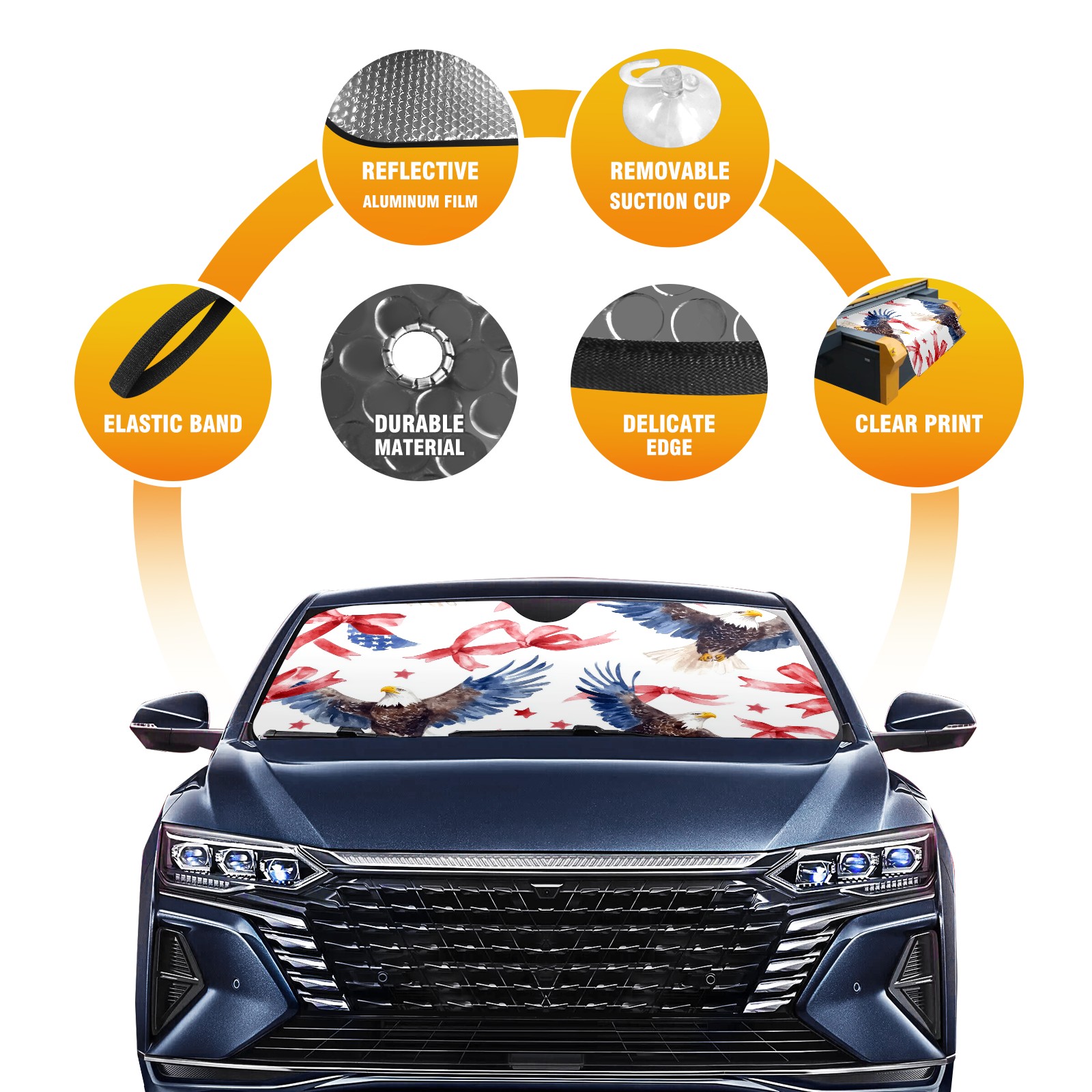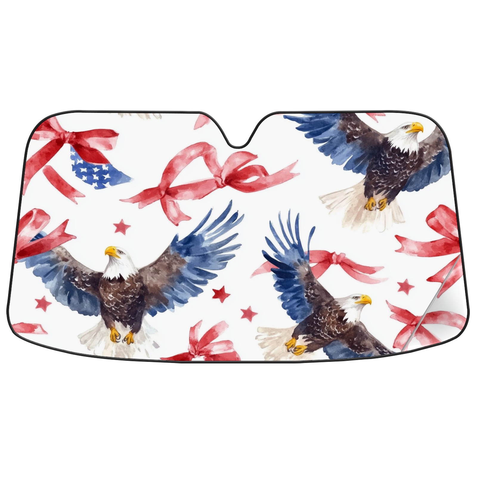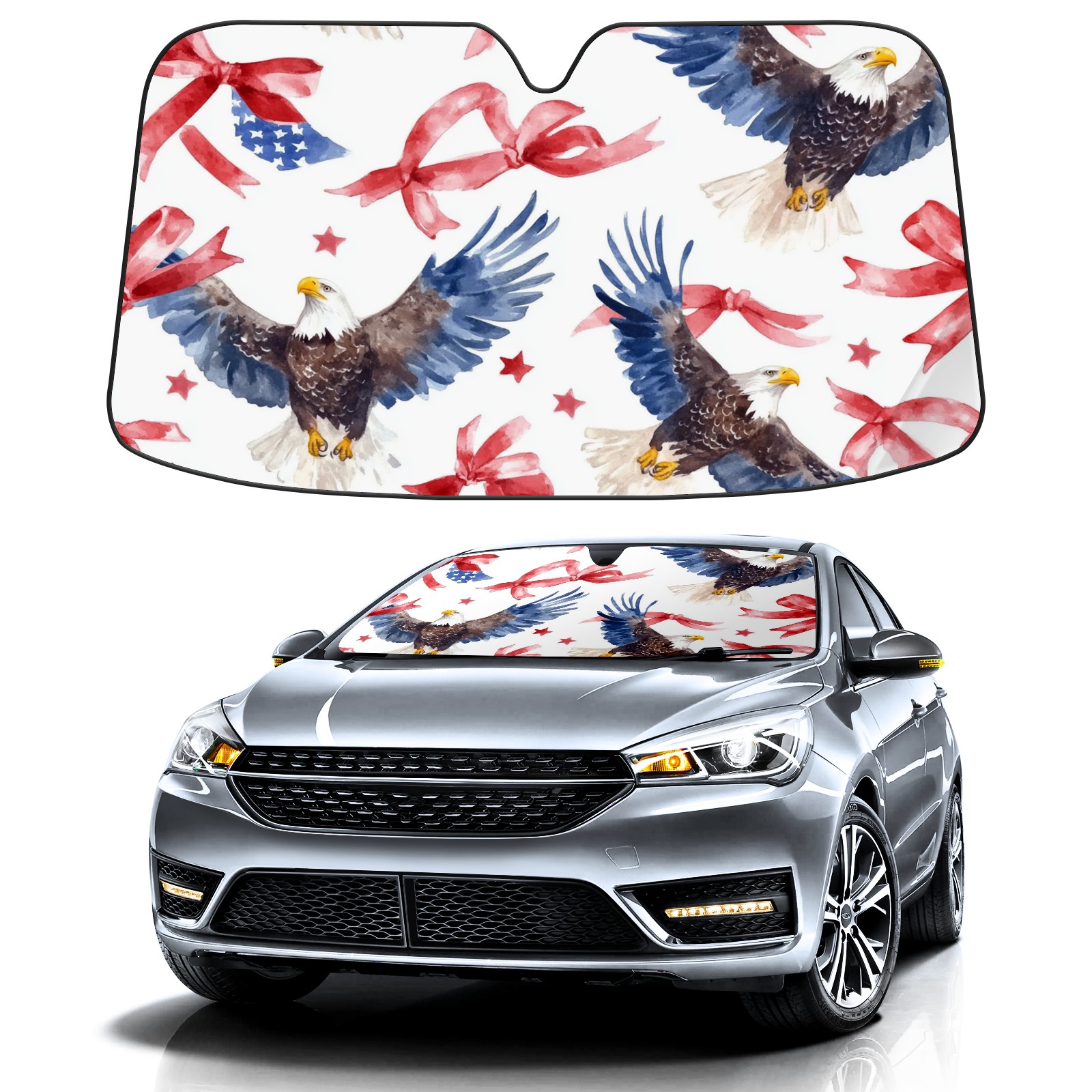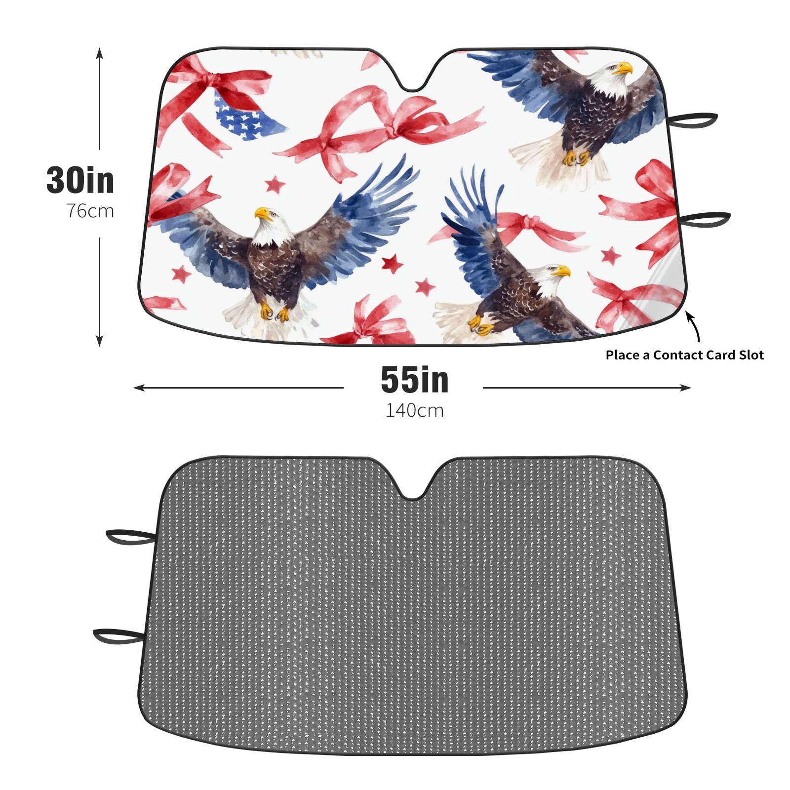 American Flag Bows And Eagles Windshield Sun Shade for Car Thicken 5-Layer UV Reflector Auto Front Window Sunshade Visor Shield Cover and Keep Your Vehicle Cool(55" ¡Á 30")