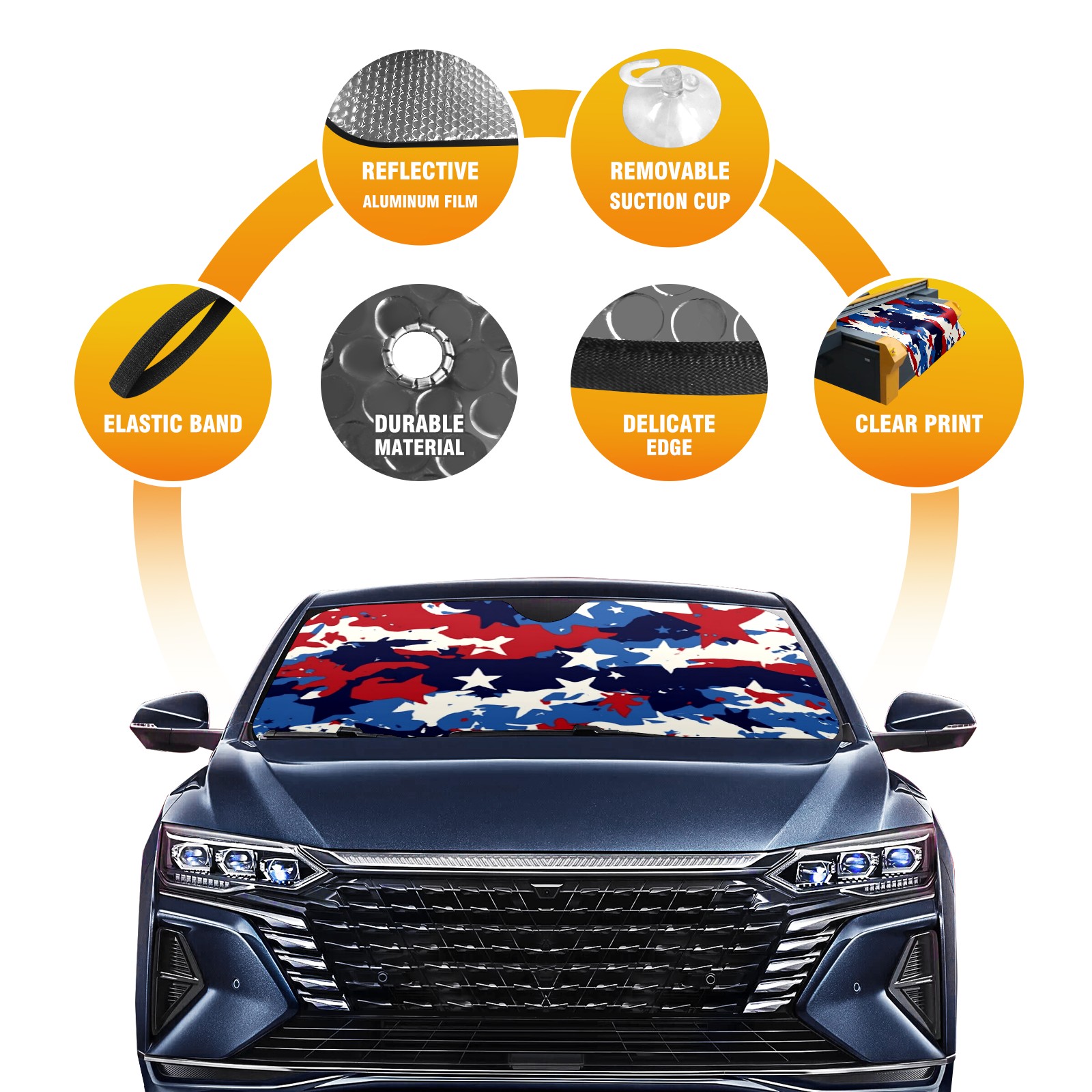 <p>[Material description] Aluminum foil + polyester</p> <p>Size: 140x76cm (55inx30in)</p> <p>[Product performance] Can effectively block the sun for your car, effectively protect your car interior, durable.</p> <p>Easy to carry: easy to fold, light and portable, reasonable size for carrying and storage, storage in the car will not take up too much space.</p> <p>Uv protection: uv protection, effectively protect your car interior, can keep your car interior cool, very suitable for internal protection, while preventing harmful UV damage to your upholstery. Protect car dashboard, steering wheel and chair from sun aging. Keep the car cool: Using high-quality aluminum foil bubbles can reduce heat, has good insulation, effectively reduce the temperature of the car, save fuel consumption, air conditioning helps to keep the car cool in hot and sunny weather.</p> <p>Suitable for car portable, outdoor travel, work out, to meet your various choices.</p>