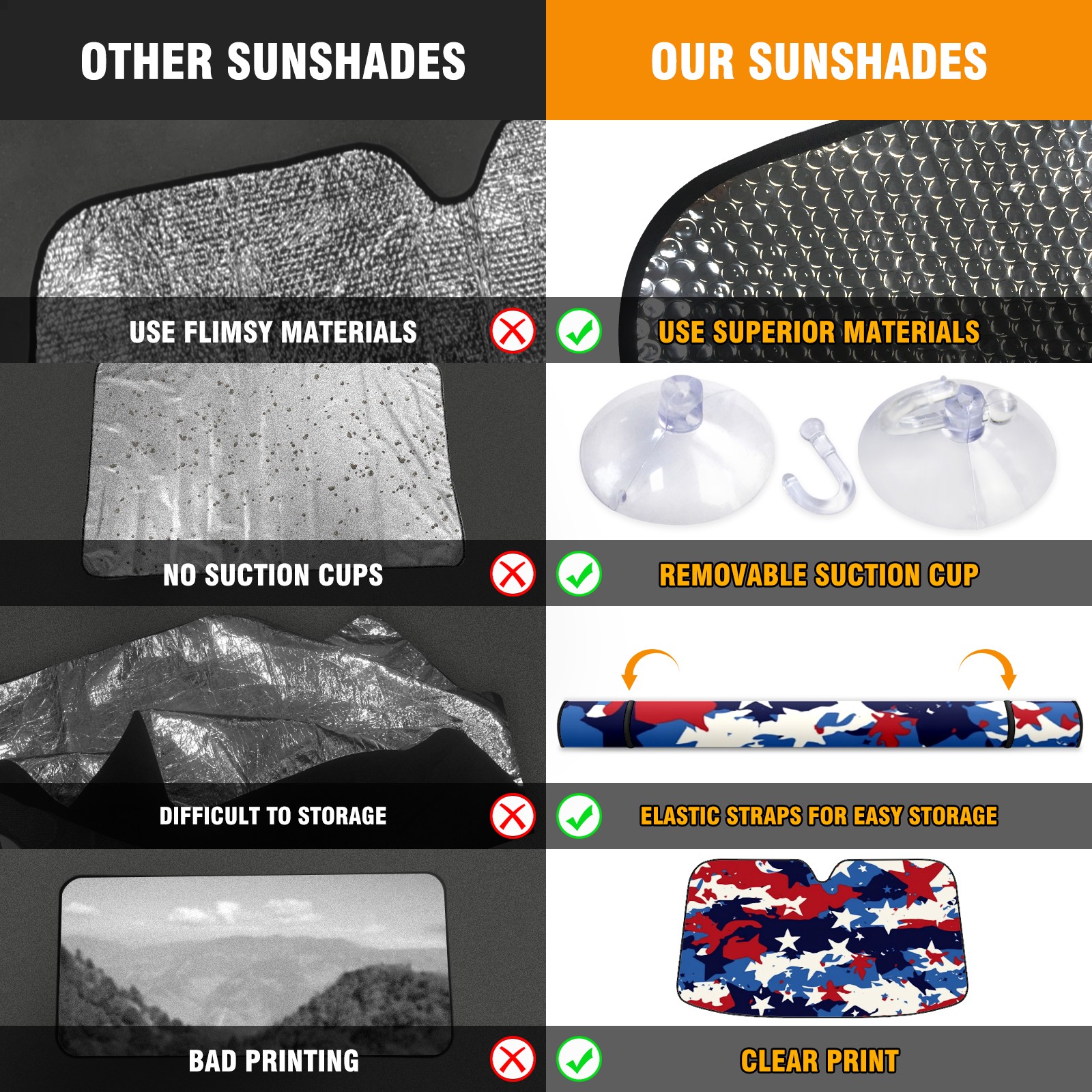 • <p>[Material description] Aluminum foil + polyester</p> <p>Size: 140x76cm (55inx30in)</p> <p>[Product performance] Can effectively block the sun for your car, effectively protect your car interior, durable.</p> <p>Easy to carry: easy to fold, light and portable, reasonable size for carrying and storage, storage in the car will not take up too much space.</p> <p>Uv protection: uv protection, effectively protect your car interior, can keep your car interior cool, very suitable for internal protection, while preventing harmful UV damage to your upholstery. Protect car dashboard, steering wheel and chair from sun aging. Keep the car cool: Using high-quality aluminum foil bubbles can reduce heat, has good insulation, effectively reduce the temperature of the car, save fuel consumption, air conditioning helps to keep the car cool in hot and sunny weather.</p> <p>Suitable for car portable, outdoor travel, work out, to meet your various choices.</p>