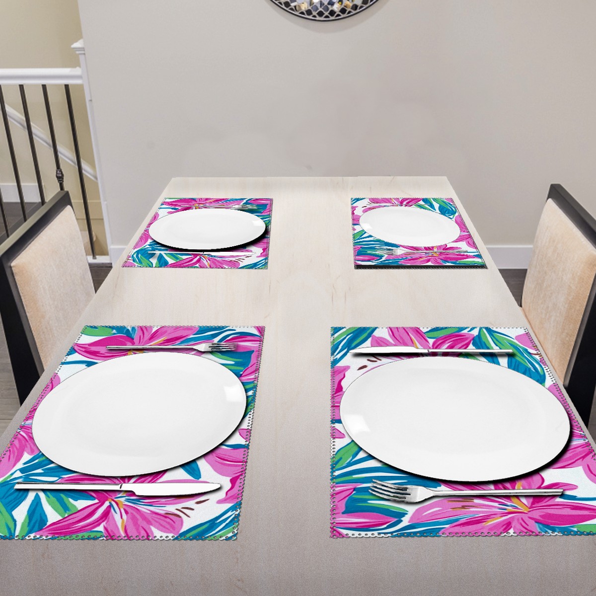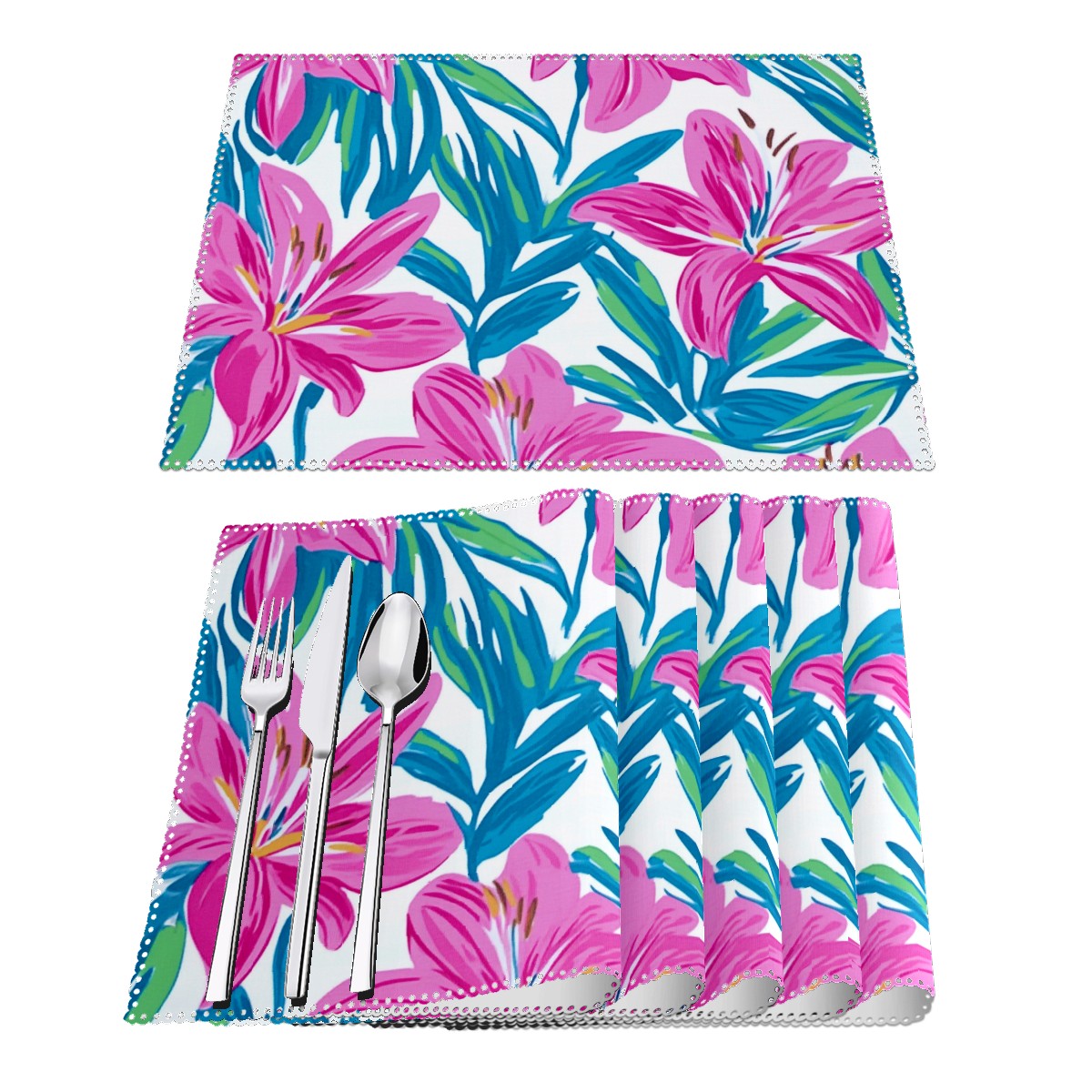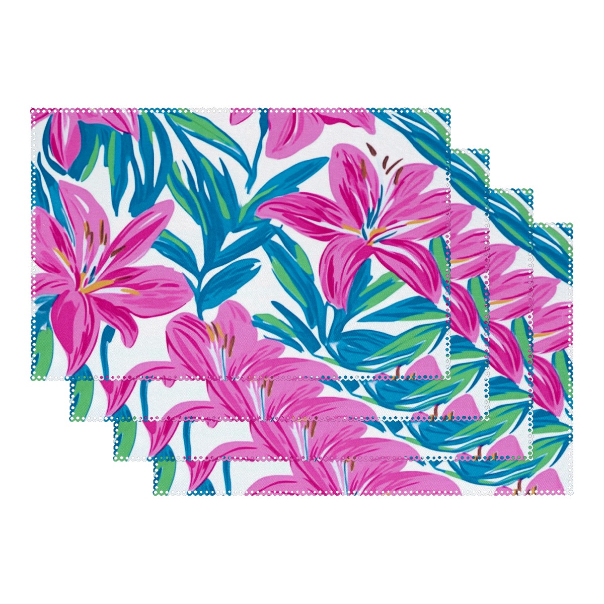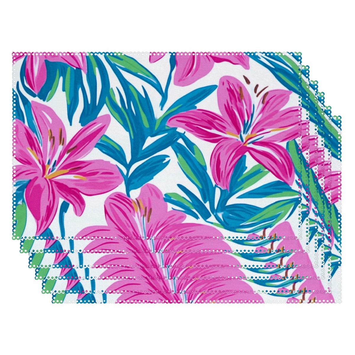 Home Brilliant Placemats Heat Resistant Dining Table Place Mats Plate Mat Cloth Placemat Seasonal Holiday Kitchen Tablecloth Indoor Outdoor Teal Lily