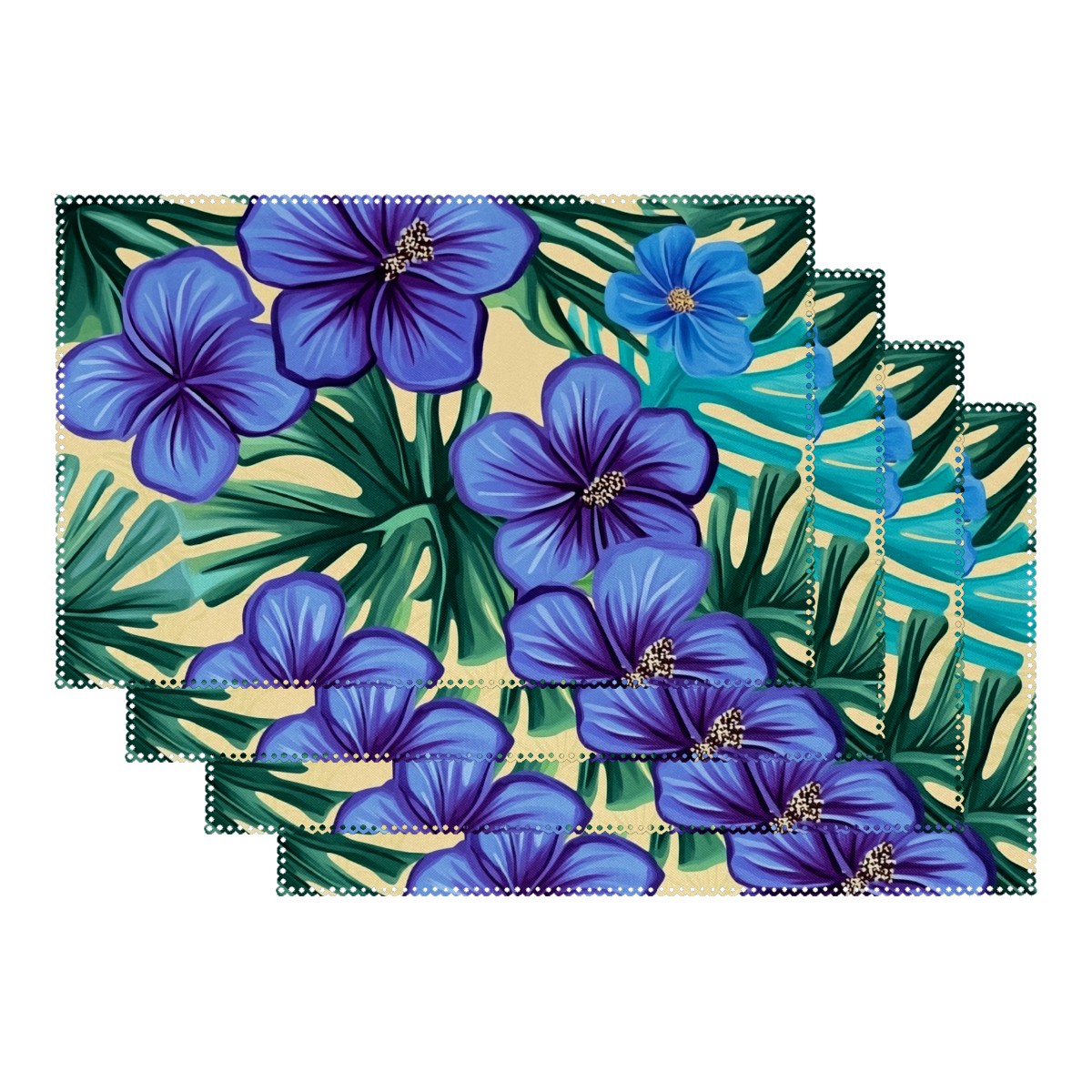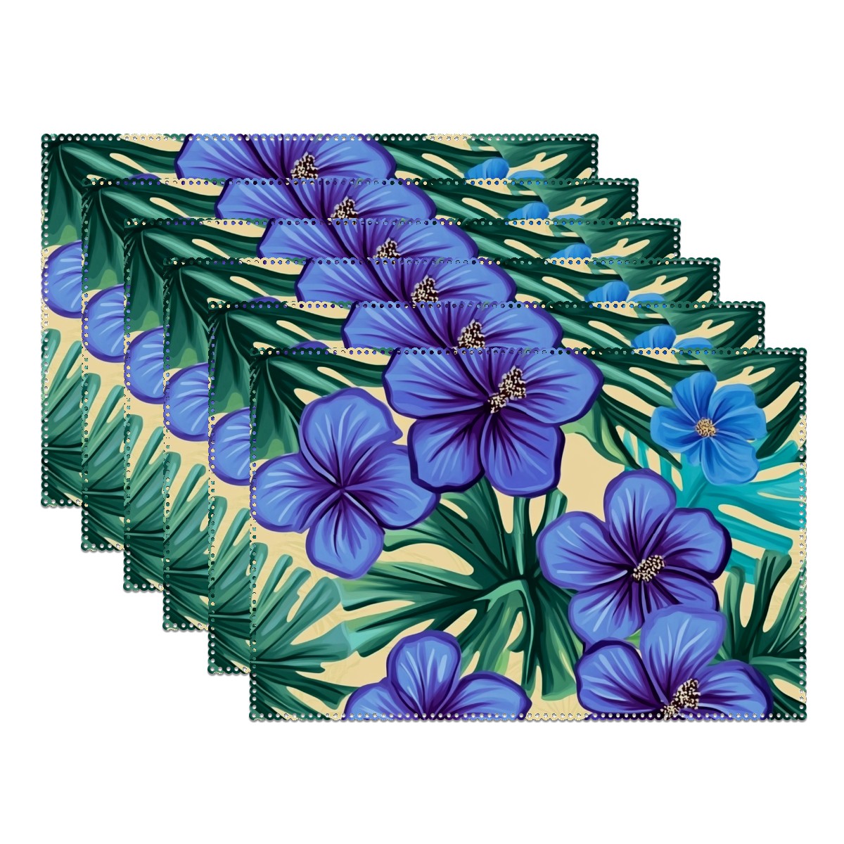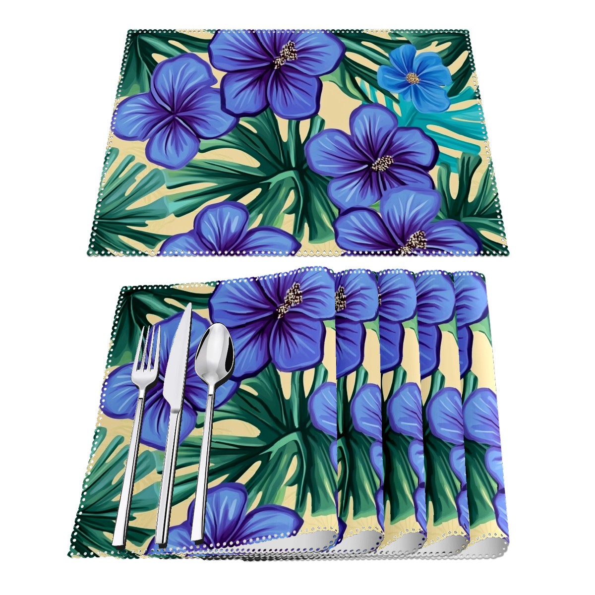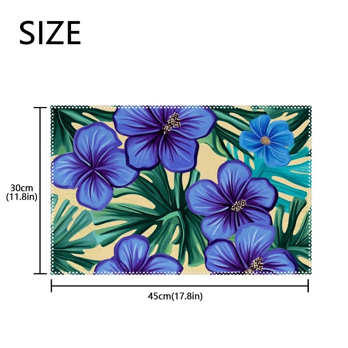 Home Brilliant Placemats Heat Resistant Dining Table Place Mats Plate Mat Cloth Placemat Seasonal Holiday Kitchen Tablecloth Indoor Outdoor Blue Hibiscus Flowers