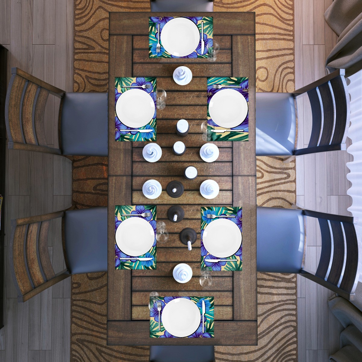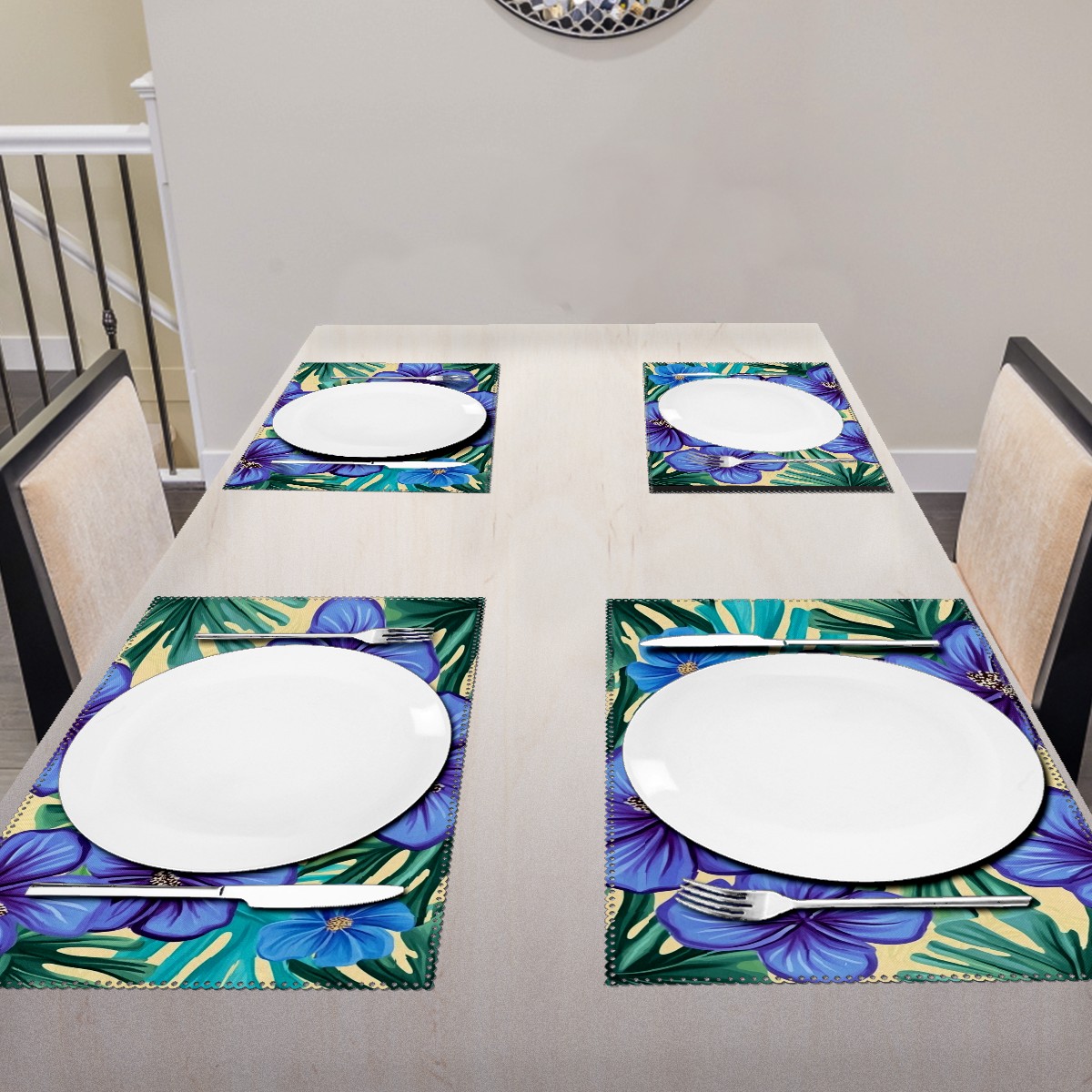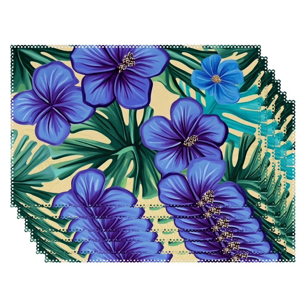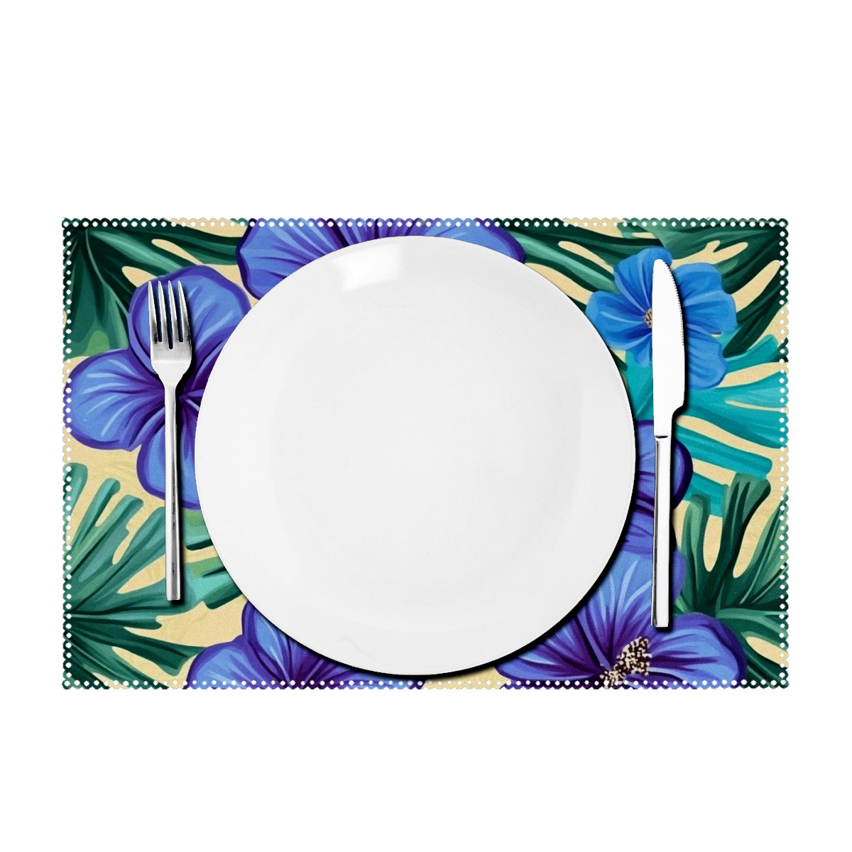 Home Brilliant Placemats Heat Resistant Dining Table Place Mats Plate Mat Cloth Placemat Seasonal Holiday Kitchen Tablecloth Indoor Outdoor Blue Hibiscus Flowers